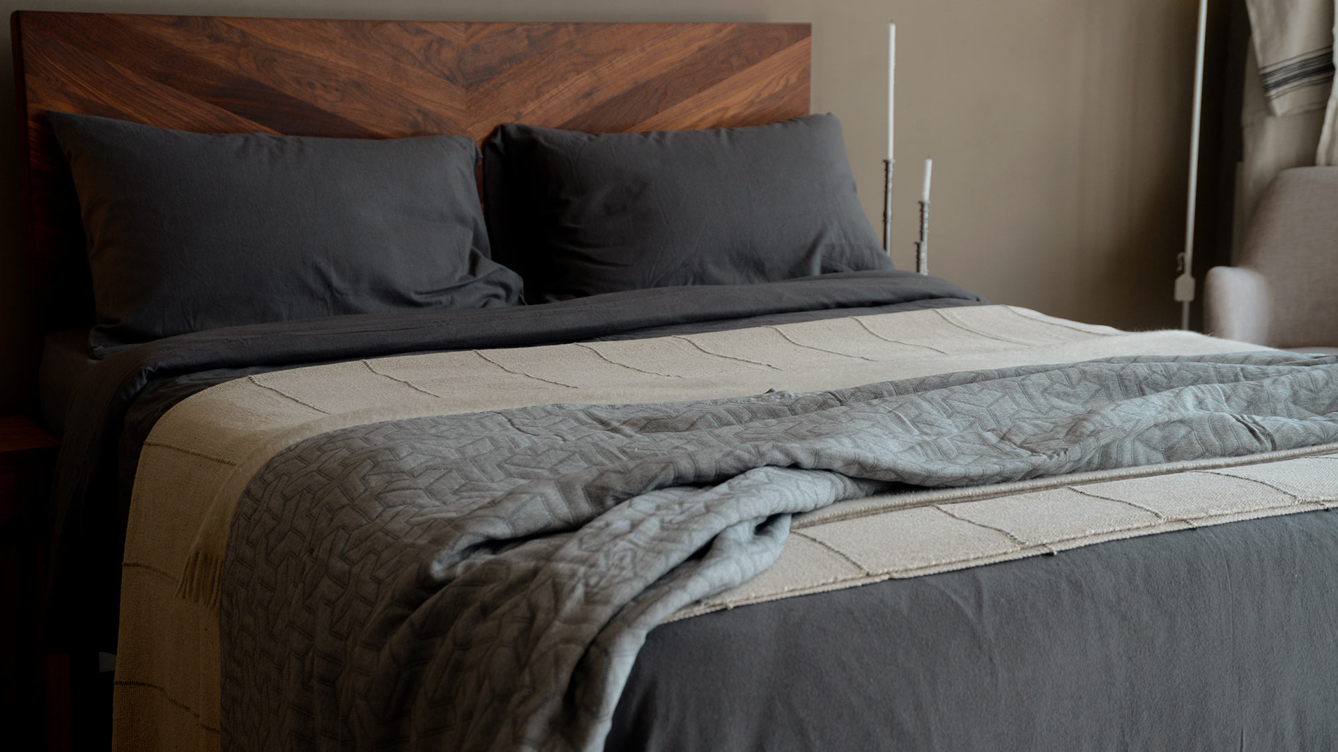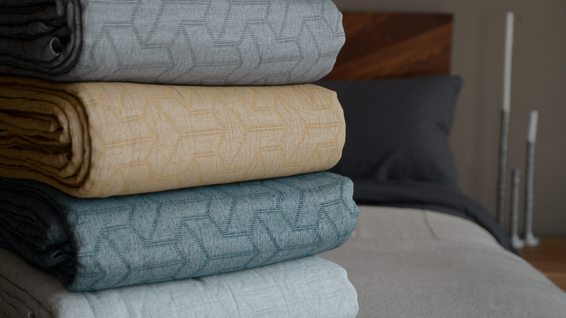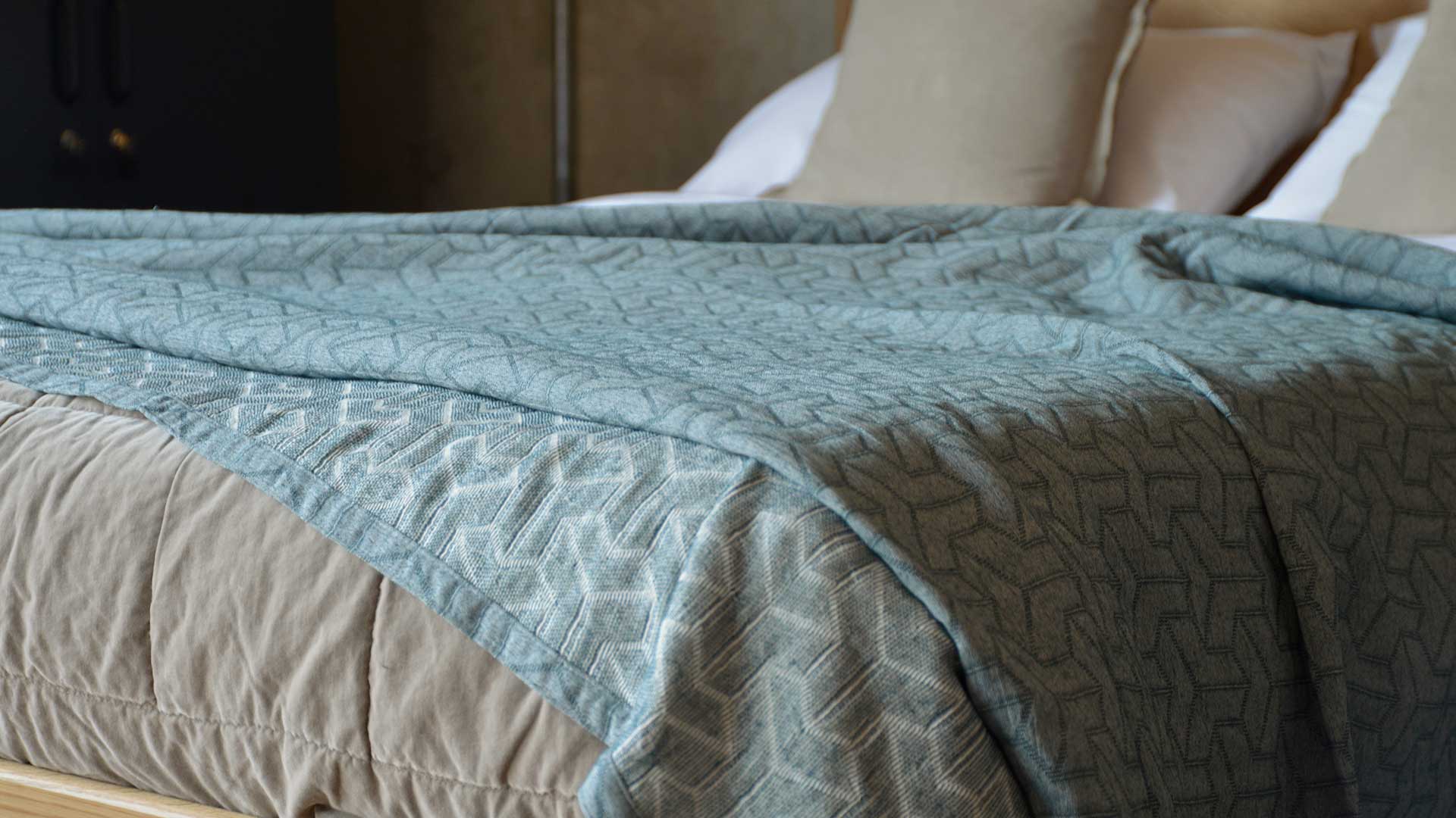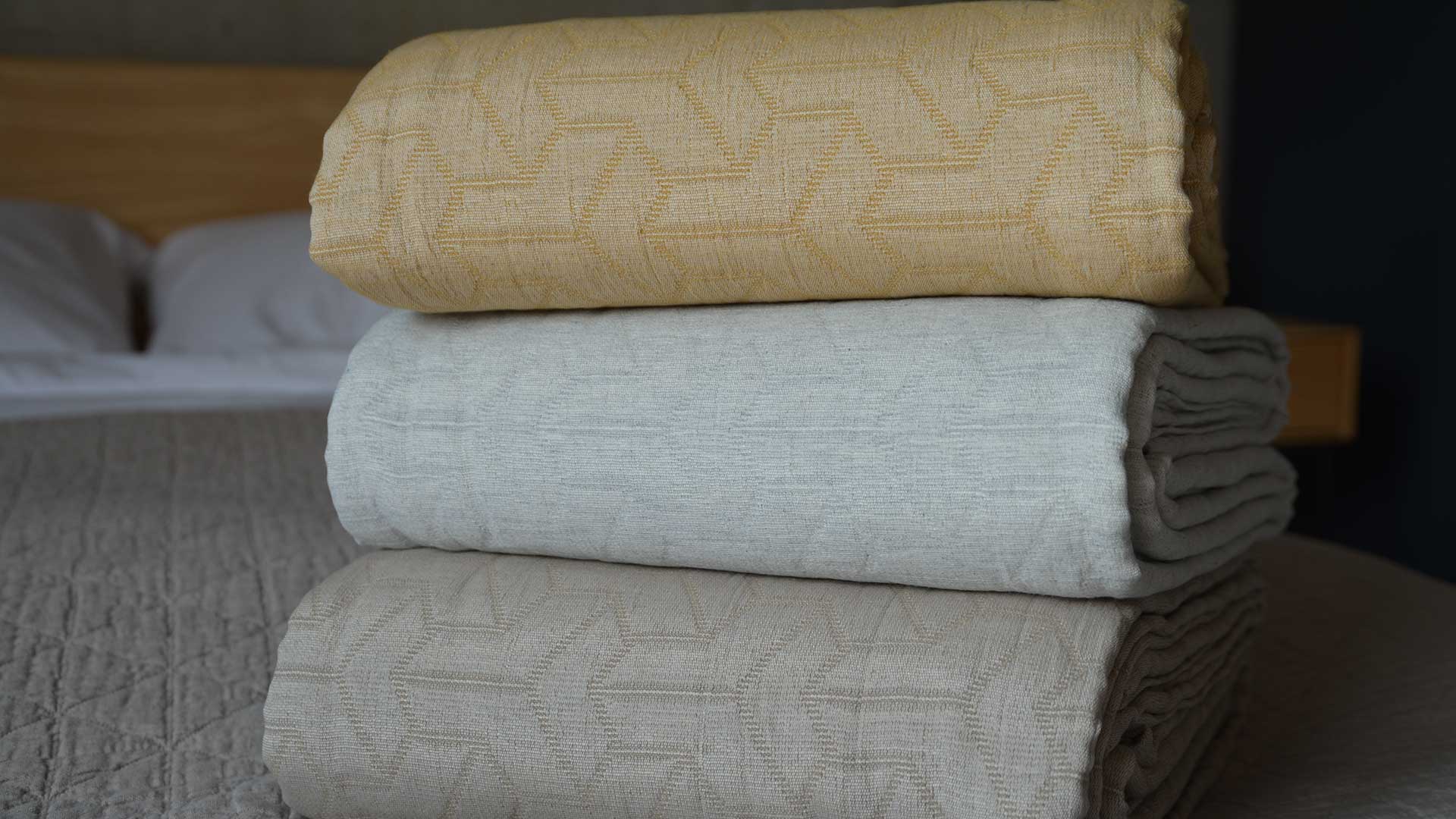 A collection of modern, cotton rich bedspreads made with recycled cotton, cotton and polyester. They feature a modern, geometric pattern woven into the fabric and are available in a range of contemporary colours. These cotton rich bedspreads are a perfect extra-layer on top of a duvet, or for use on their own as a lightweight cover for the summer months.