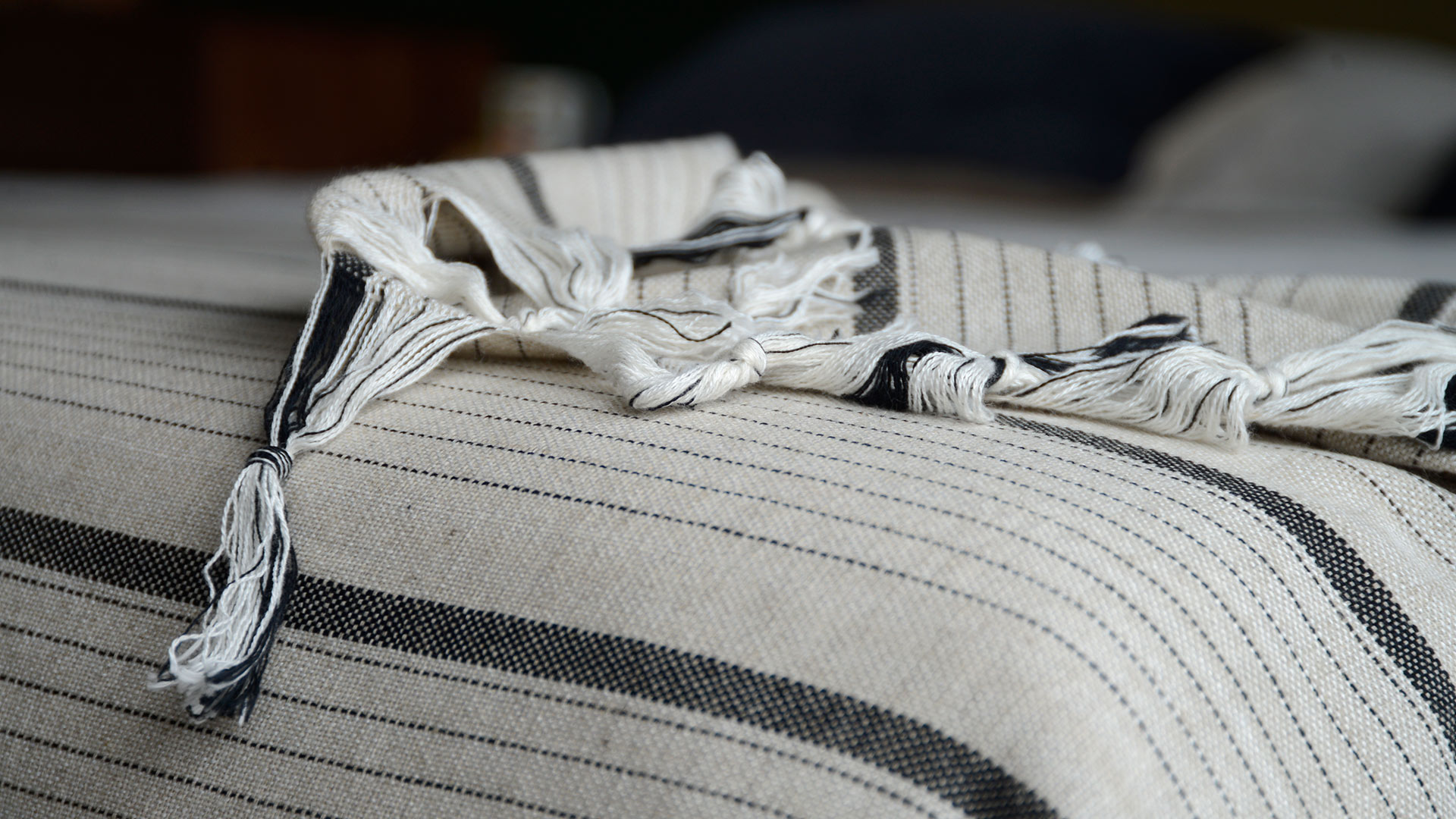 A soft cotton throw with fringe to two sides – it can be used as a blanket, wrap or towel. A stylish addition to any home, this throw is made of 100% Oekotex cotton in ecru and black.