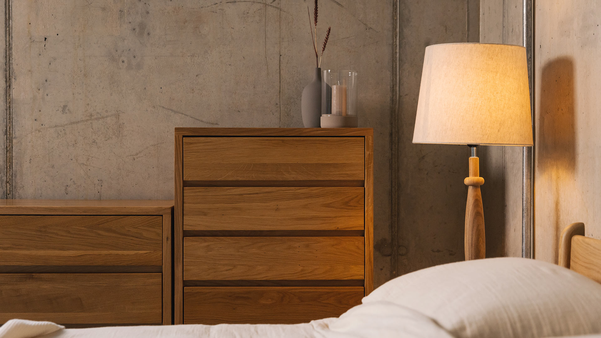 Exclusive to Natural Bed Company, the Black Lotus Collection of solid oak bedroom storage was designed by Peter Bennion. Made up of high quality, stylish storage solutions; beautifully crafted for us by an eco-conscious manufacturer in Europe. To name a few of their eco credentials: they use solar power for over 70% of their energy consumption; for every tree used to produce furniture, 10 more are planted; all off-cuts are made into wooden pellets for heating, so no waste!