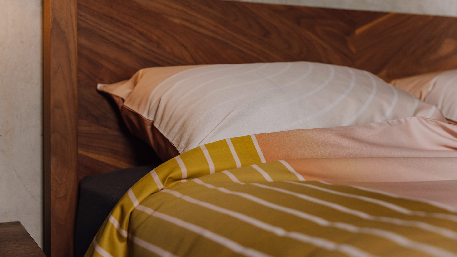 Retro colours, but with understated contemporary style, this bright curved bedding is made from certified organic cotton satin. Super smooth, with a lightweight satin finish.