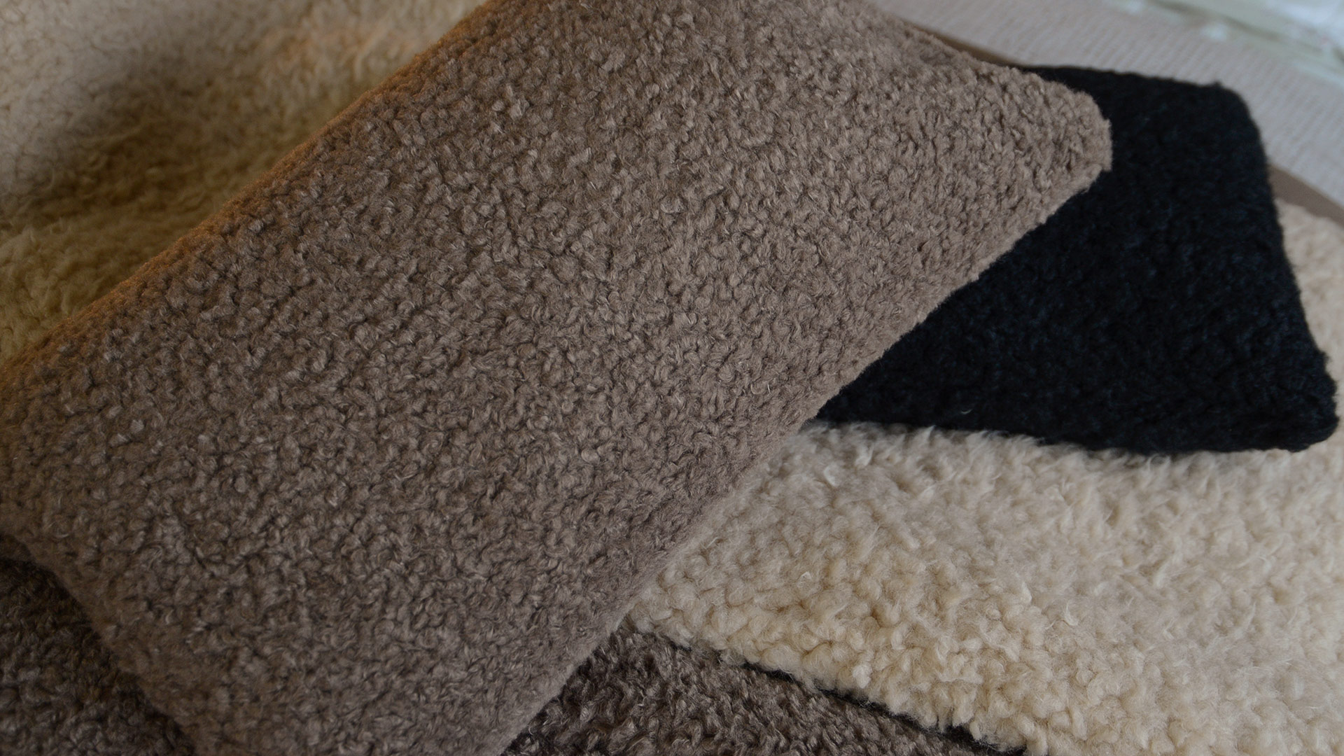 A collection of incredibly soft, cosy cushions made using a snuggly faux sheepskin fabric. These cushion covers are available in a pale caramel colour, a deep mushroom shade or classic black.