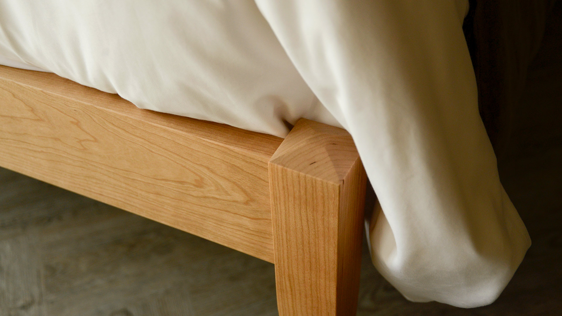 You can see the Dalston here in a kingsize in solid walnut and cherry. However, this bed is available in your choice of size and our full range of timbers. Take a look at the Our Timbers page for more information and to order timber samples.