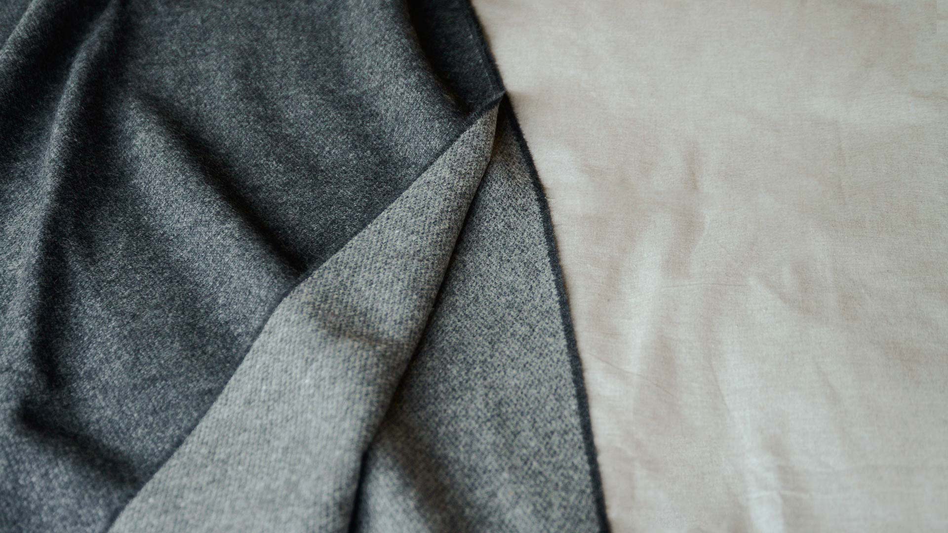 Characterised by a dark grey front and a pale, warm grey to the reverse. This dark grey reversible wool throw is an easy way to add touch of personality to any space.