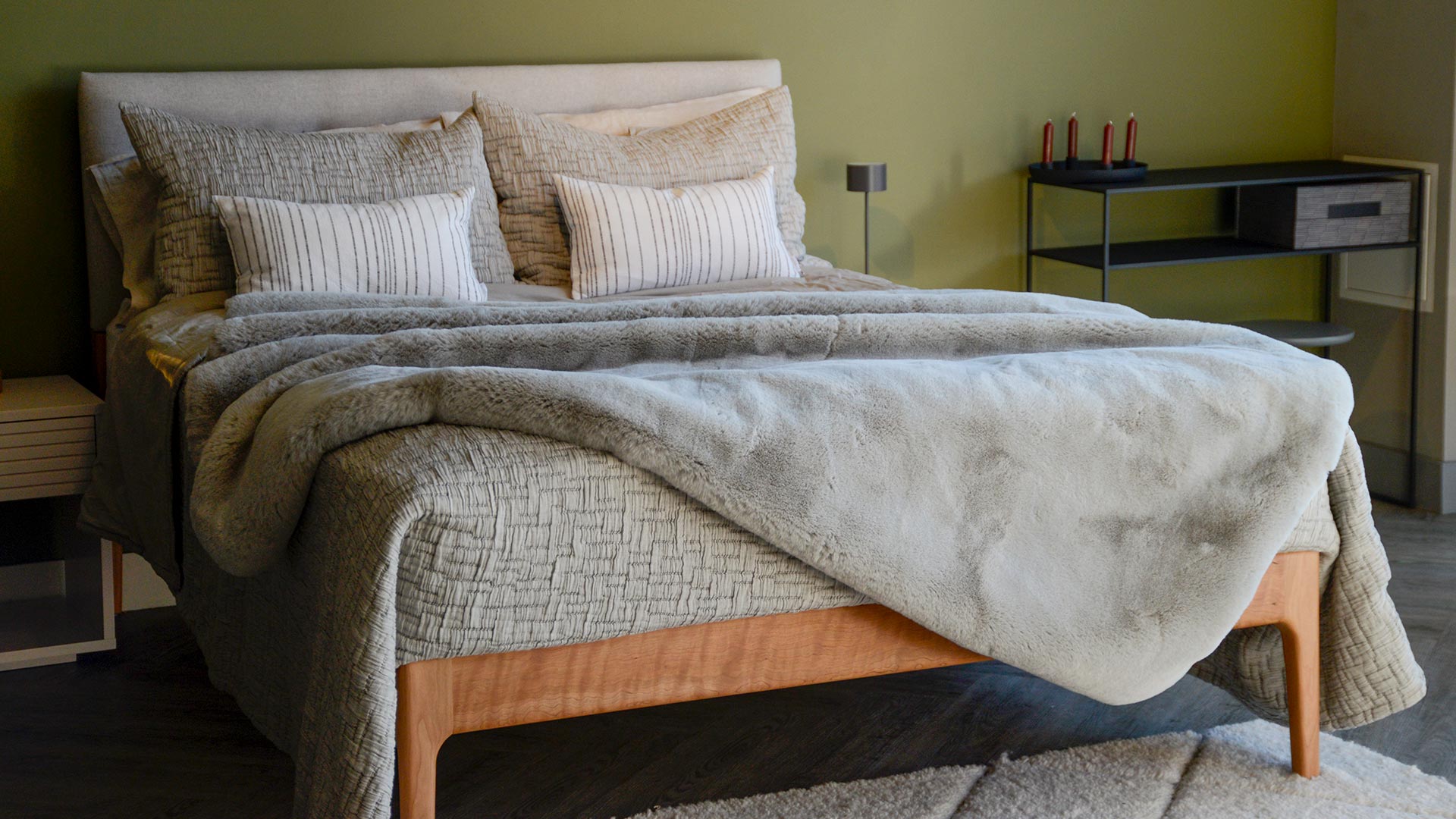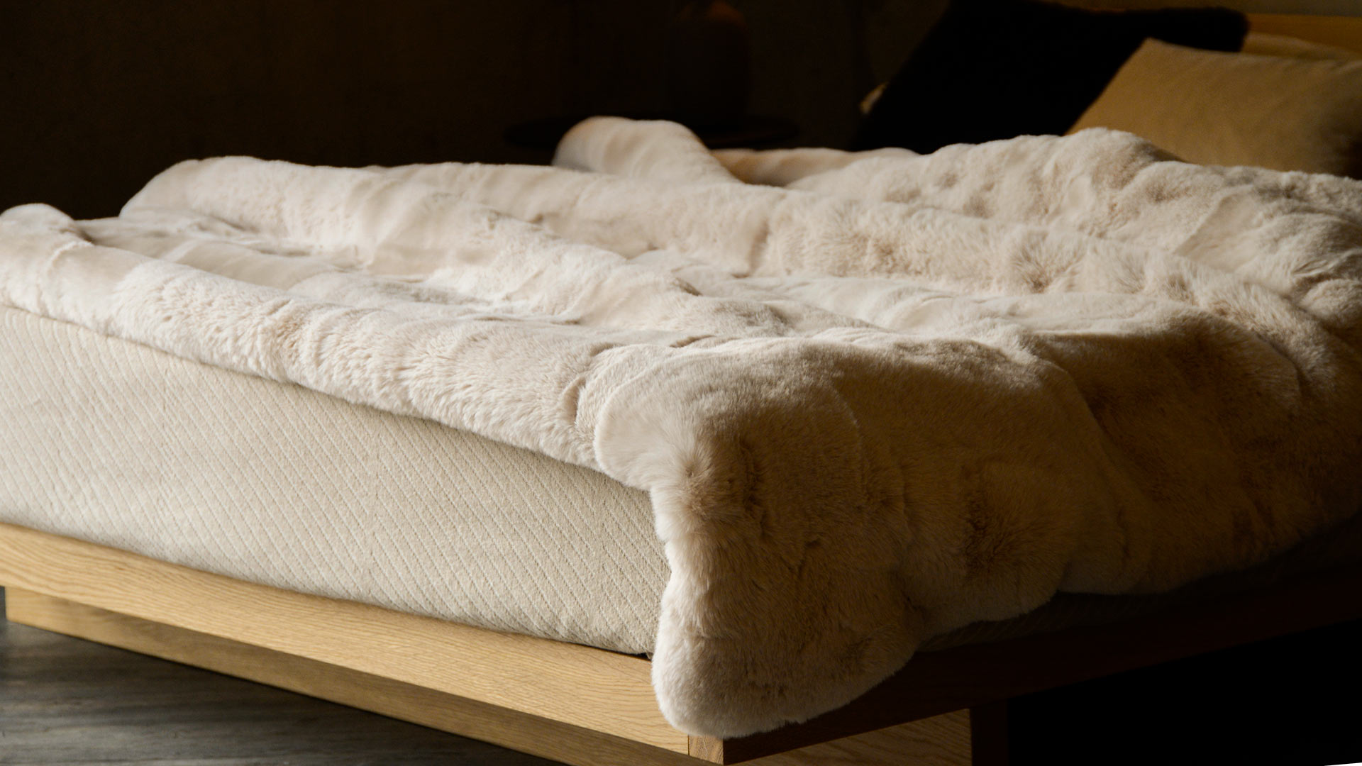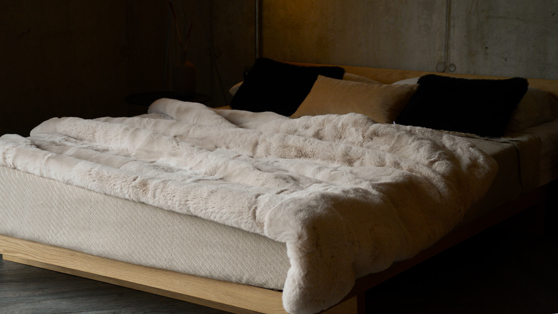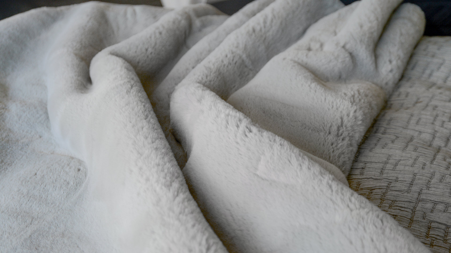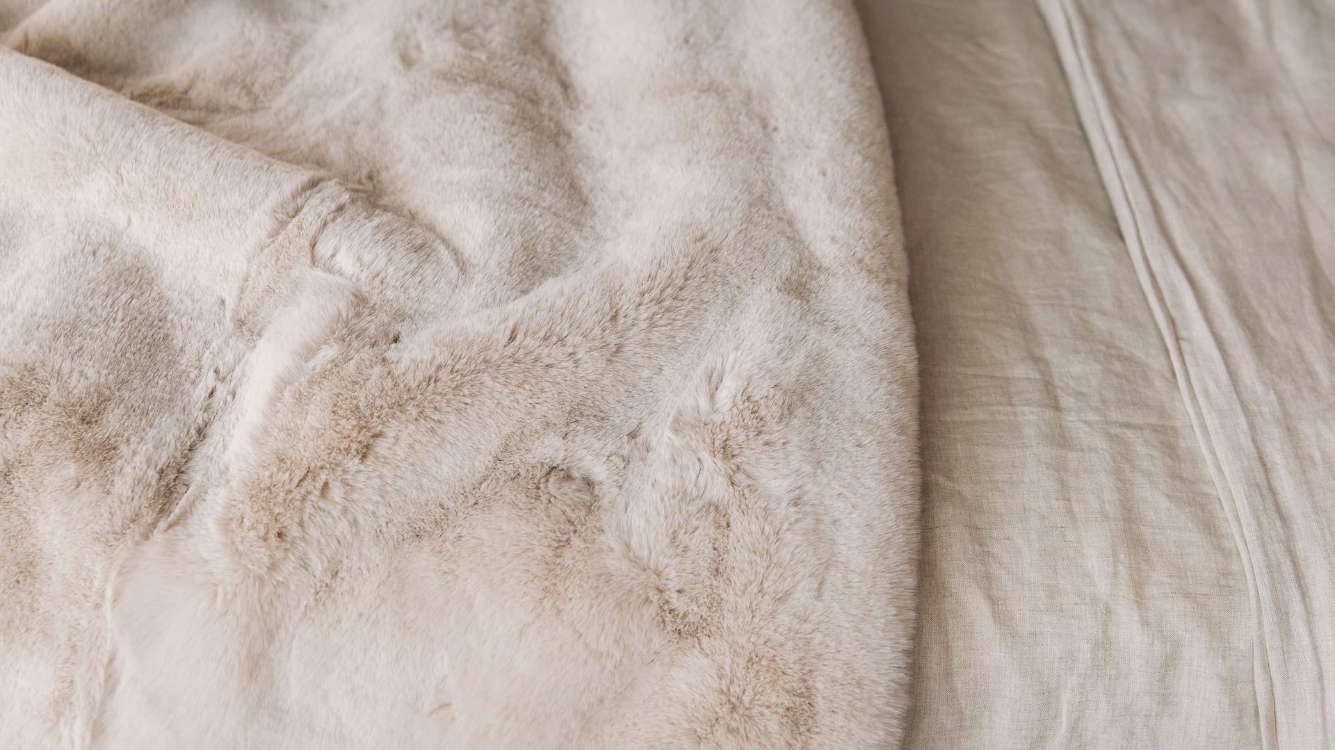 Luxury faux fur throws in a cool ‘rabbit’ grey or soft, light sand. The ‘fur’ fabric is incredibly deep and super soft to the touch. A generous size, this throw is perfect for draping over the end of a bed or for snuggling up with on the sofa.