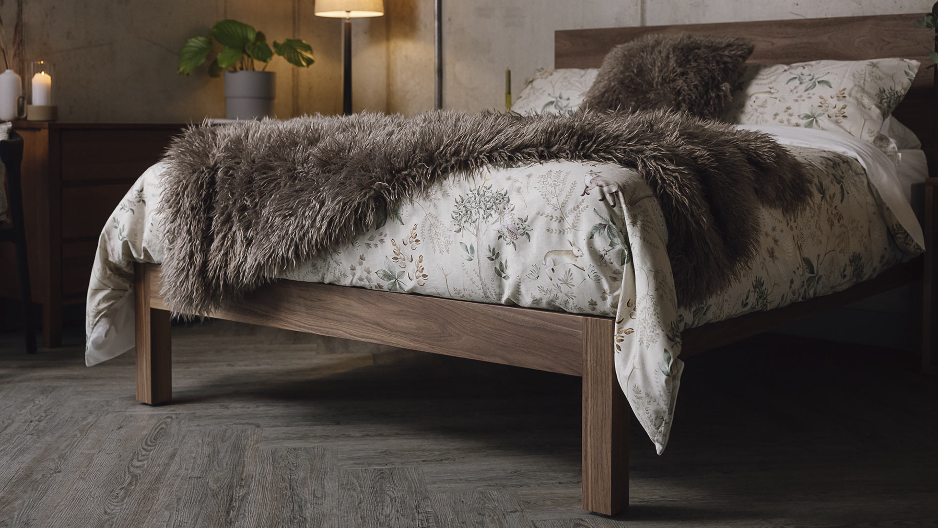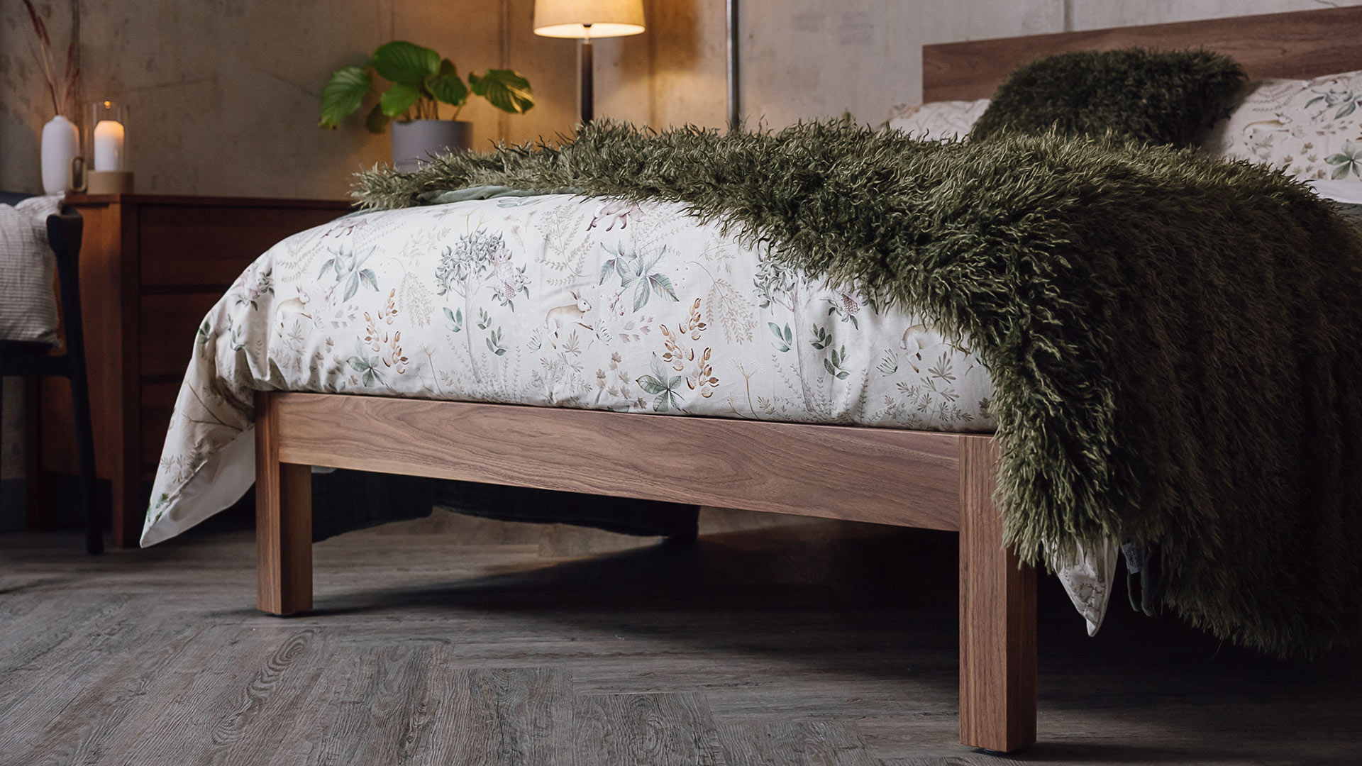 The reverse is in a short pile velvet in a matching colour. You can also find matching cushions in the same three colours.