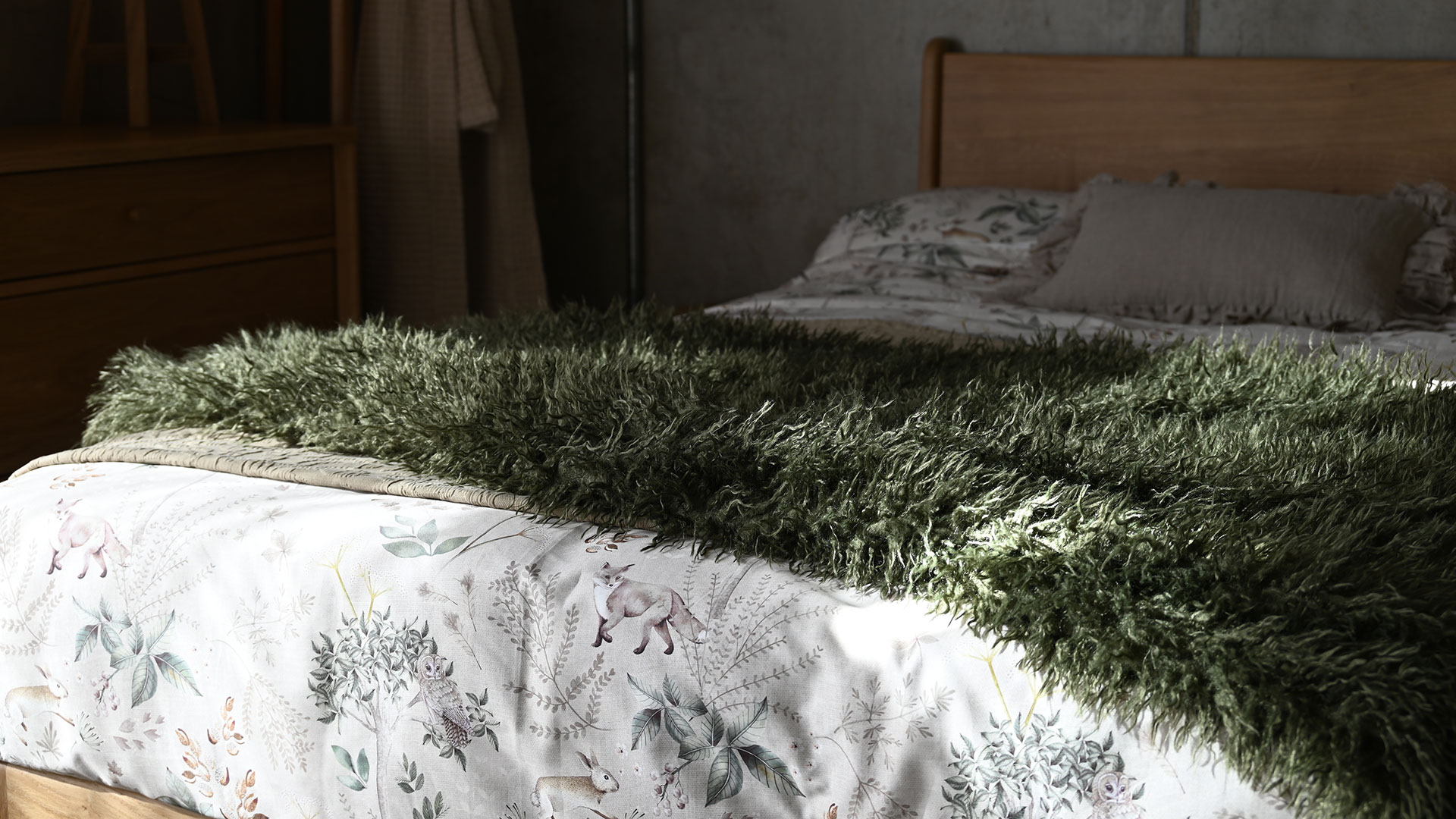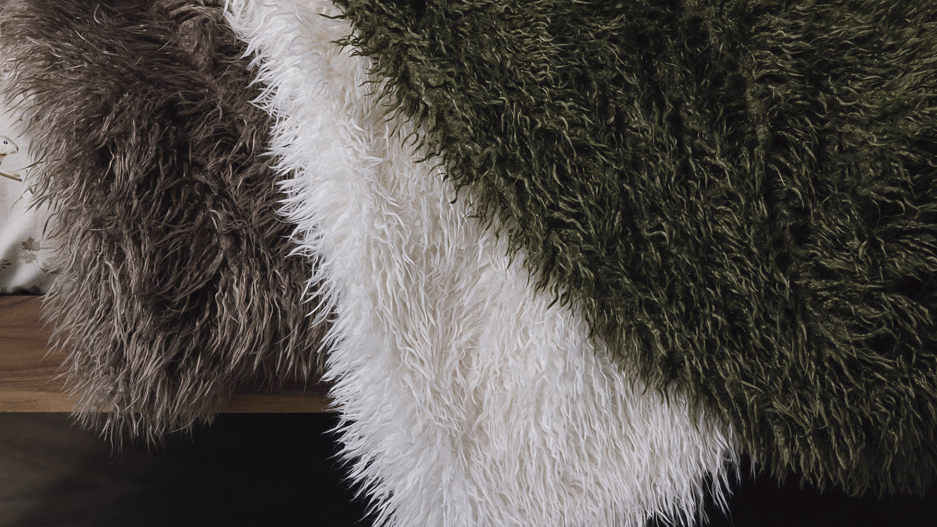 Super soft faux fur throws available in three colours with a deep pile. Choose from either olive green, pale ecru or warm grey to suit your colour scheme. A fun accent to any room scheme.