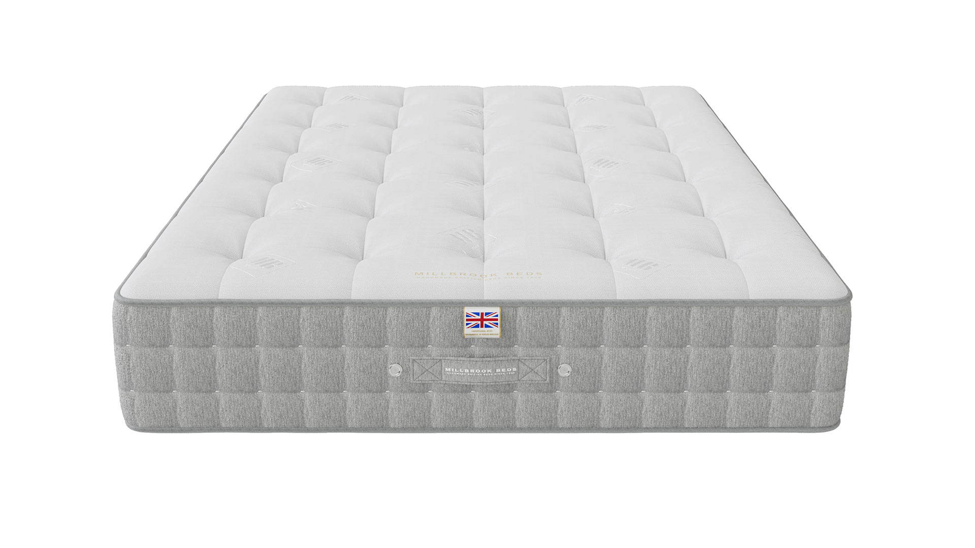 Layers: 1. Chemical free smooth-flex tuft free cover 2. Hampshire wool (and silk in Medium 2412 only) 3 & 4. soft English spun cotton 5. 1412 comfort mini springs (Medium 2412 only) 6. 1000 ergonomic pocket springs 7. Recycled soft polyester fibres 8 . Non-slip cover