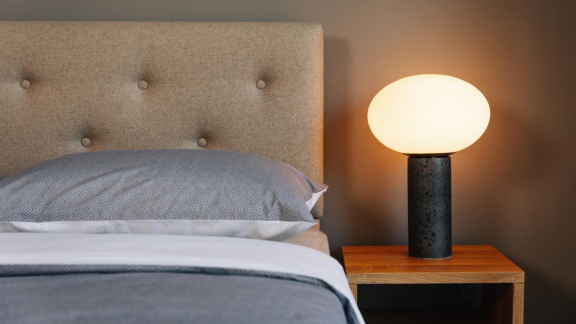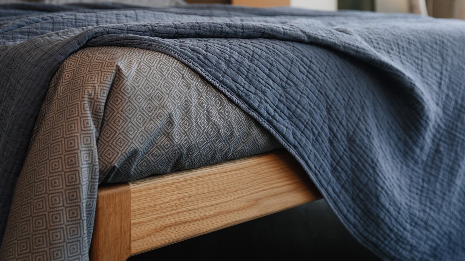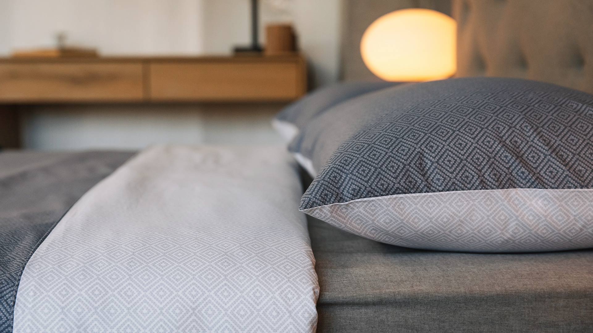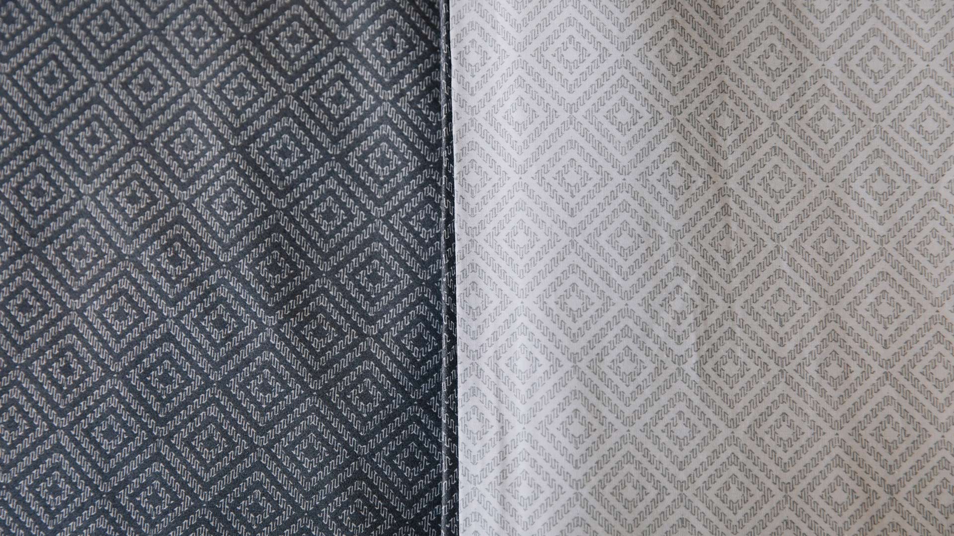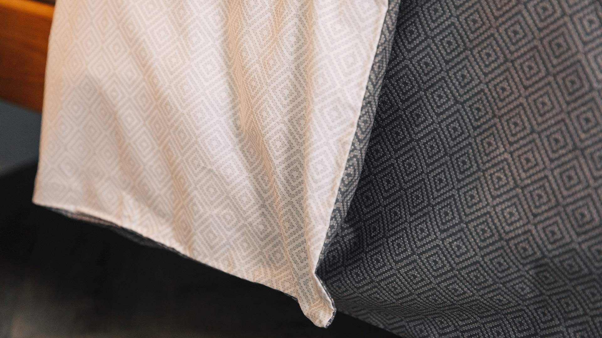 A reversible duvet set with a deep, cool grey and ivory diamond print. The set includes a duvet cover and pair of pillowcases. Available in double, king and super-king.