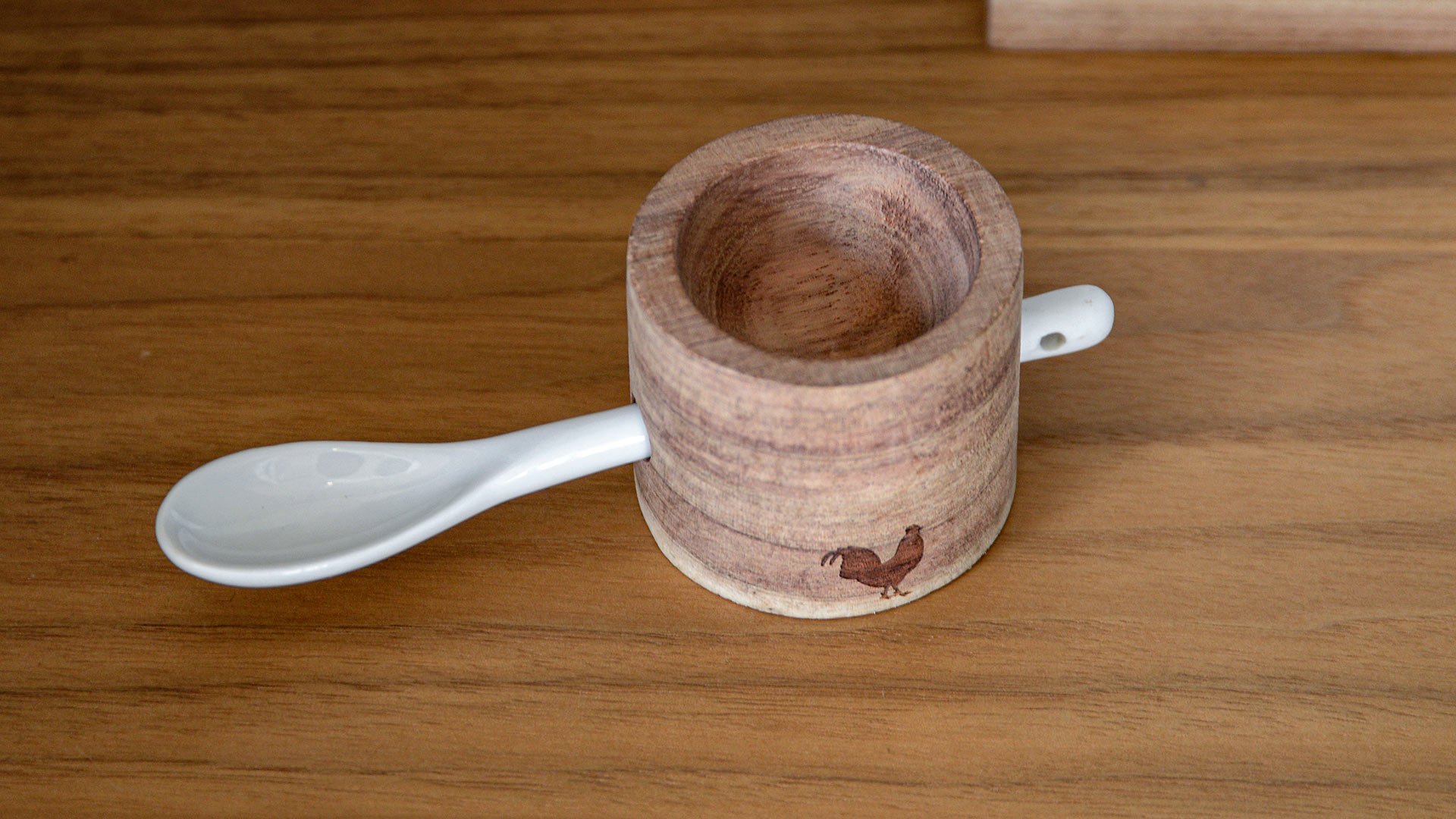 Material: acacia wood, porcelain spoon