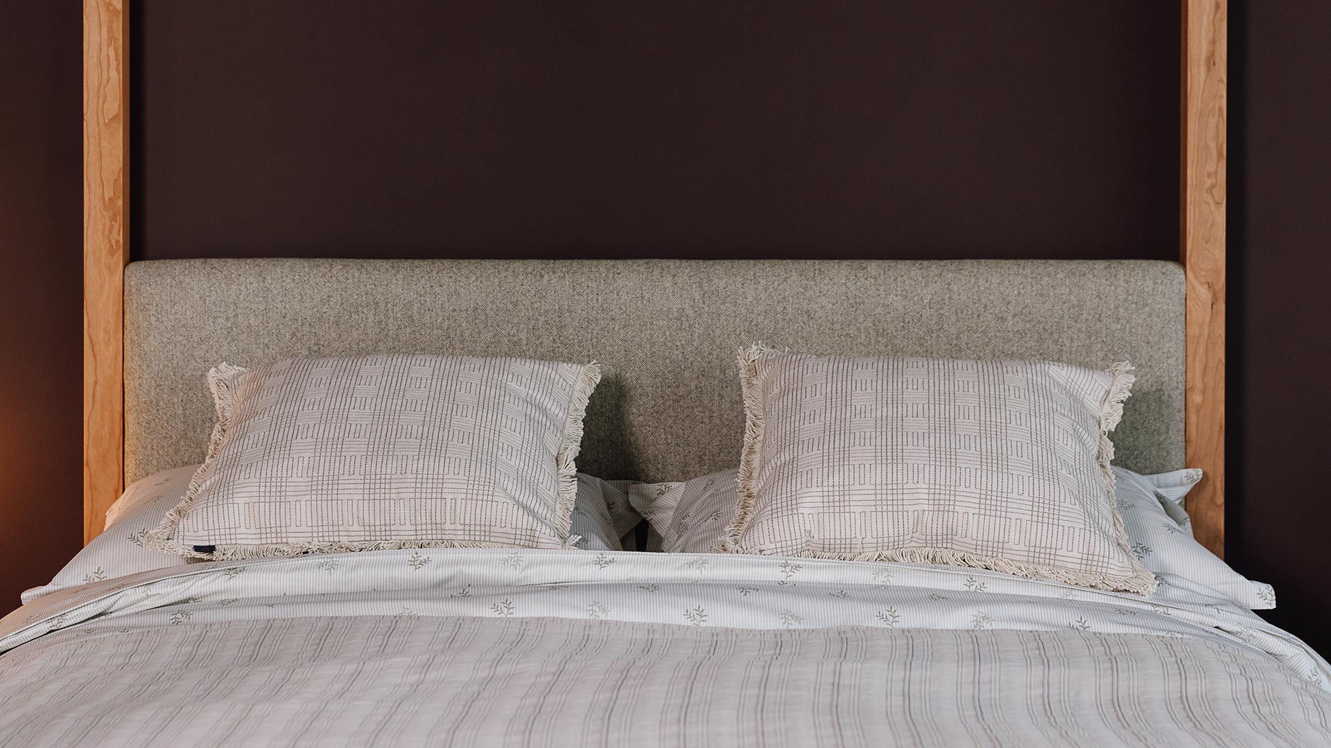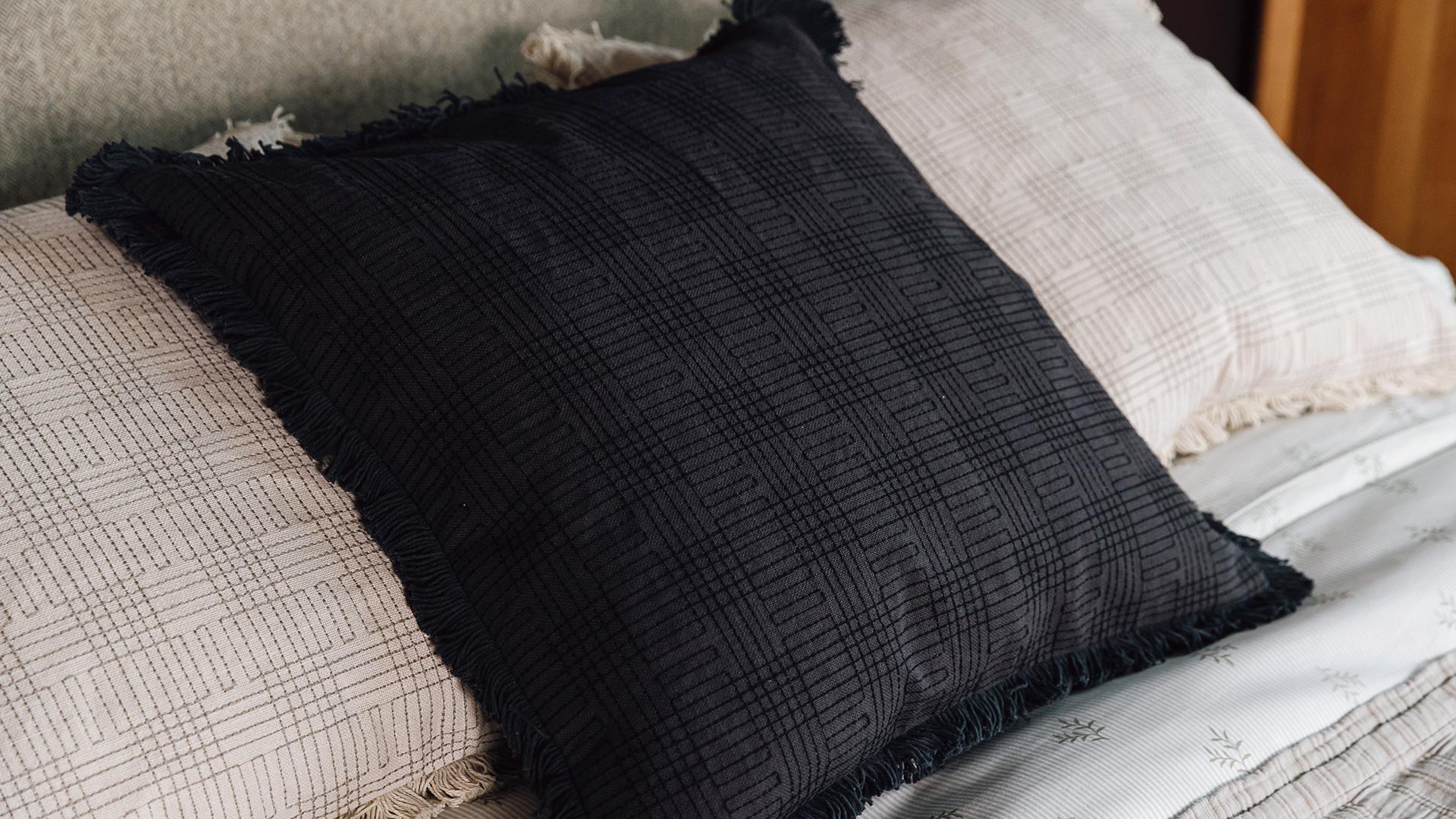 With lightly textured covers in heavy cotton slub fabric and a full feather pad inner, these embroidered check cushions are comfy, modern and also stylish. Available in charcoal or greige, each featuring a geometric embroidered pattern to the front. Perfect on the sofa, on your bed or along a bench.