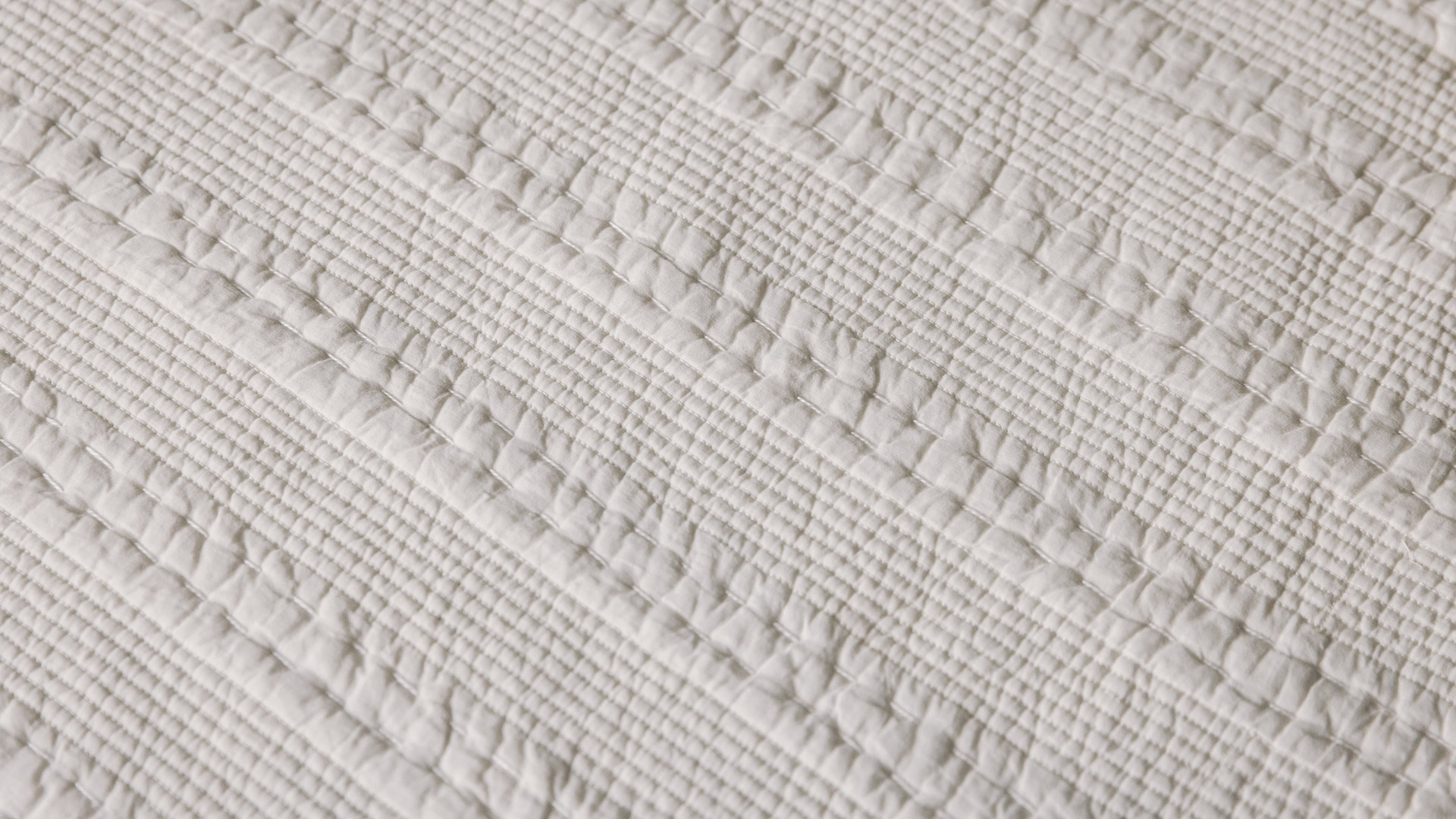 This embroidered stitch stripe bedspread boasts a varying pattern of stitched and embroidered stripes in matching pale ivory tones; spanning the width of the blanket.