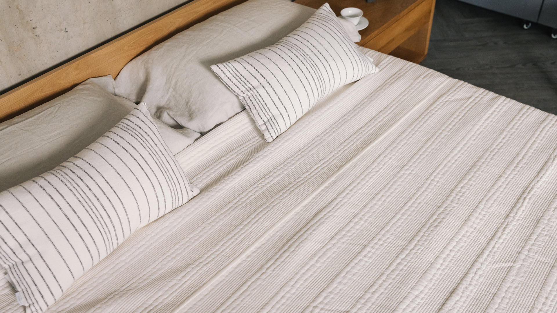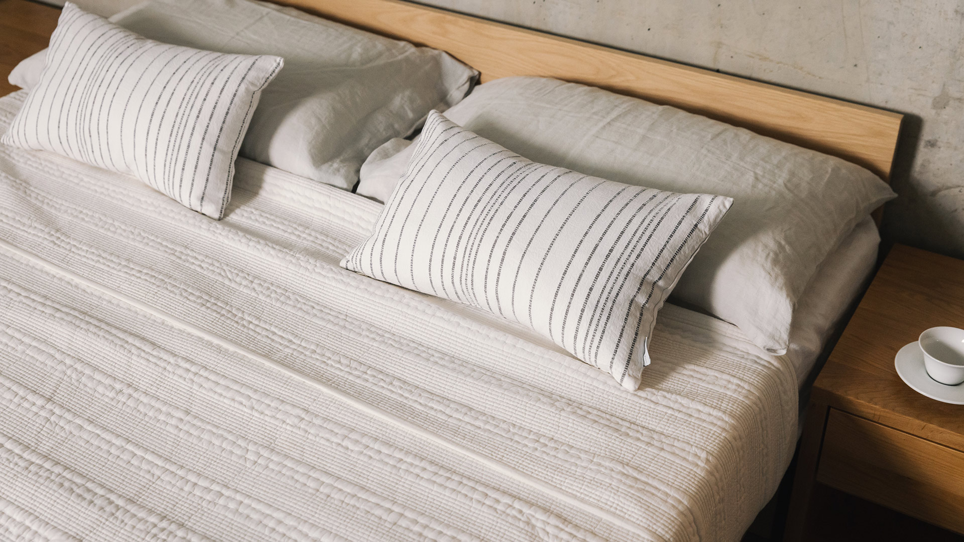 A medium weight, this embroidered stitch stripe bedspread is super soft and cosy. In a neutral, warm white shade, this bedspread is easy to pair with existing colour schemes. Ideal either as a light cover on their own through spring and summer, or as an extra layer over the duvet in winter. A generous size, it is suitable for covering even up to superking size beds.