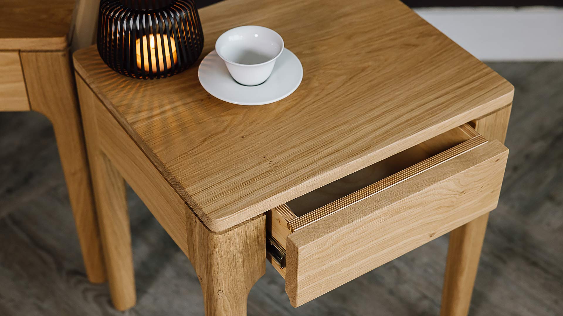 Our original Camden Drawer Tables, but available here as special editions, handcrafted in locally-sourced English Oak. Designed with our special edition English Oak beds in mind – the Camden & Chiswick, these bedside tables are a mid-century inspired design made in a sustainable, timeless hardwood. More information can be found below.