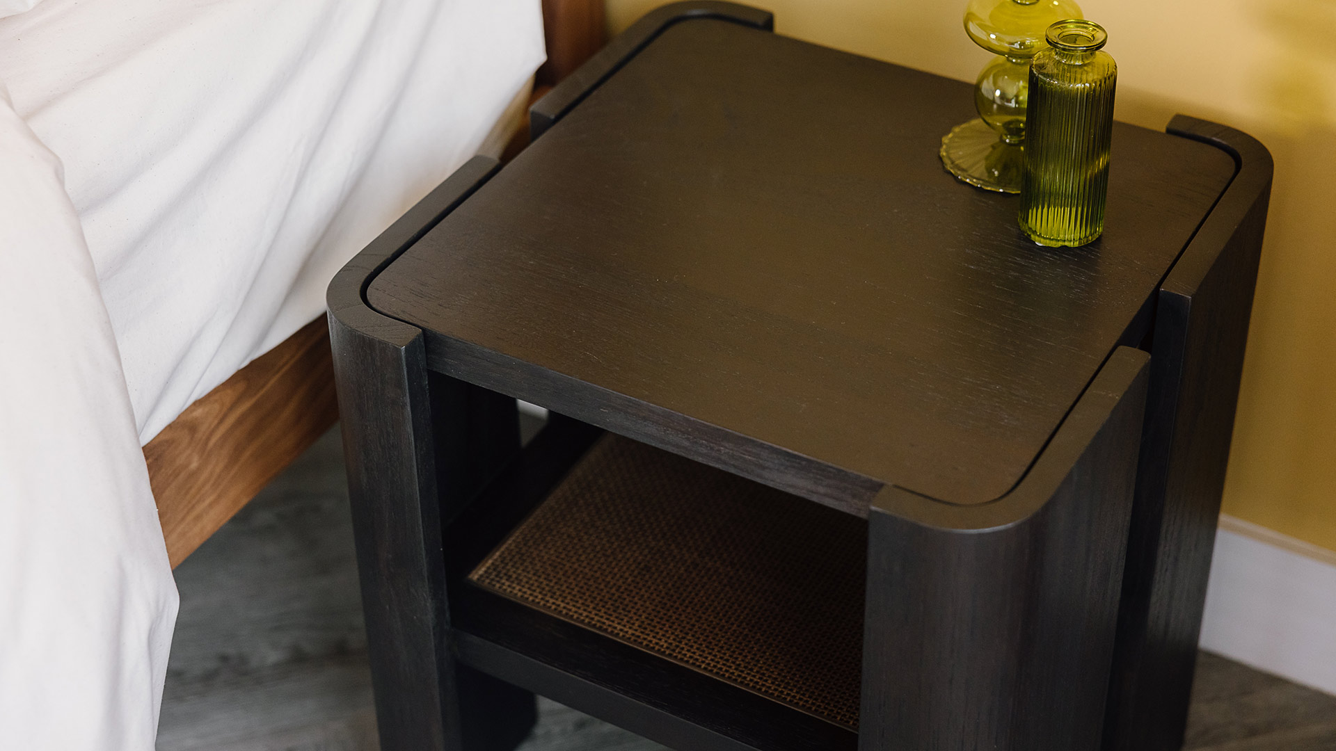 The Ethnicraft Panel side table is a striking, stylish addition to any space. With curved, generous proportions and refined rattan details – the perfect mid-century modern side table.