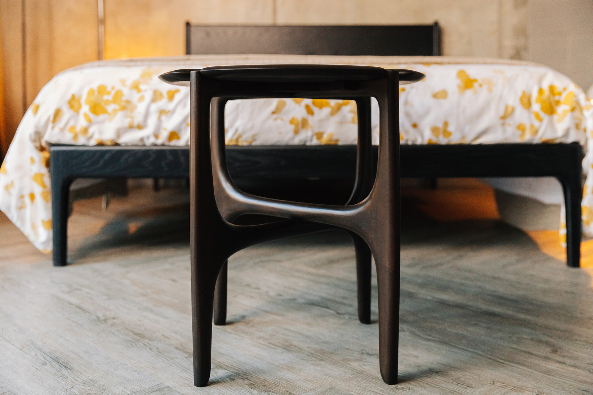 If ordering this Ethnicraft Pi side table to ‘match’ a Natural Bed Company bed– please note that Ethnicraft furniture has a slightly different finish to our own furniture, and we don’t offer Mahogany as one of our timber options. Because of this, there isn’t an exact match within our range. We feel these could pair well as a contrast to one of our lighter timbers, or may match nicely with the warm chocolate brown tones found in our Walnut timber.