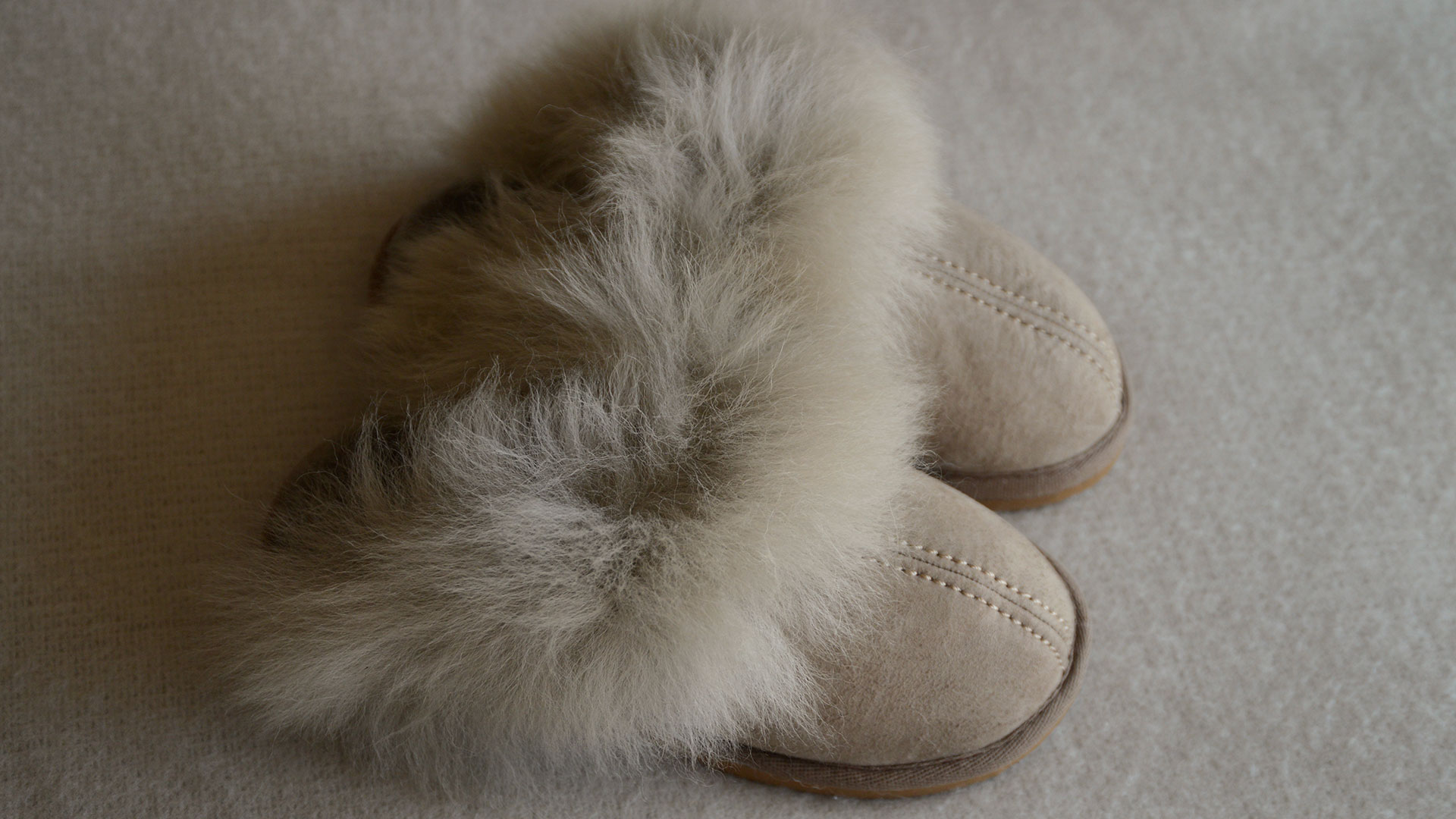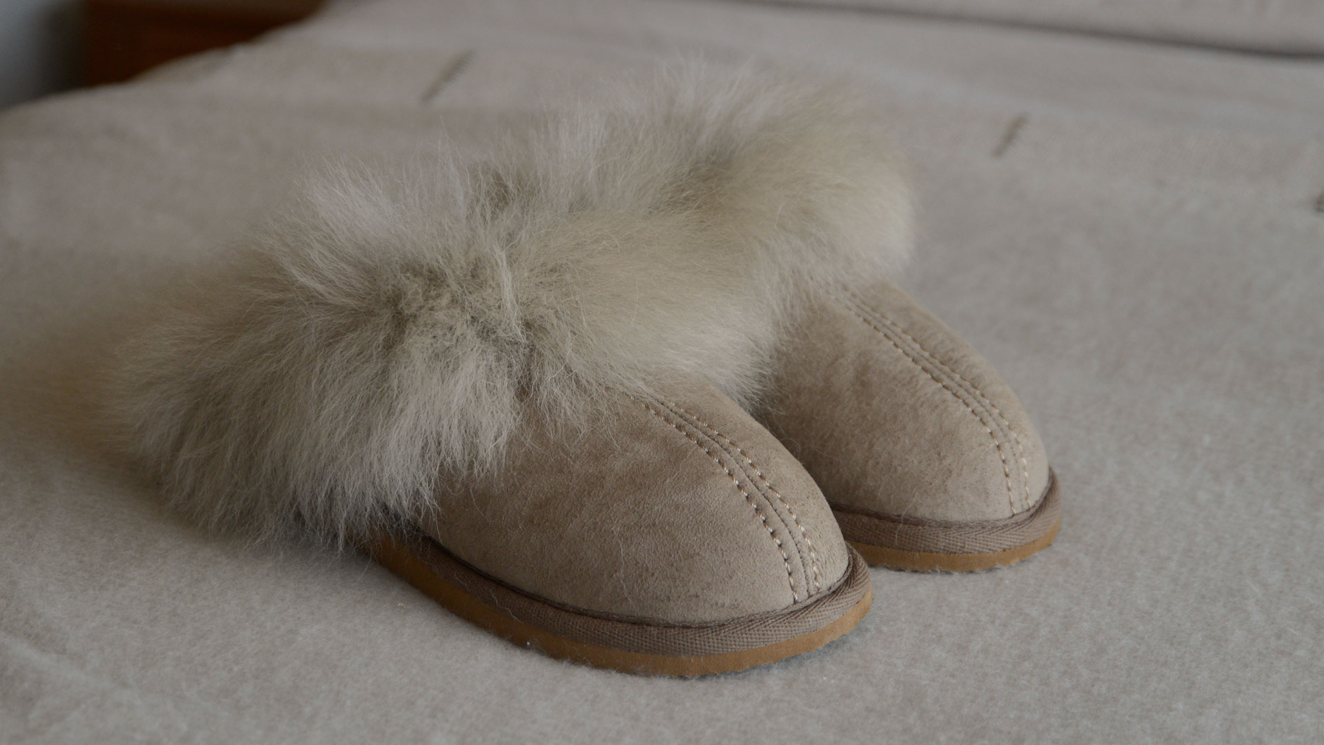 These cosy sheepskin slippers are super-soft and stylish. Available in a warm stone coloured suede, finished with decorative stitching. The outer ‘collar’ of fluffy fur is in a soft ecru colour, the inner lining is made from super-soft, deep-pile sheepskin in a cool taupe colour. These cosy sheepskin slippers also boast a hardwearing, EVA sole in a deep tan shade. Either a lovely treat for yourself, or a gift for a friend!