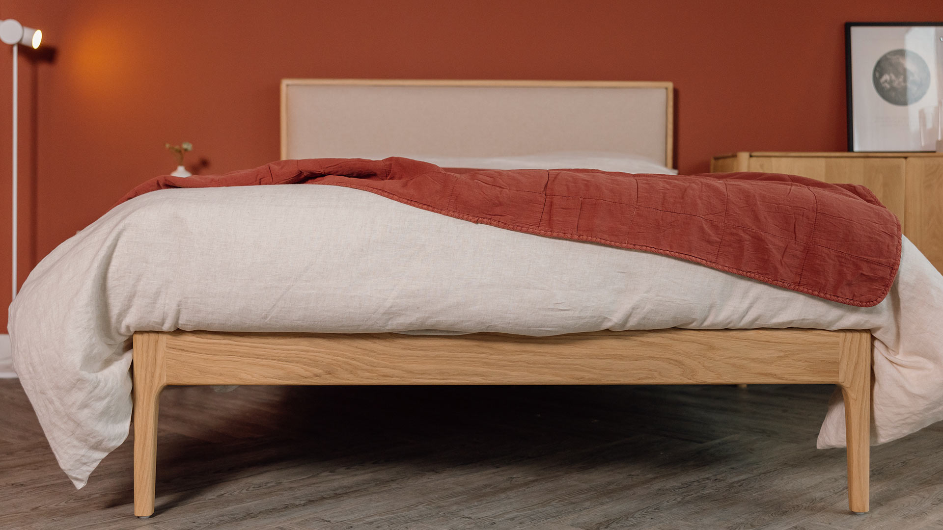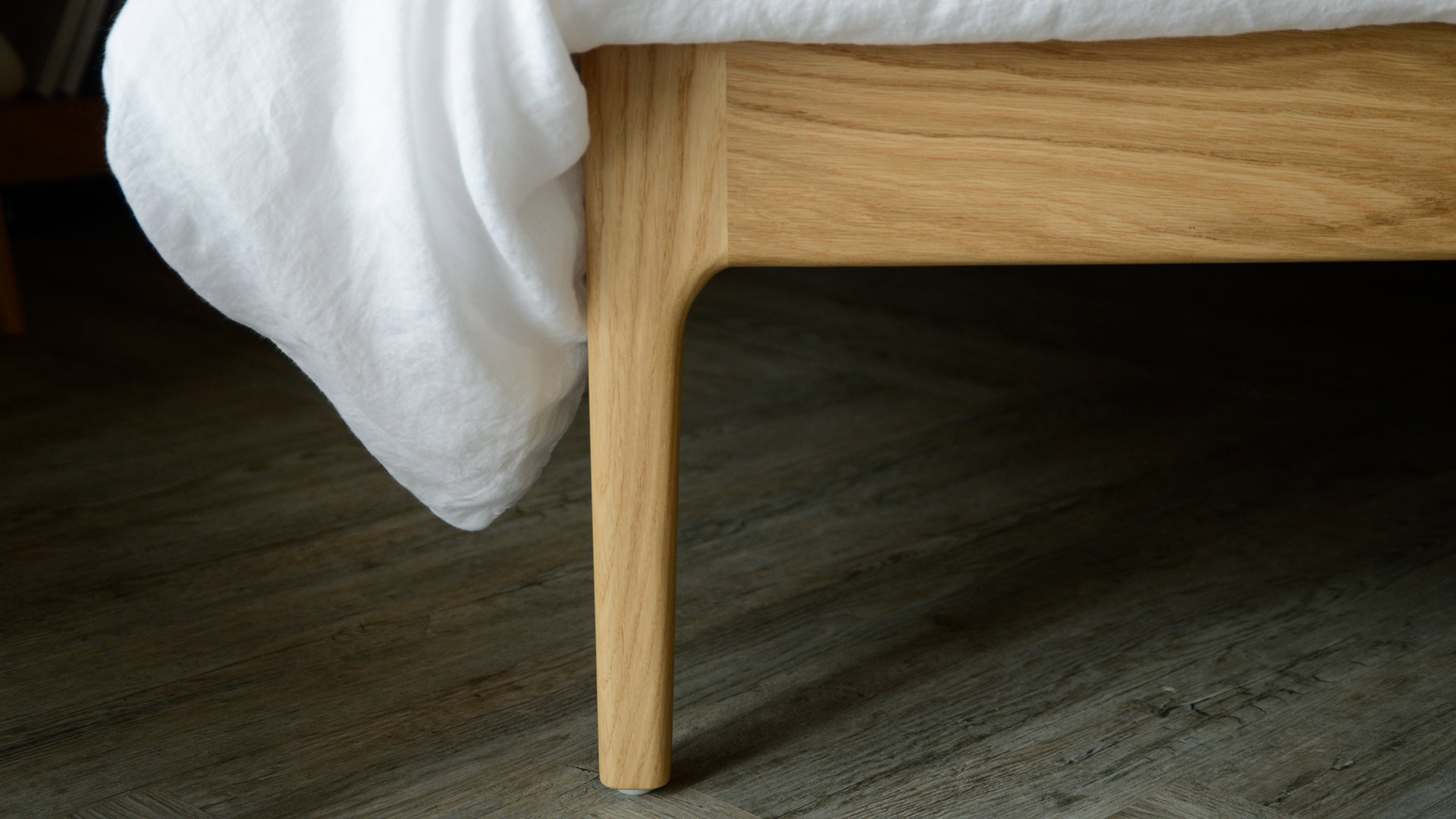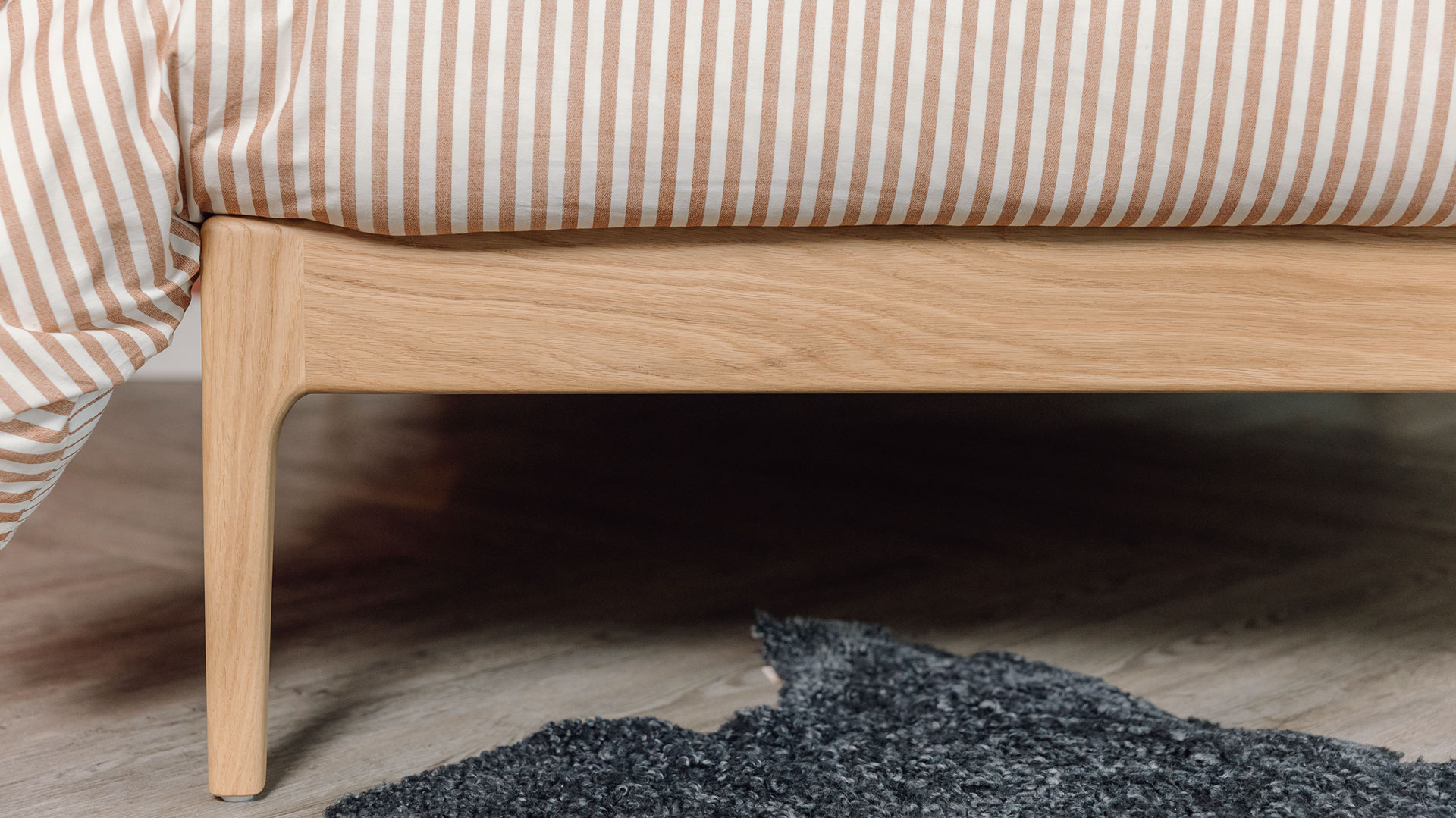 The Carlisle is a beautiful, contemporary bed with a mid-century style featuring a simple yet deep padded headboard for extra comfort. The curved frame is made of slender sections of solid timber for a soft retro look.