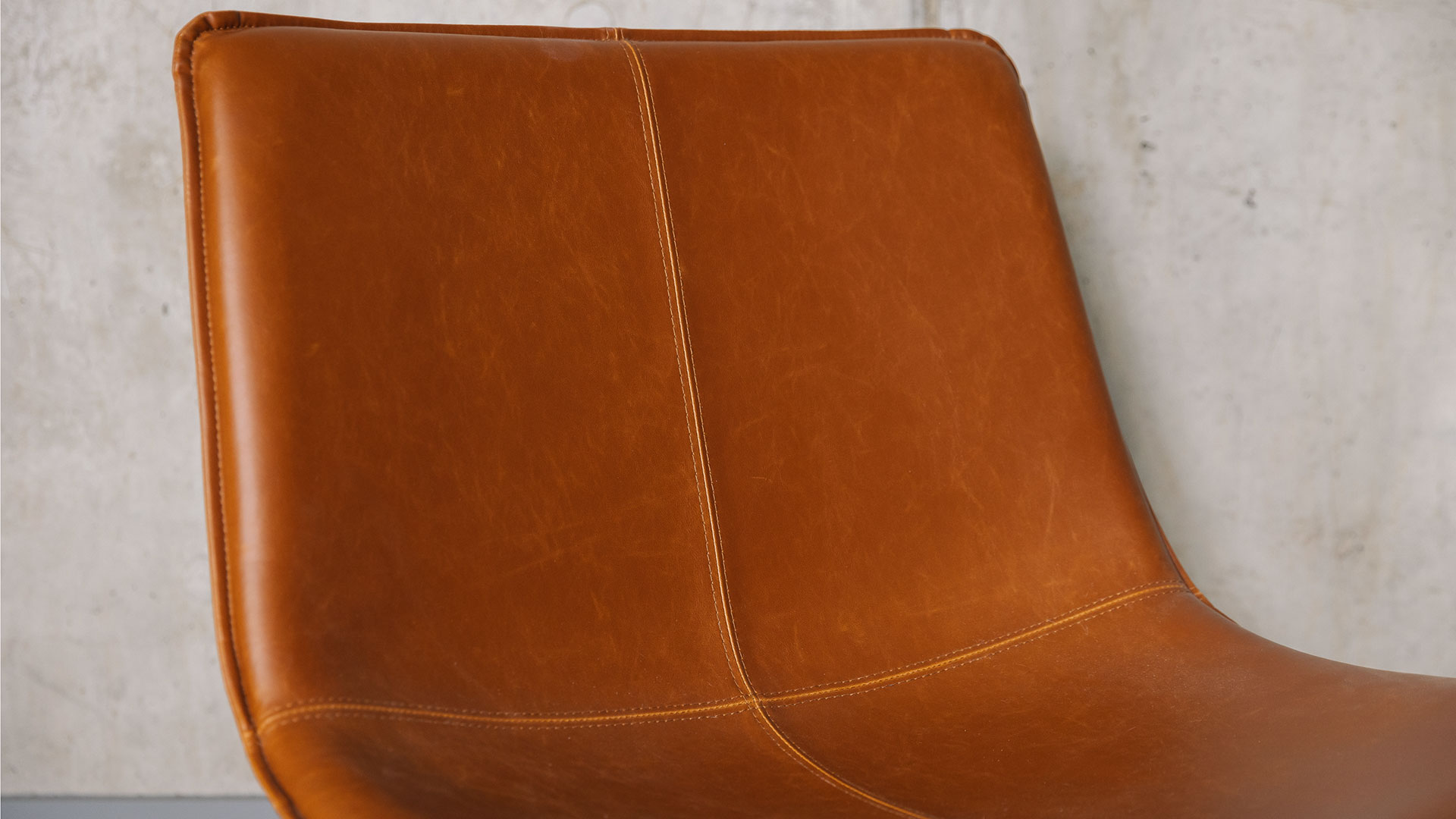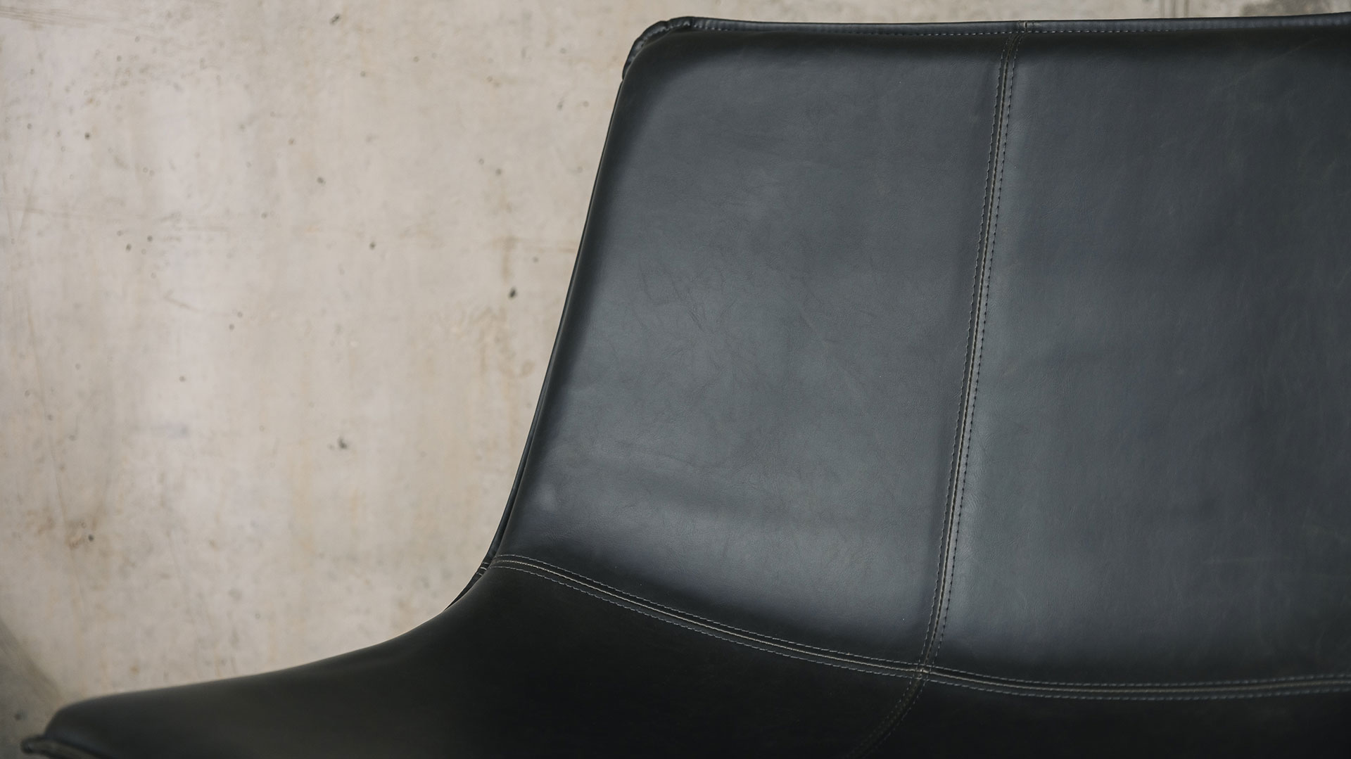 With a curved, moulded base, the faux leather stitched lounge chair is a perfect addition to any living space. Available in either classic tan or luxe charcoal faux leather. This stylish chair boasts a deep seat for comfort and ease. Pop an additional cushion on there to add a bit of personality, or just enjoy the stitched faux leather on show. A casual, retro style with a contemporary twist – the perfect partnership.