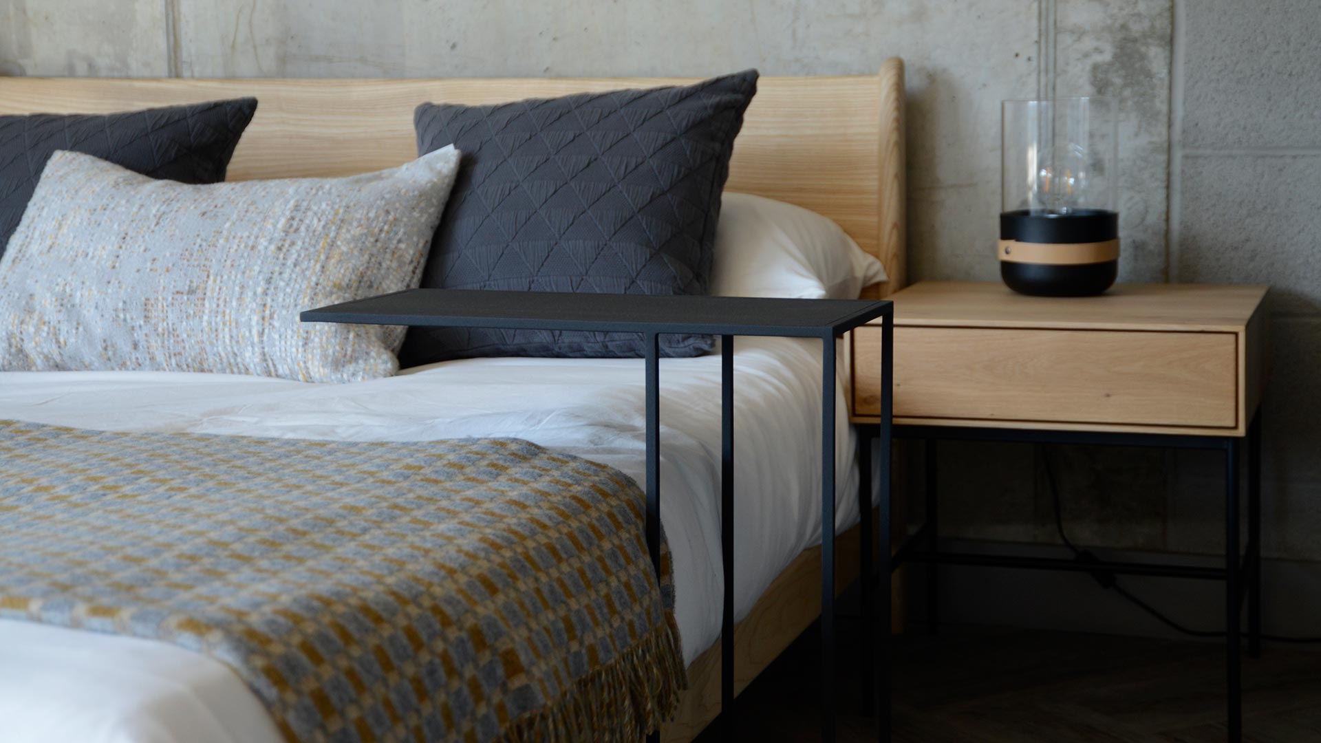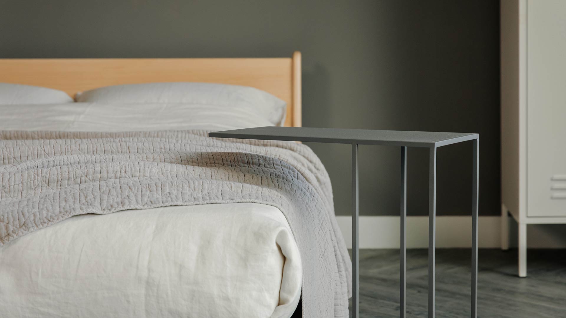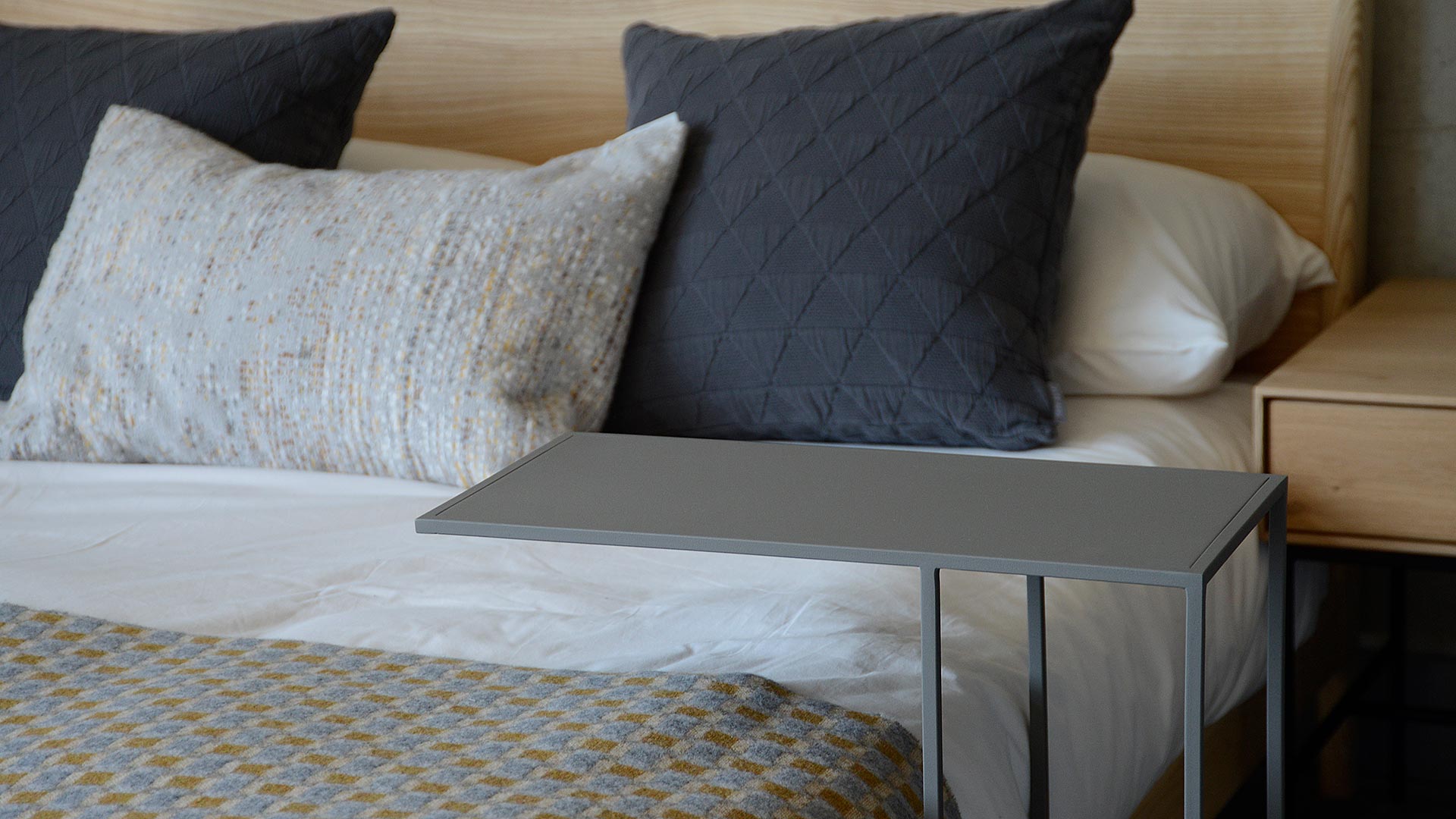 These stunning Fera tables will look fantastic in any modern bedroom or lounge. They particularly suit low beds where the top can sit over the mattress. Steel tables powder coated in the following colours: slate (almost black), warm grey or dove grey (a slightly paler grey with a hint of lilac).