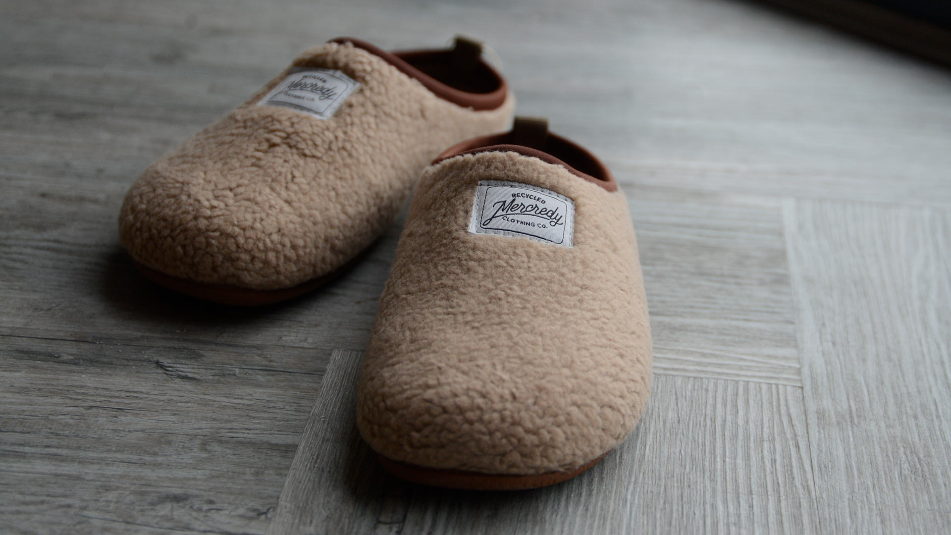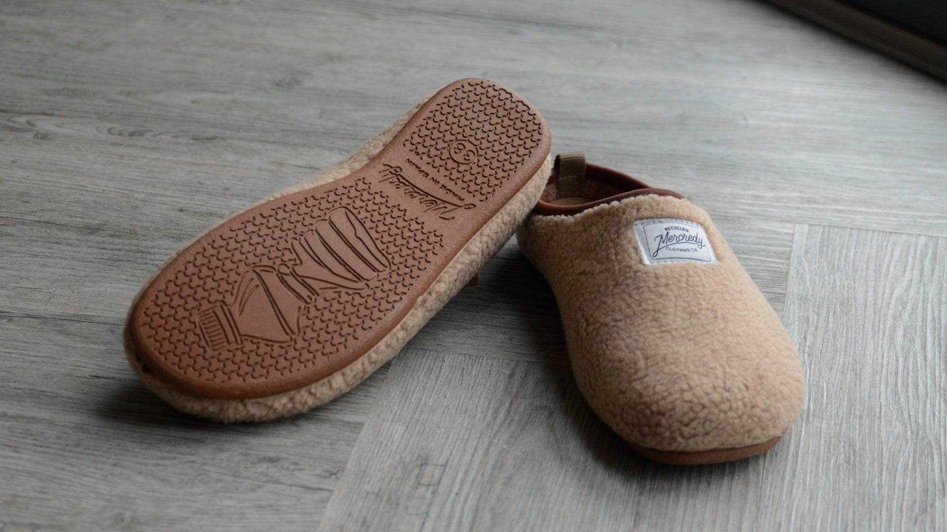 These sustainable slippers are available in the following colours: Beige: A warm beige fleecy upper with brown rubber sole Grey: A mid grey fleecy upper with grey rubber sole
