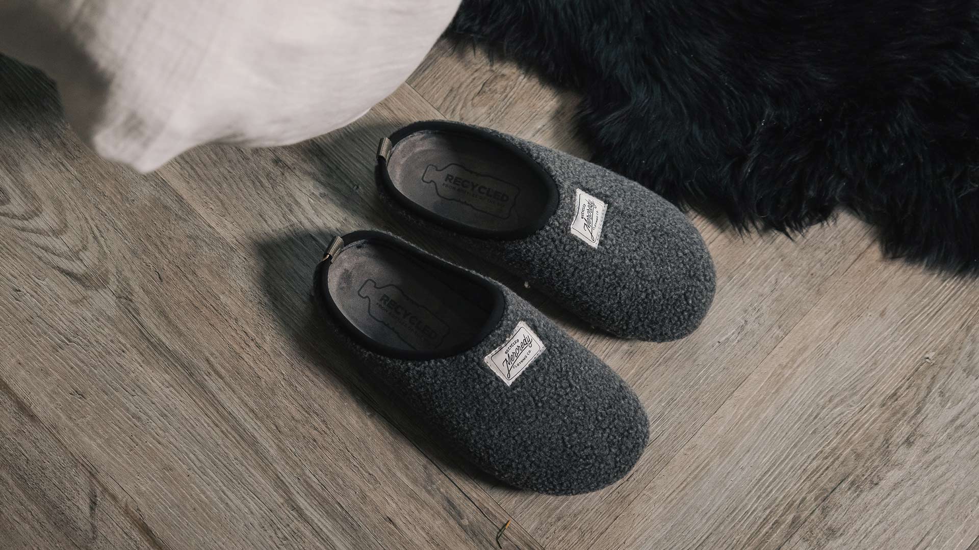 Sustainable slippers – comfy, eco-friendly and in a range of subtle and bold colours. A recycled plastic upper that feels like soft fleece, with a natural rubber sole.