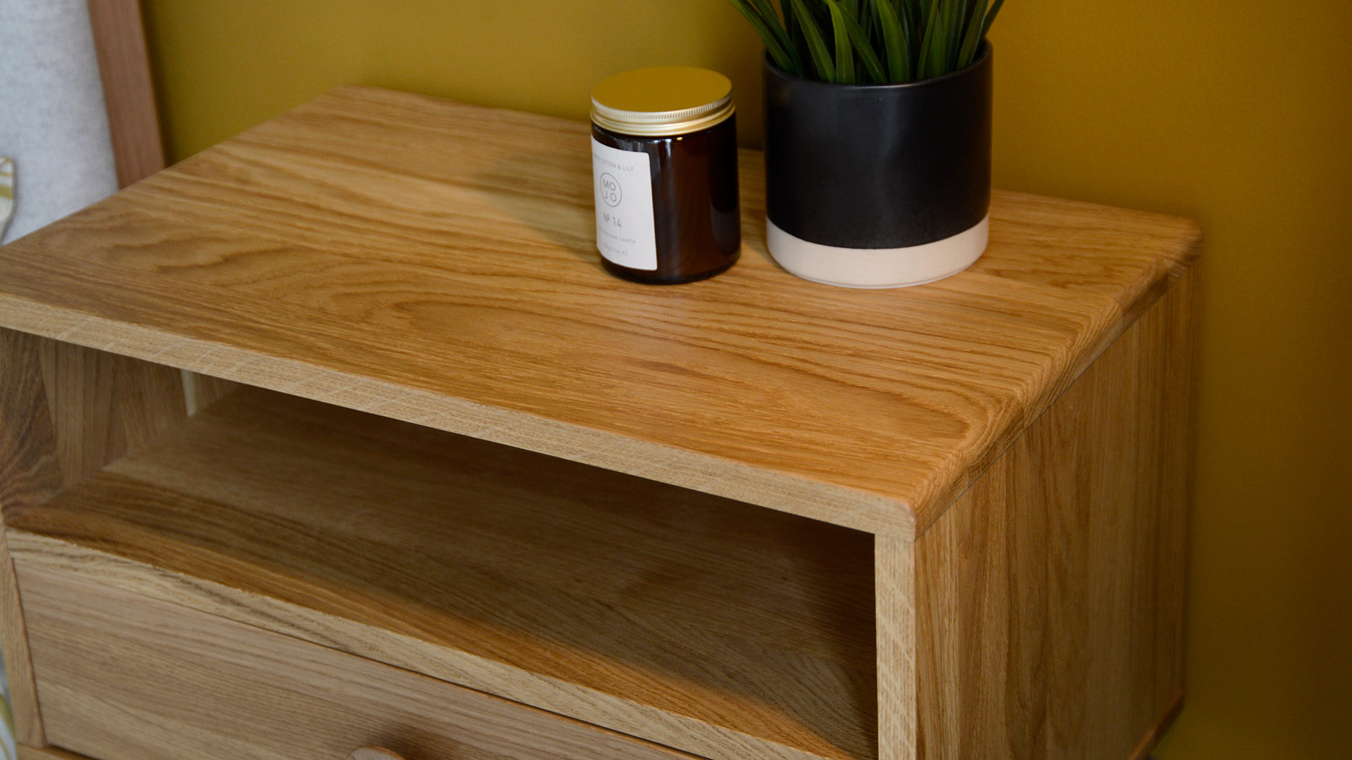 With sleek, curved edges, these bedside units match wonderfully with contemporary or mid-century bed designs. For example, take a look at our Camden or Hoxton beds. You can choose between either 2 drawers or 1 lower drawer and an upper shelf. These units also offer extra space for storage; without compromising on that minimalist style.