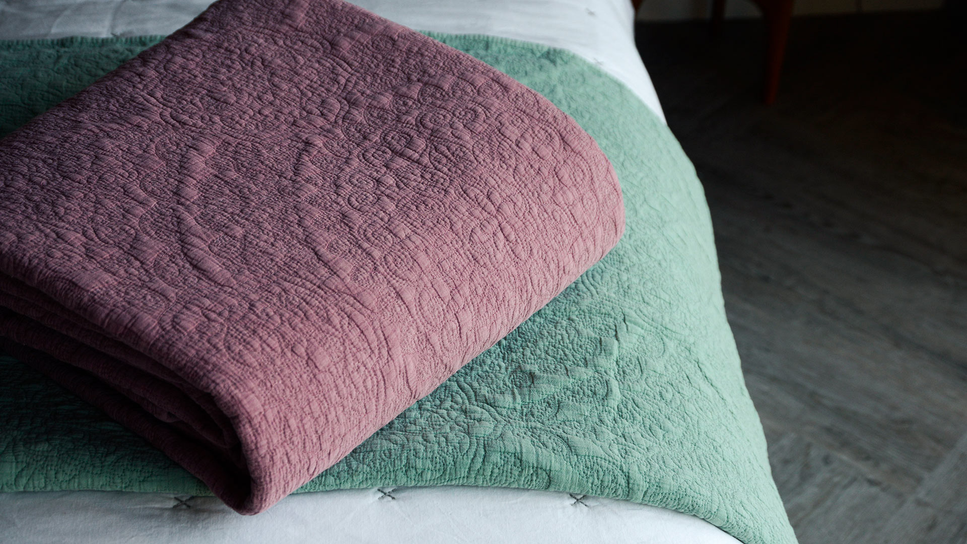 These floral mandala embroidered bedspreads boast unique, circular pattern surrounded by swirling paisley flowers. Ideal for summer vibes the year round, but always cosy in a soft stonewash cotton.