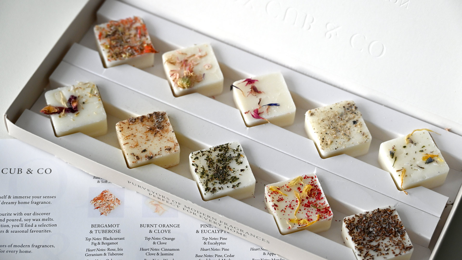 Modern, sophisticated and luxurious Fox Cub & Co scented wax melts. The perfect way to bring atmosphere and fragrance to any room, these wax melts make the perfect gift for a friend, or a treat for yourself. This Discovery Collection gift box set includes 10x individually scented wax melts in a range of fragrances for you to find your favourite.
