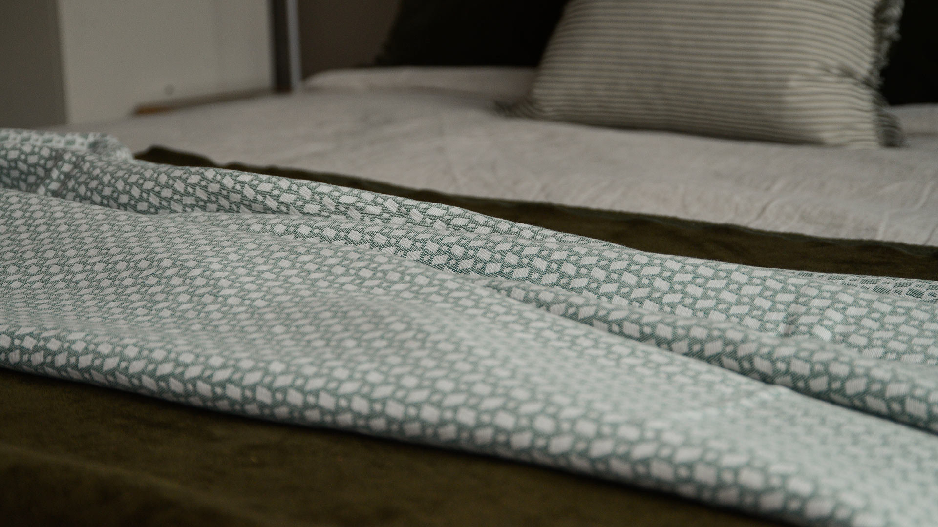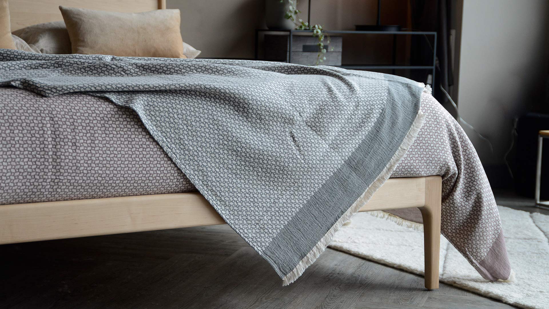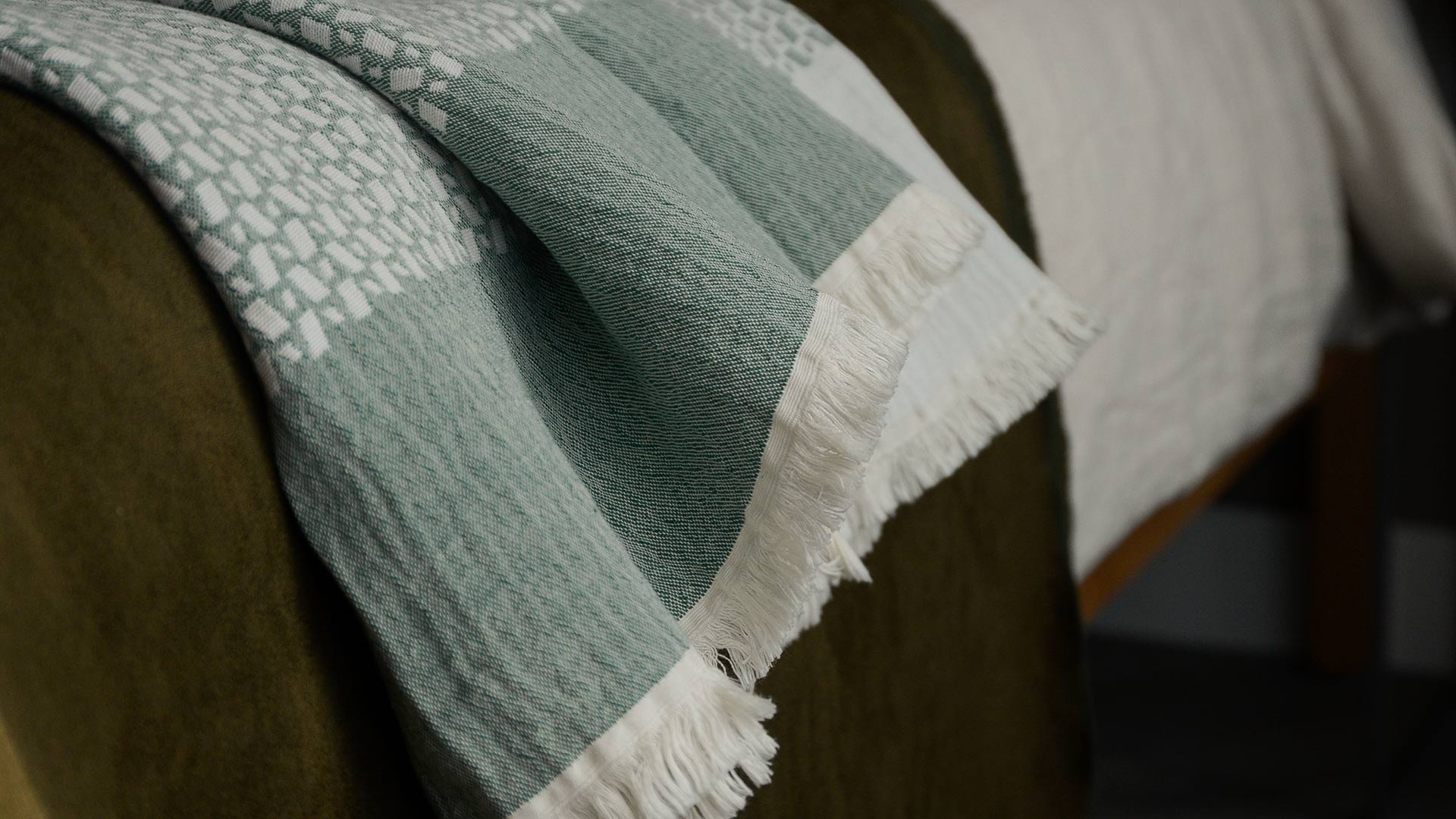 Modern, geometric cotton throws and large bedspreads available in 3 colours. 100% cotton.