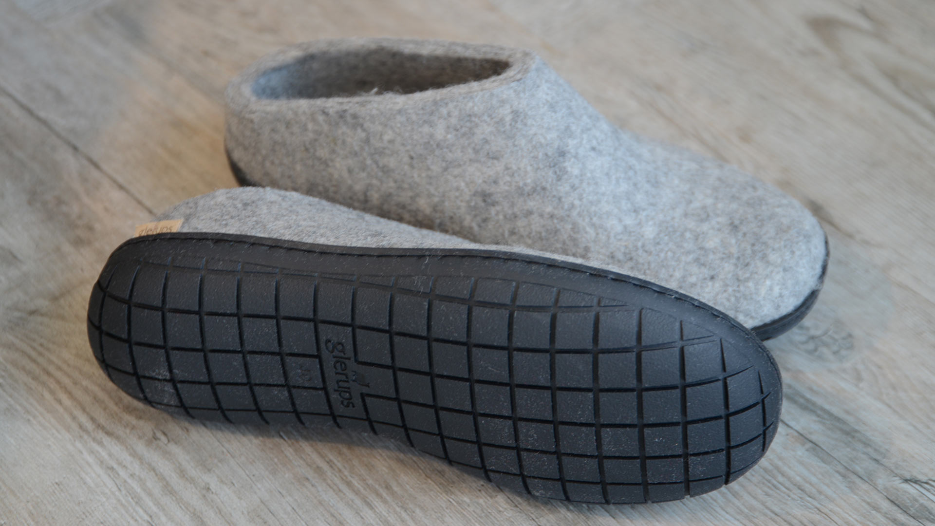 These slippers with rubber soles are from Glerups. They are a natural product, so you may still find traces of small vegetable fibres in the felt. These may “shed” a little during the first days of use. The reason for this is that the coarsest fibres work their way out of the felt over time. It is only natural, and the fibres just need to be plucked off!