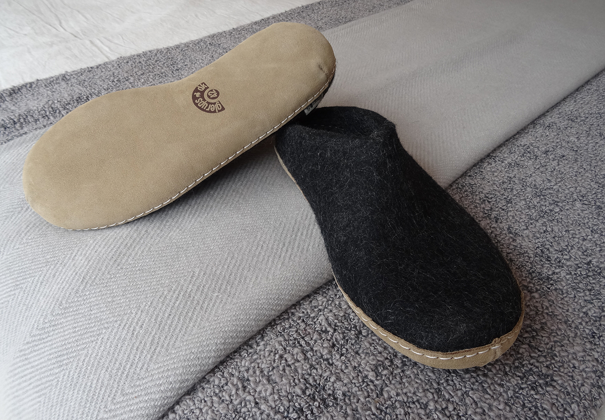 These slippers are a truly natural product. For instance, you may still find traces of small vegetable fibres in the felt. They also may “shed” a little during the first days of use, which is completely normal. This is because the coarsest fibres work their way out of the felt over time. These little fibres just need to be plucked off your Glerups felt slippers to keep them looking their best!