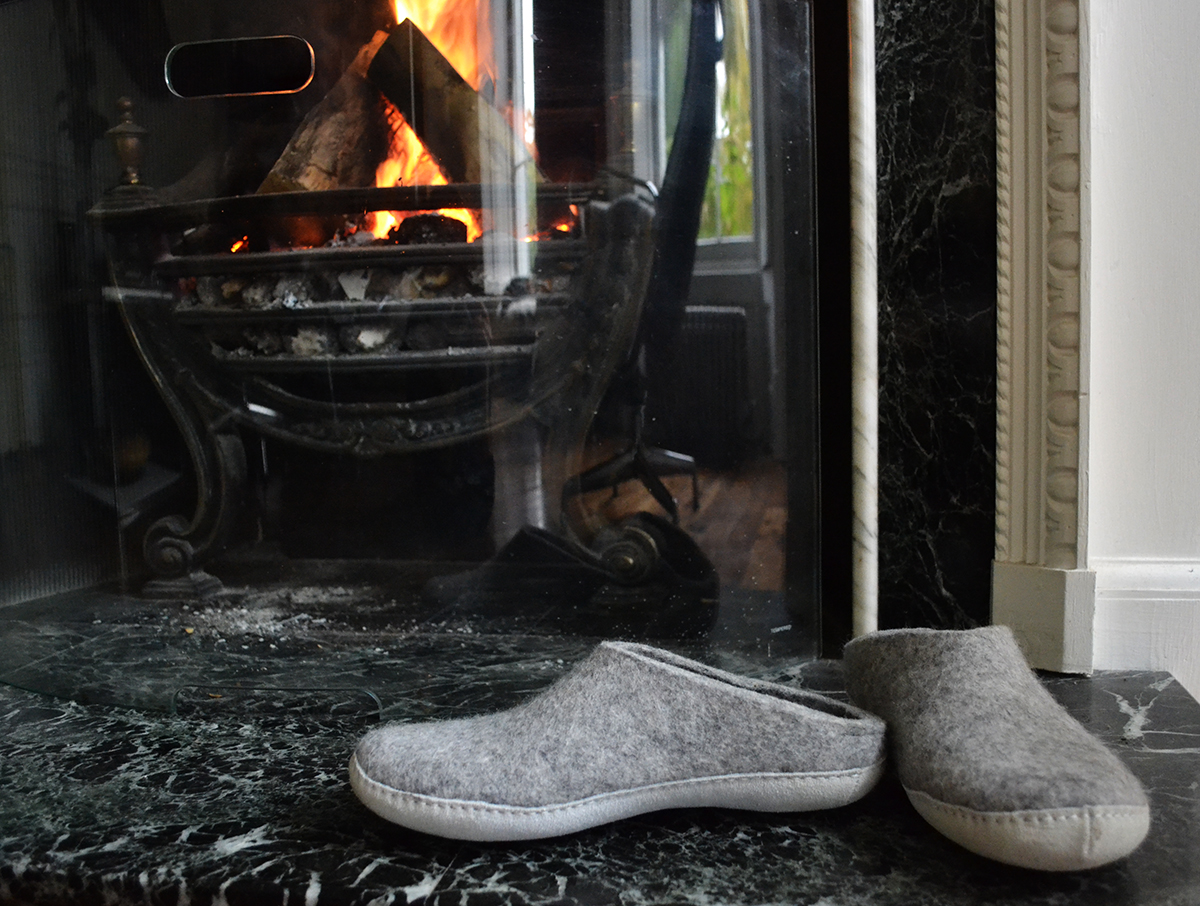 A range of contemporary, felted wool slippers from Glerups, Denmark. Made of beautiful natural wool for the ultimate in comfort and warmth, they are available in charcoal, silver-grey and petrol blue. The sole is in either pale grey or beige. In-door slipper-shoes are also available in grey, petrol blue or red. The fleece is washed in soft lime-free water, trimmed, edged and fitted with soles of pure soft calf skin – ready to warm you on those cold winter nights!