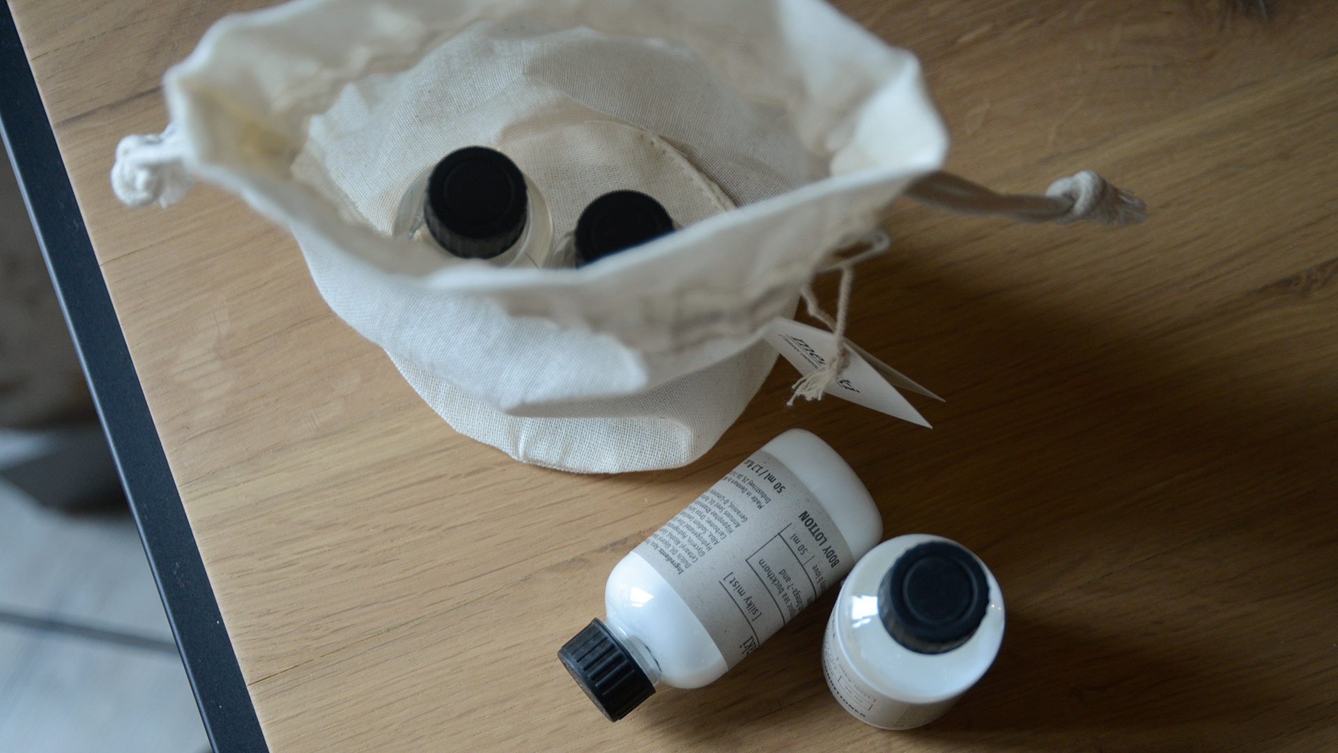 This lovely travel set is the perfect way to keep your skin and hair clean and healthy while on the go. The set contains four products indispensable for hair and body care when travelling. Complete with shampoo, conditioner, body lotion, and body wash. Also, these travel items are hotel-sizes of 50ml each; so you can travel abroad with them in your hand luggage. Housed in a pretty, ivory bag made of 100% cotton. (The bag can be washed at 60°C and can also withstand tumble drying).