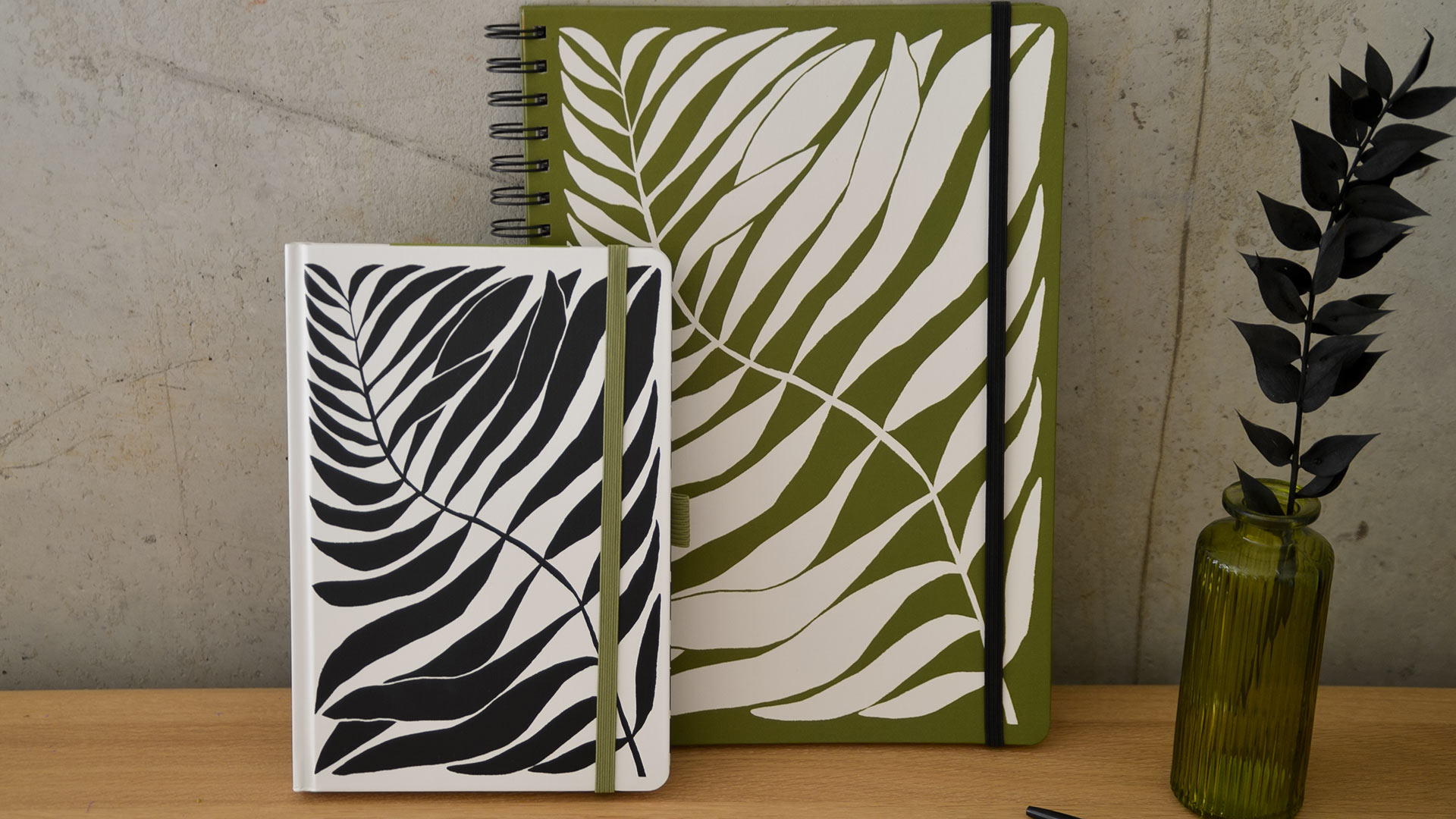 Durable and stylish lined notebooks with a leaf print design. Available in two sizes;