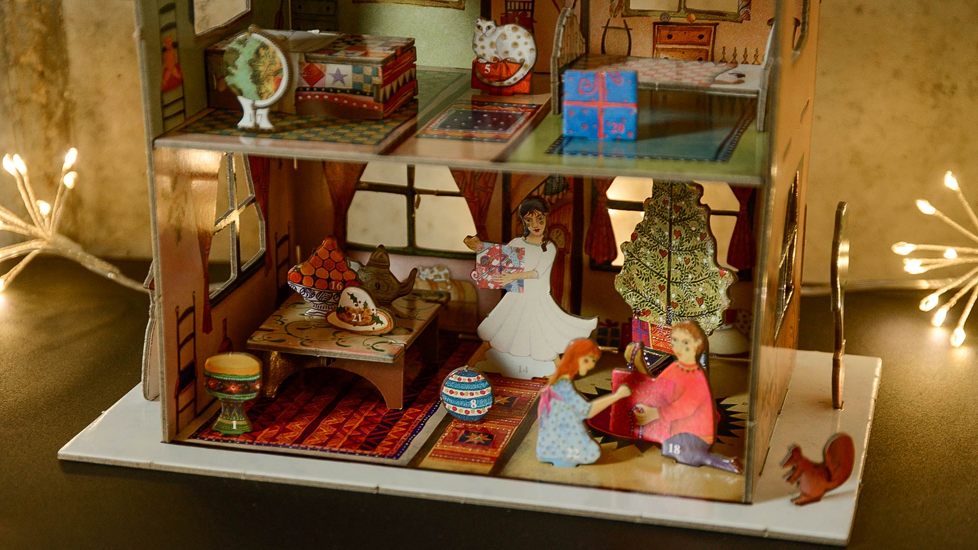 An iconic 3D advent calendar, featuring artwork by Jane Ray, this advent calendar doubles as a unique festive decoration and family activity. Contains 3 sheets with 24 cardboard pop out icons