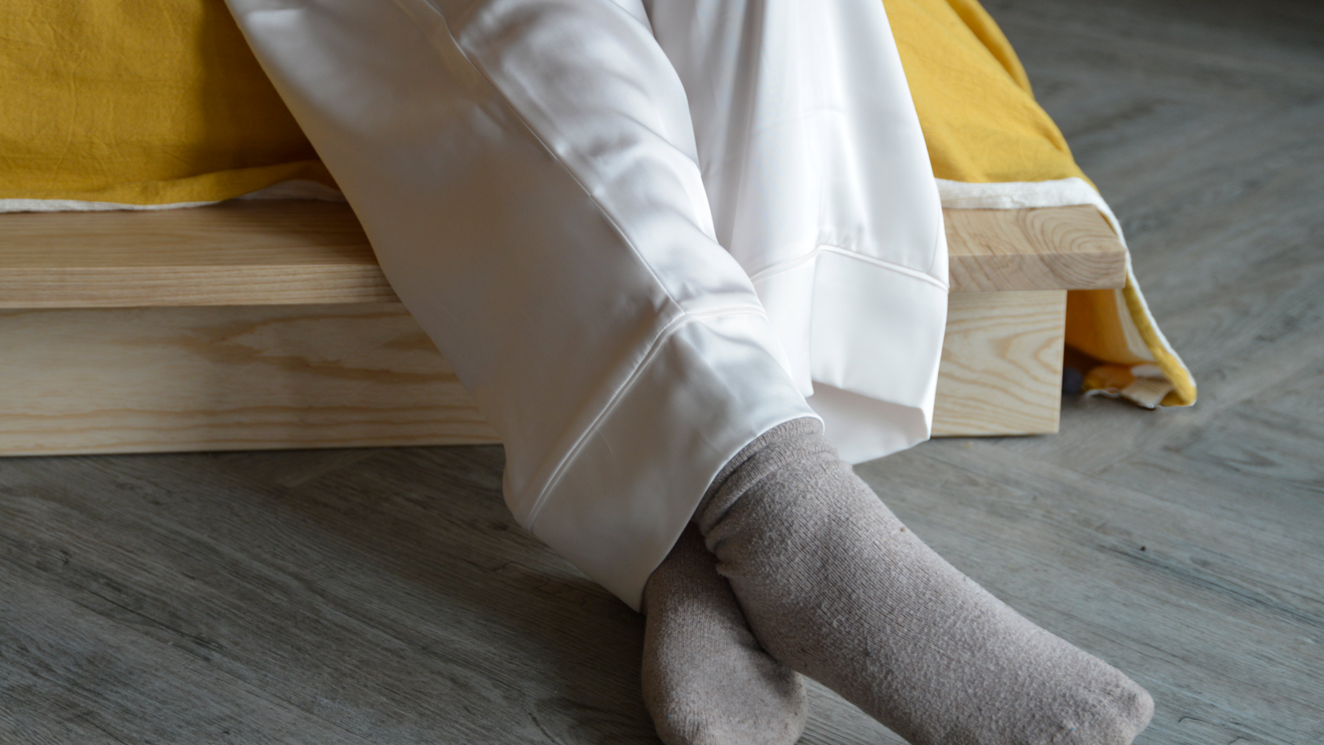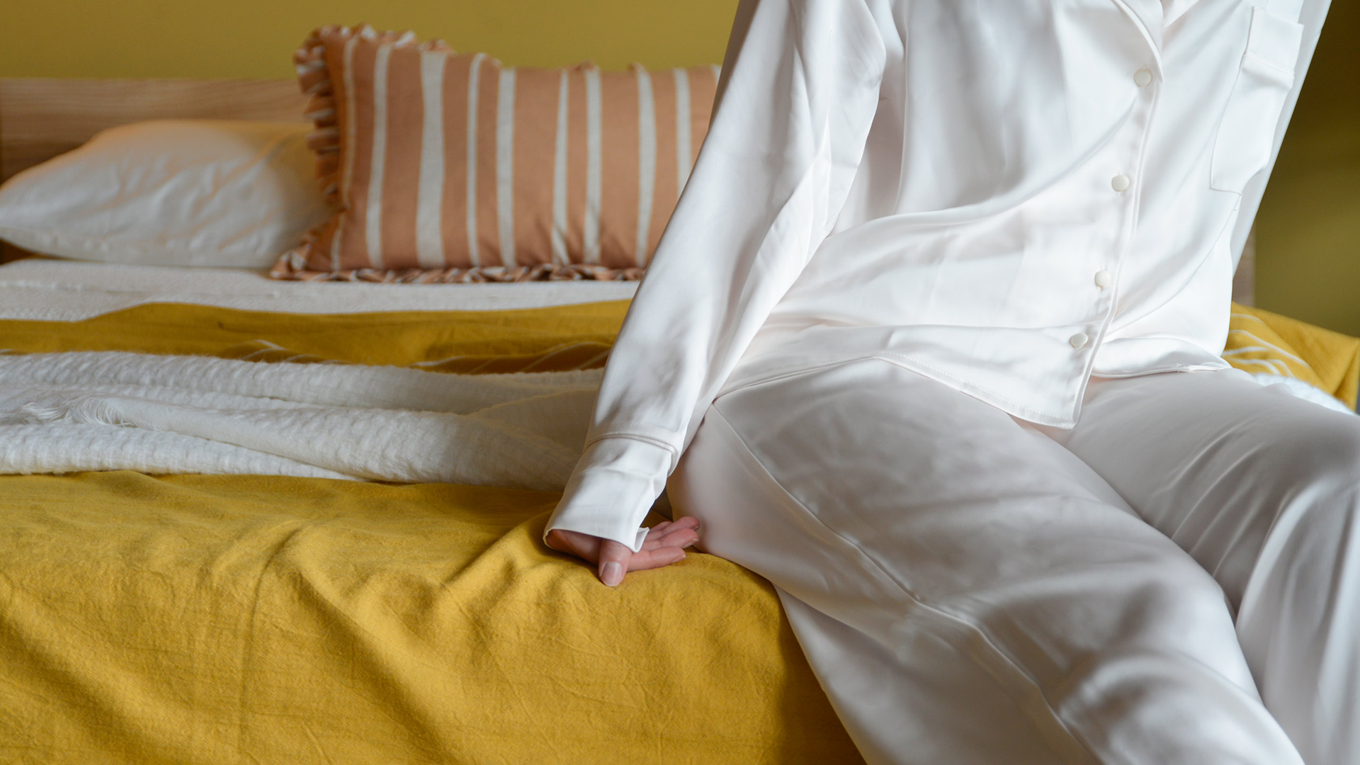Silky smooth, these luxury satin pyjamas are the perfect loungewear for a cosy night in. In a delicate, ivory white shade. The pyjama top also features a handy breast pocket and covered satin buttons, and pyjama bottoms have a draw string tie. These luxuriously soft satin pyjamas also make a wonderful gift – either a treat for yourself or a gift for a friend.