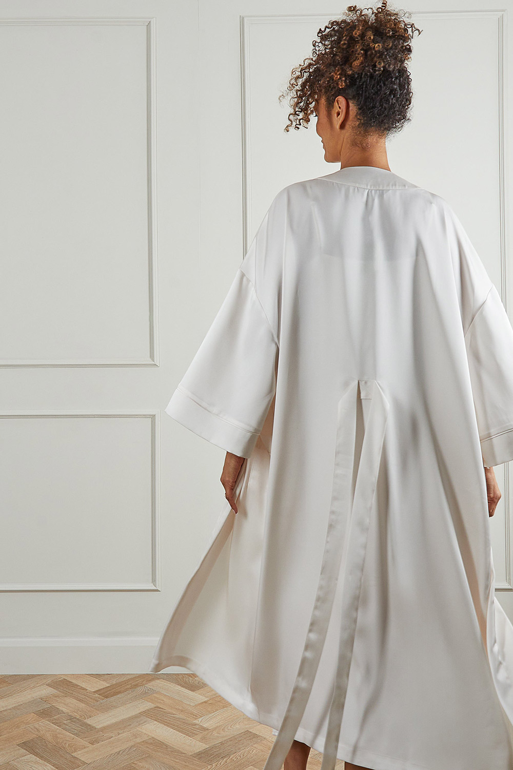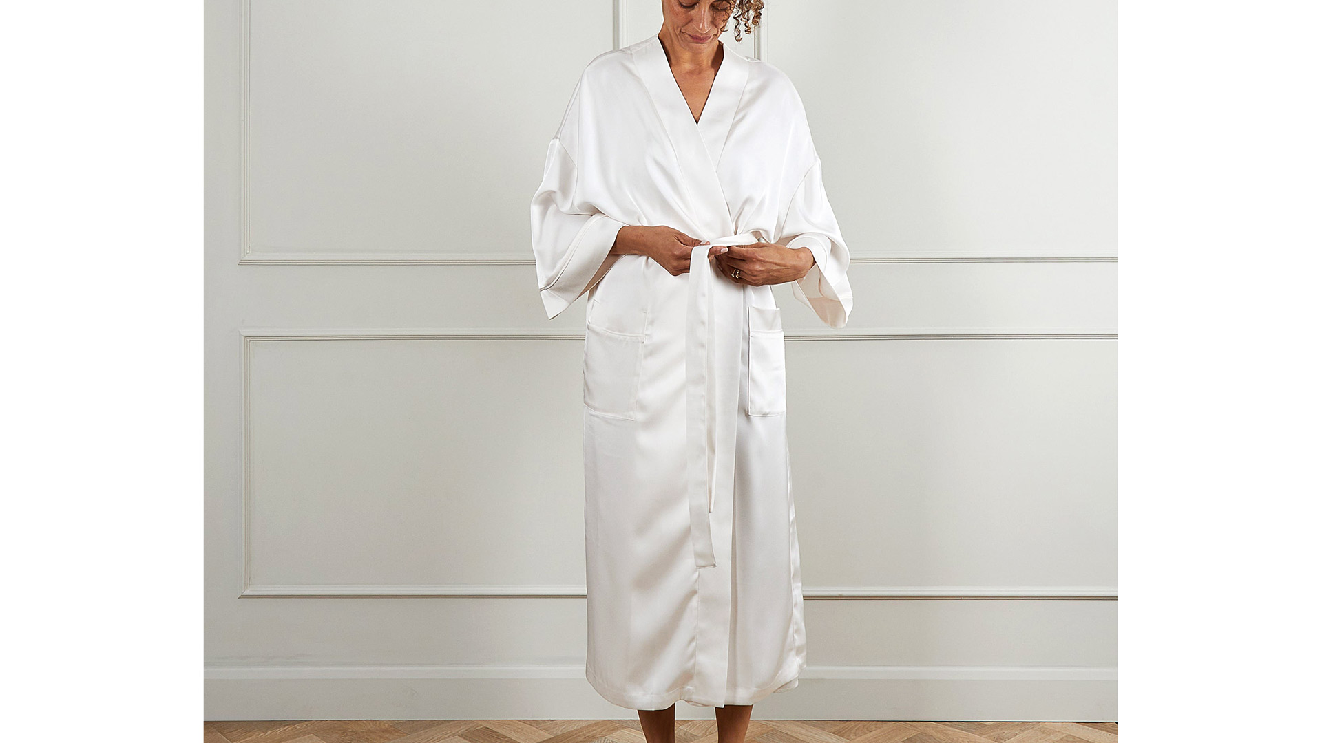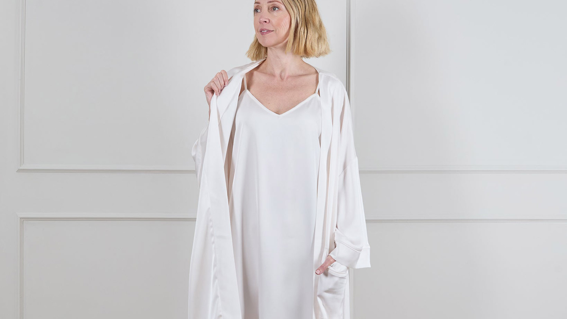 A lightweight, silky smooth satin robe in a classic ivory white colour. Matching pyjamas are also available just here.
