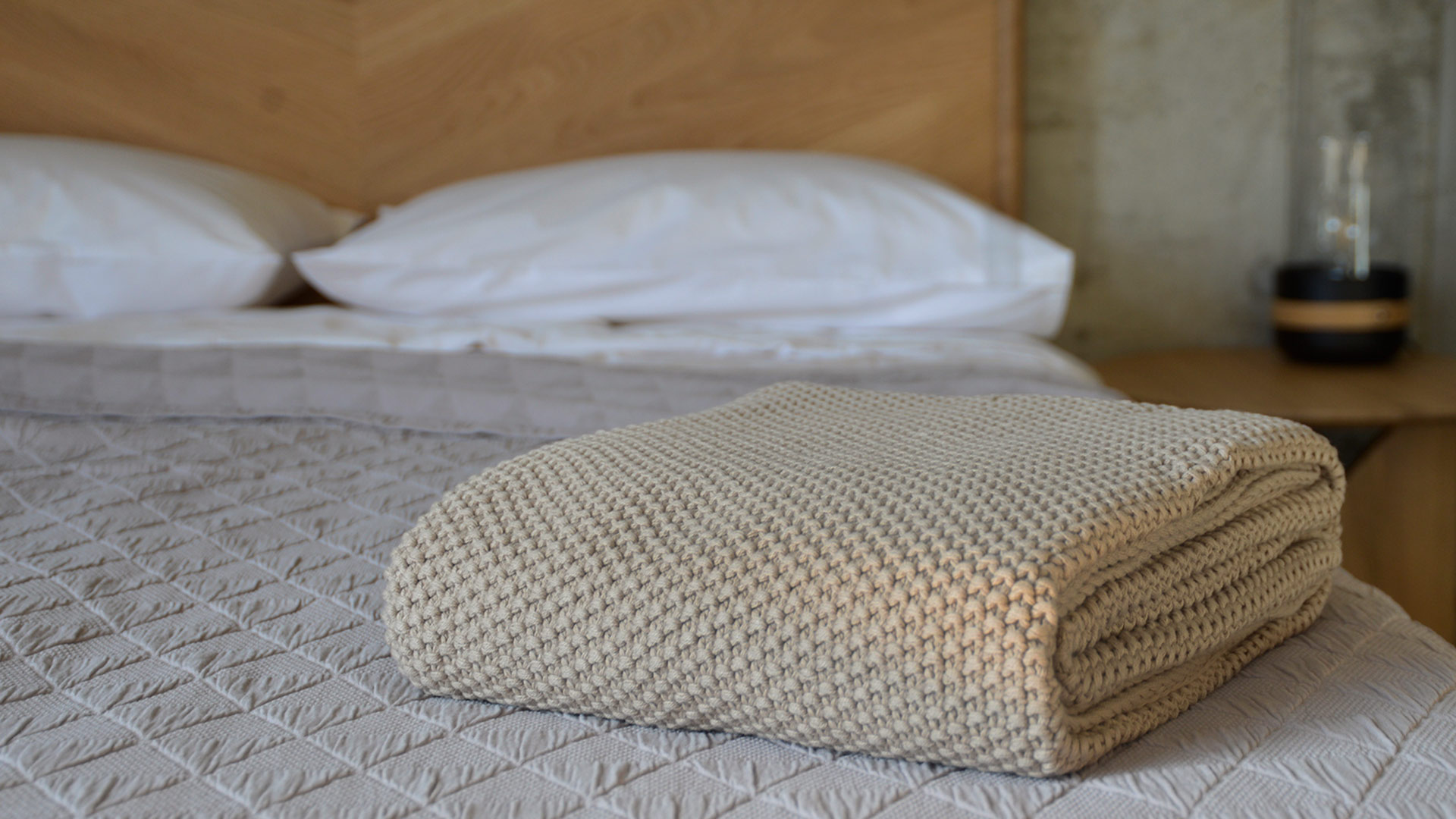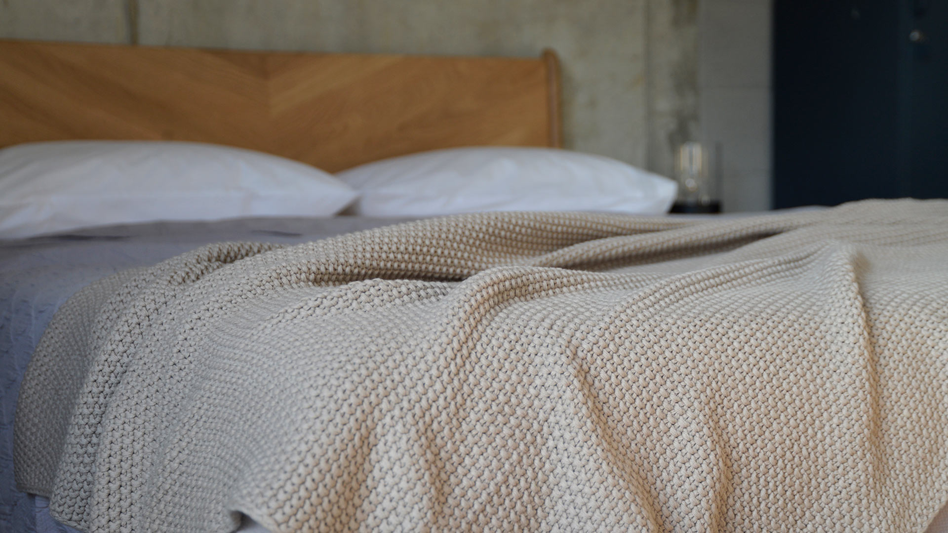 A cosy, handmade knitted throw in a light taupe colour. A stylish way to add texture to your bedding scheme – this cotton-rich throw is in a fashionable, pale ‘greige’ shade. Easy to pair with almost any colour scheme thanks to its neutral shade. Ideal for draping over the sofa or as an extra layer for your bedding.