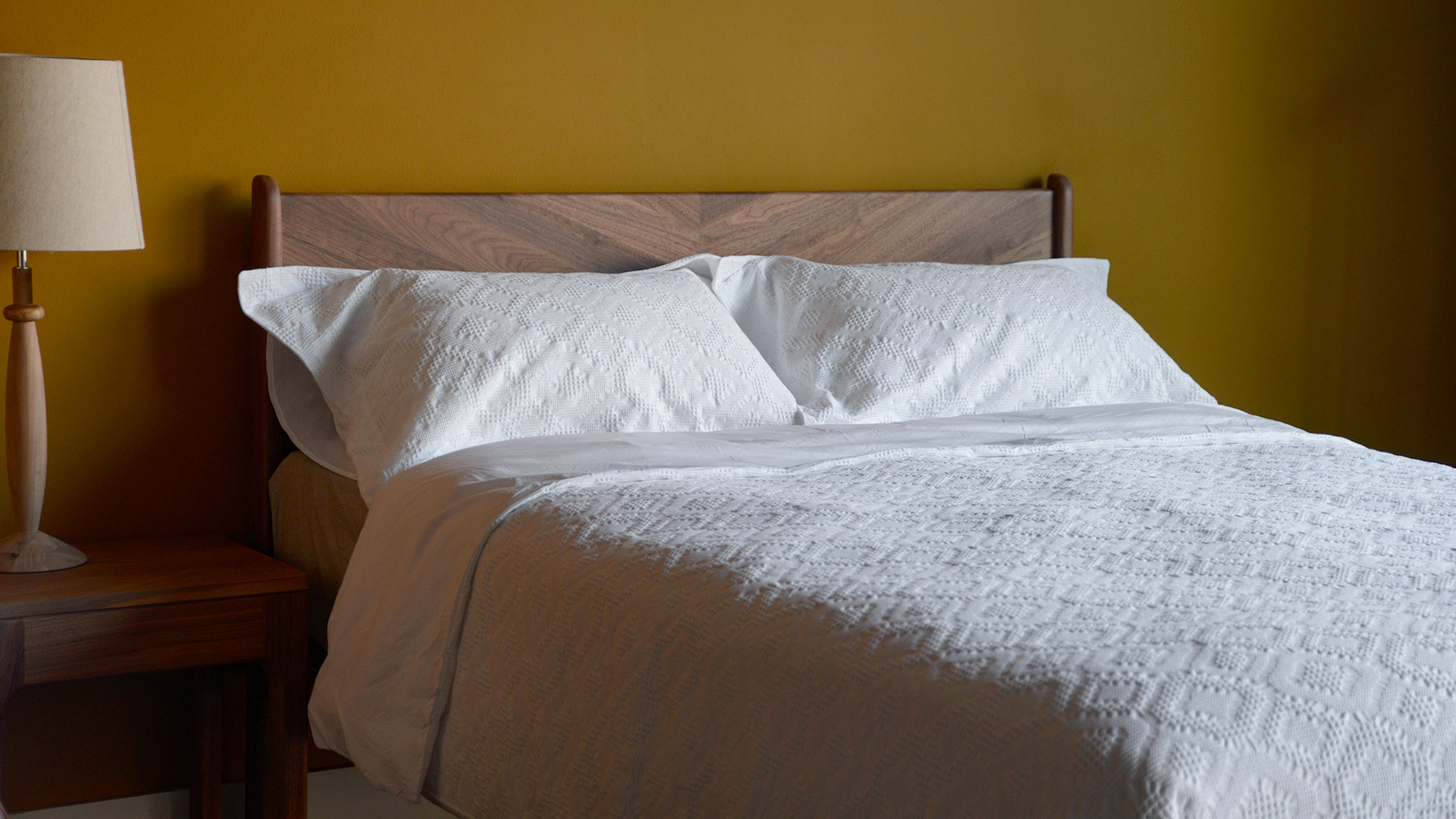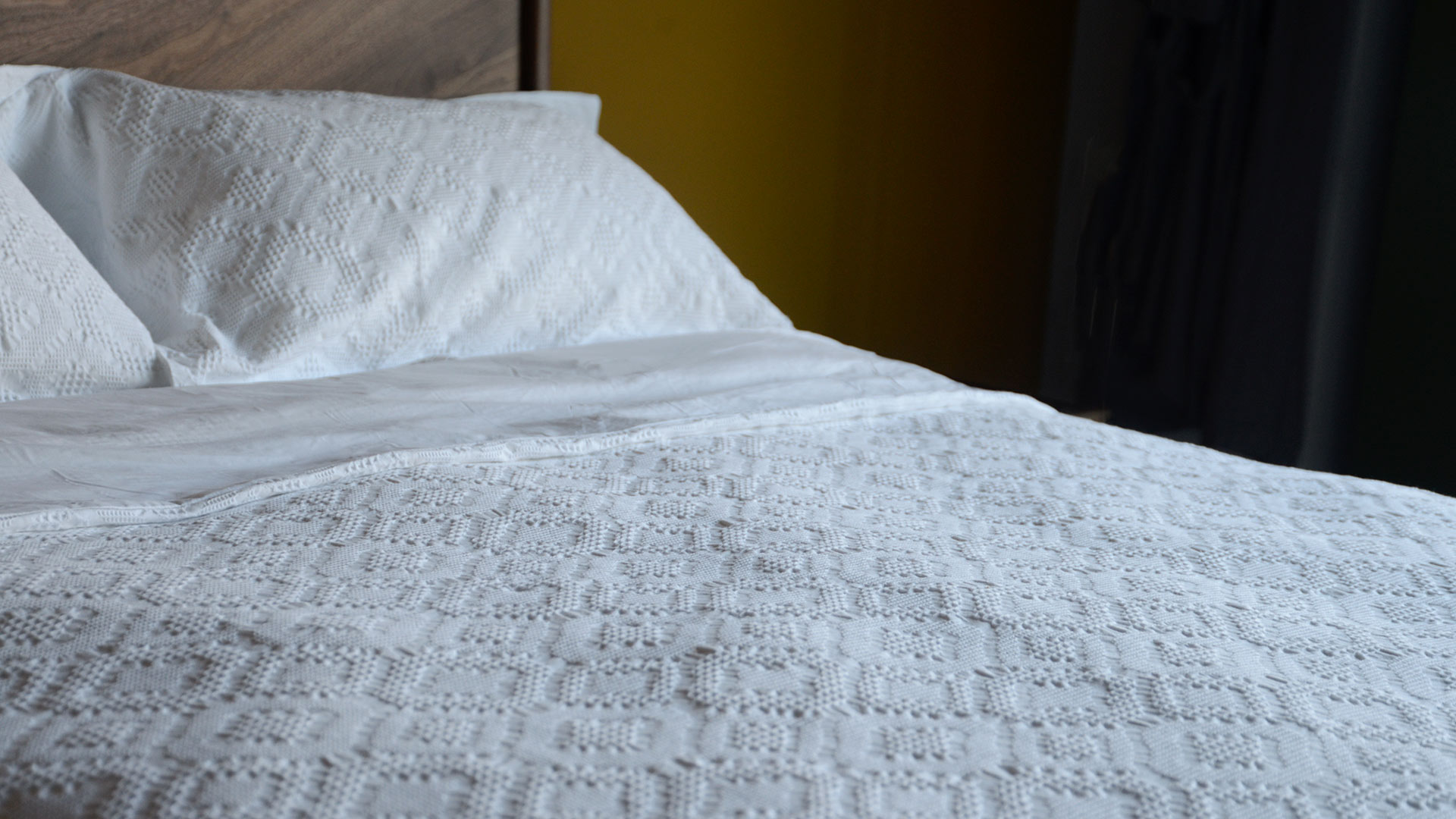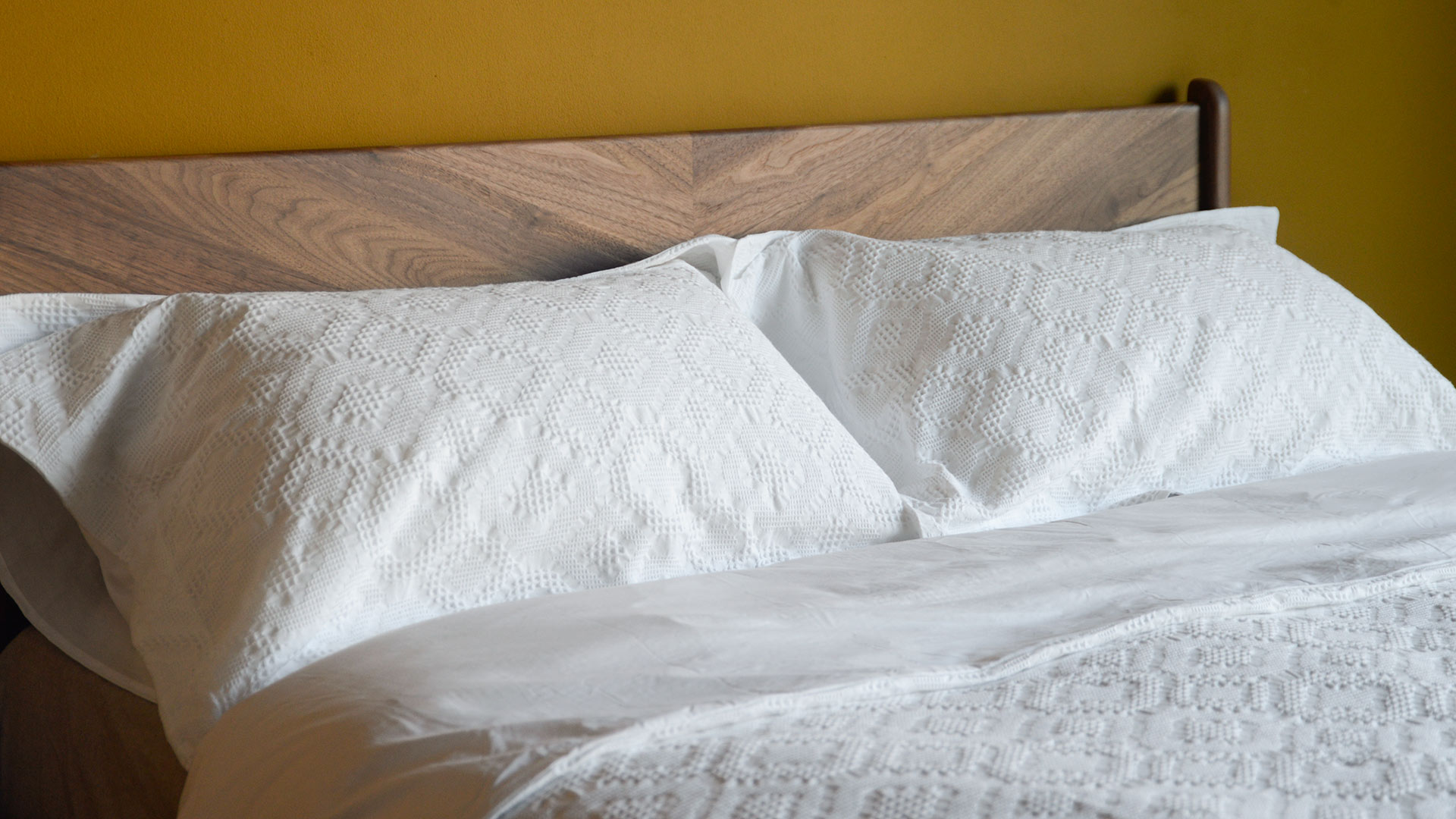 These textured duvet sets have a gorgeous waffle feel. Crafted with tactile, woven Jacquard cotton and backed with 300 thread count cotton percale, this duvet set provides a luxurious night’s sleep. 100% cotton. Ideal on its own or paired with a bedspread. Sets include two matching Oxford pillowcases with a 5cm flap.