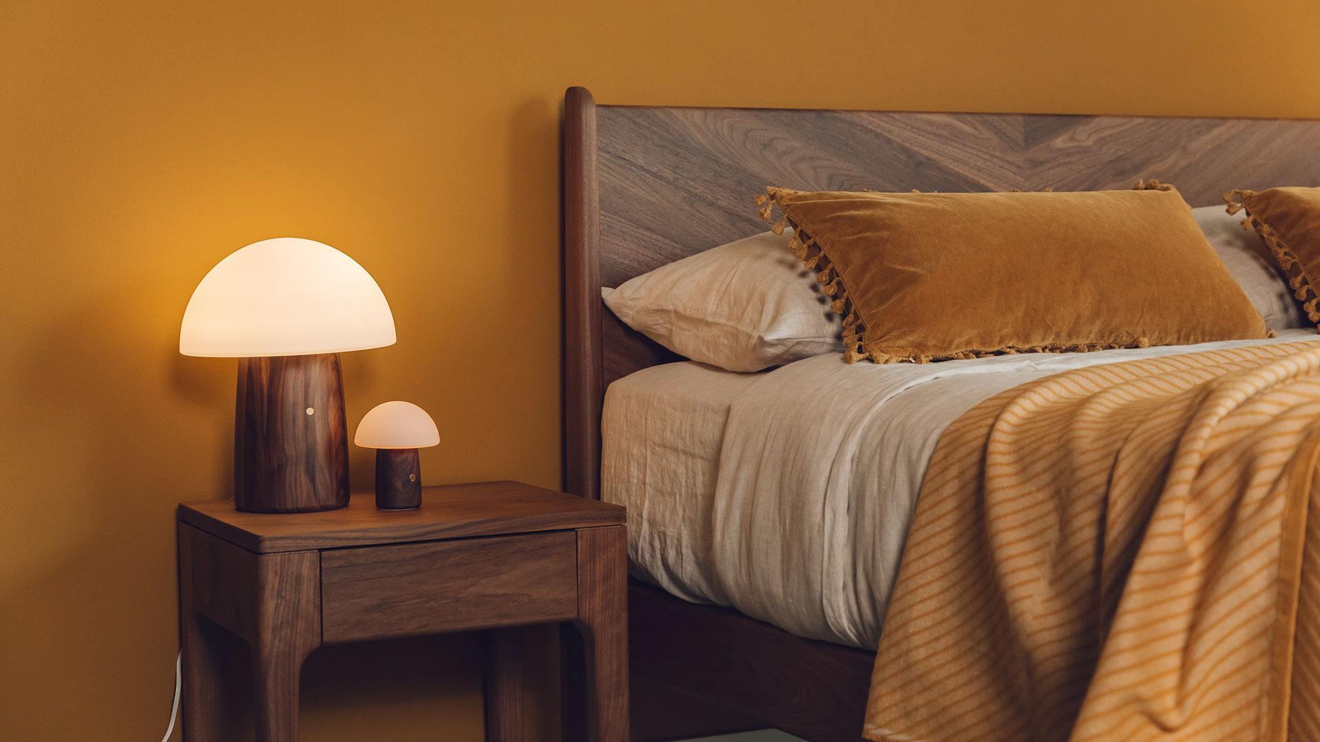 These colour changing mushroom lamps are made using natural timber. Therefore, variations in pattern, tone and grain are to be expected.