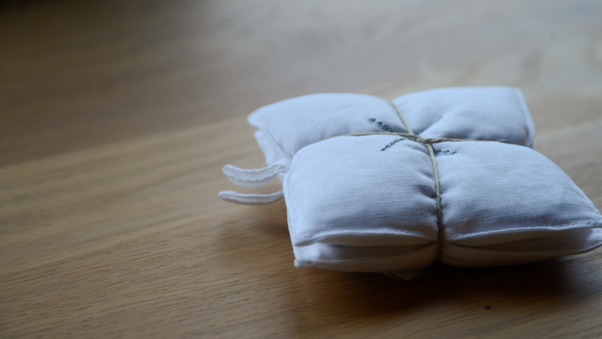 Ivory white linen bags filled with Lavender, and embroidered with a simple cross. Available as a gift set of 2 sachets to fill your wardrobe, your linen closet, your suitcase or your home with the relaxing aroma.