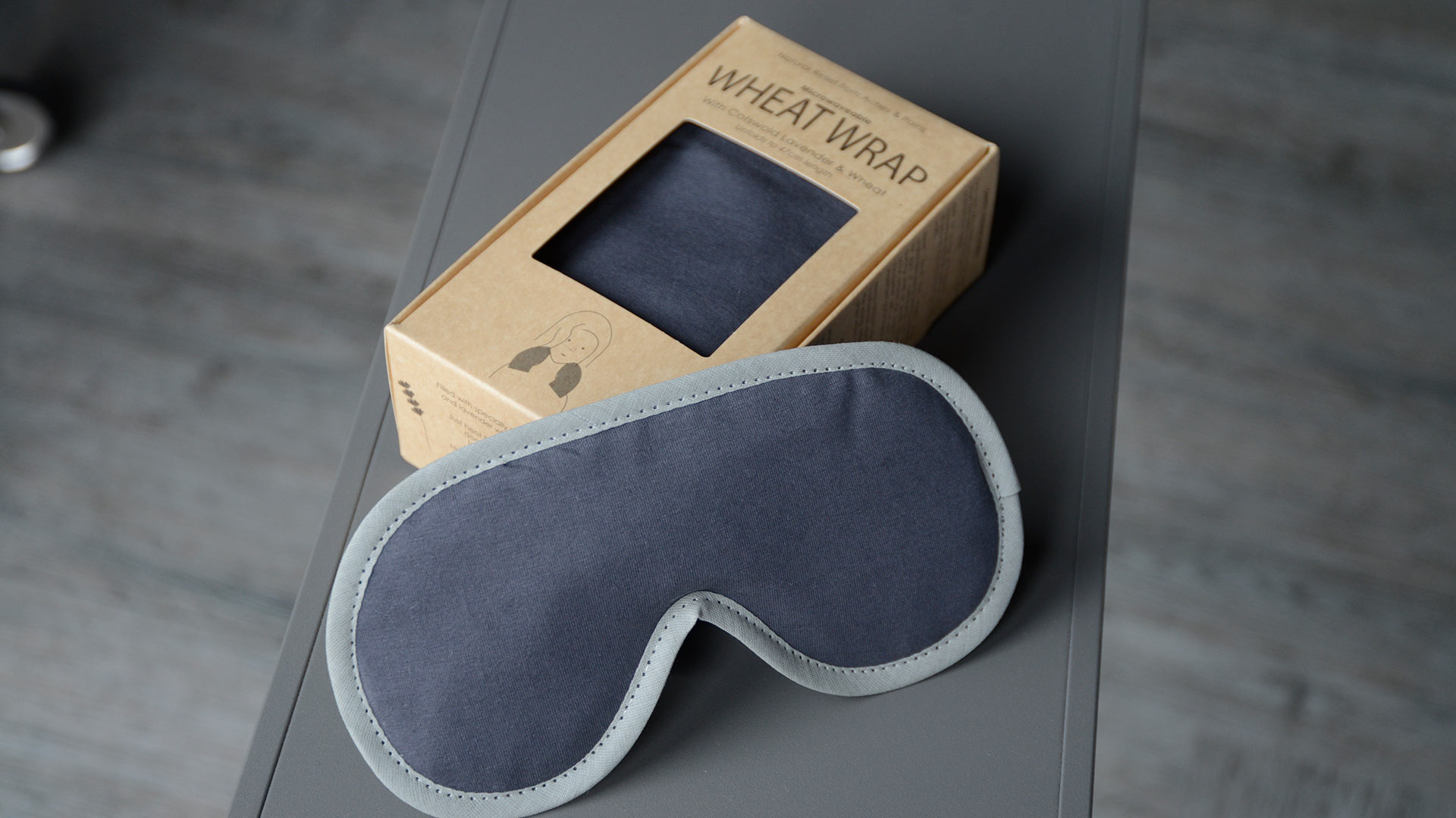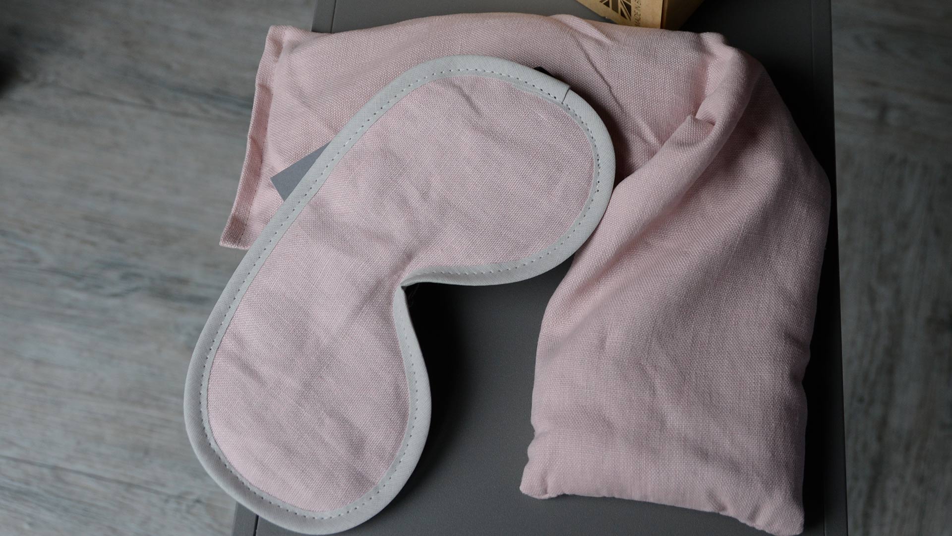 A relaxing, lavender scented neck wrap to relieve stress – filled with specially treated wheat grains and lavender – 100% natural. Can be cooled or heated to relax muscles and relieve aches and pains. Available to order with, or without, a matching lavender scented eye mask. In muted, pale pink linen or dark grey jersey.