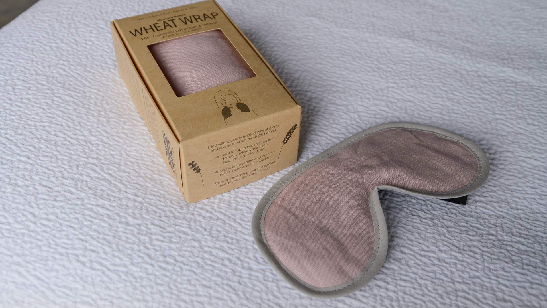 The wrap measures 47cm in length. Available to order with, or without, a matching lavender scented eye mask.