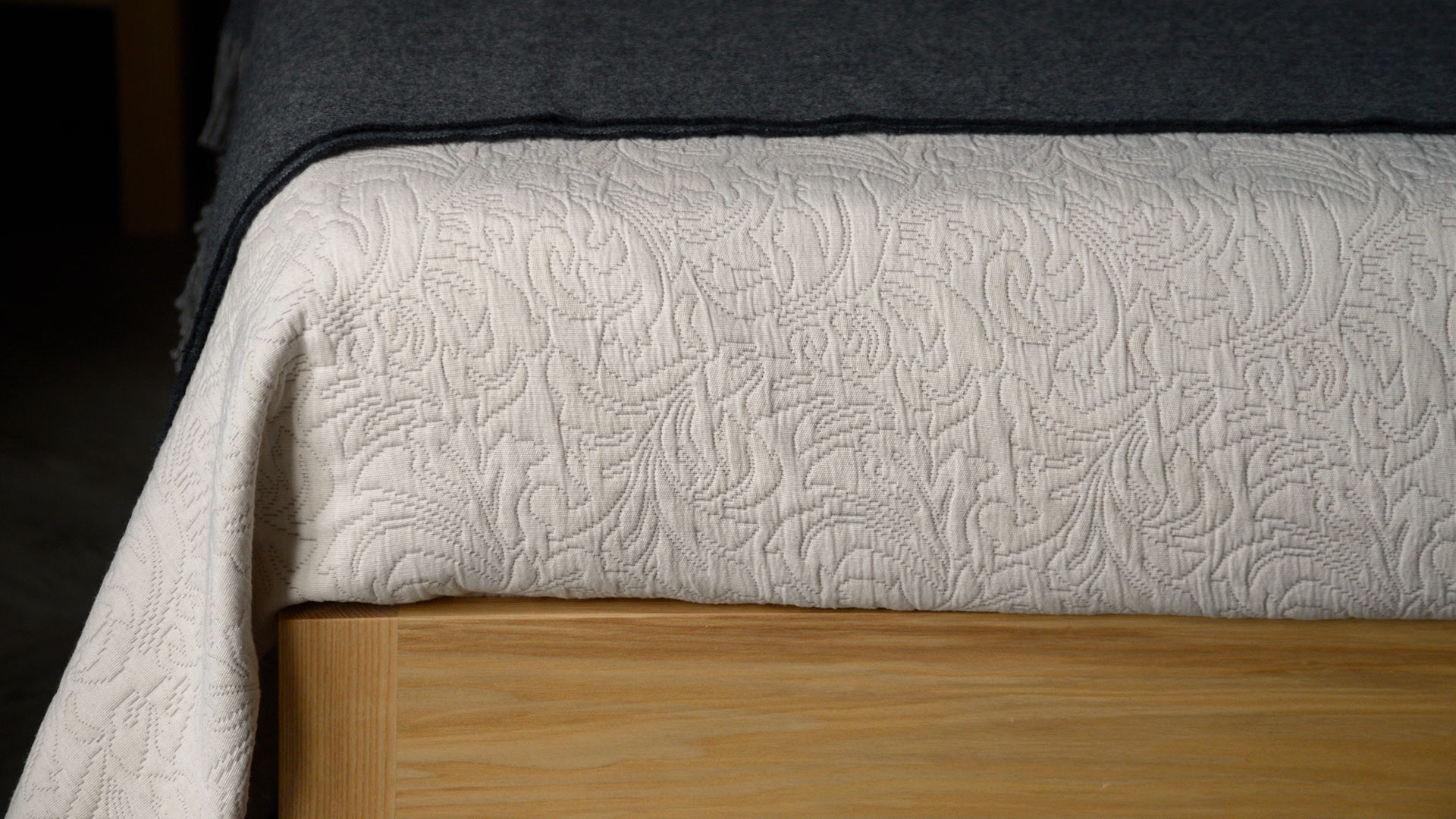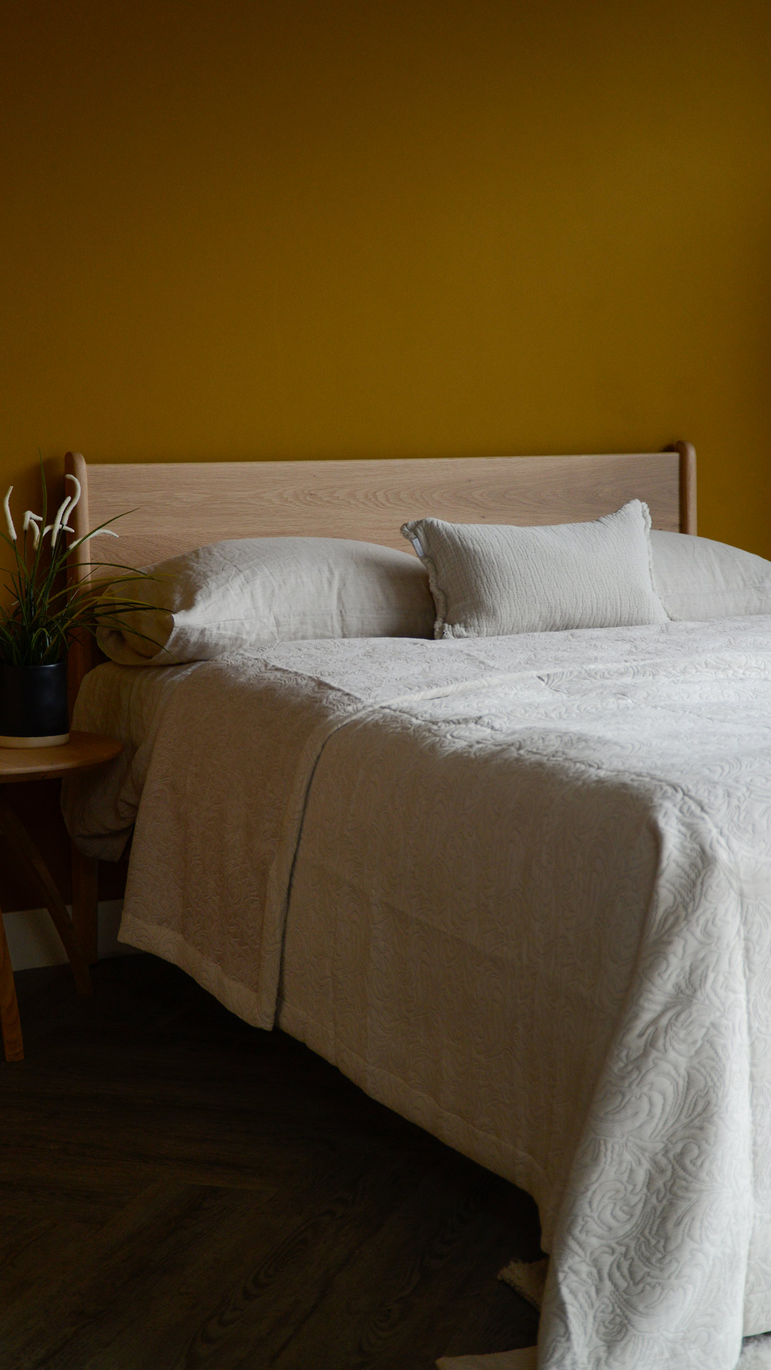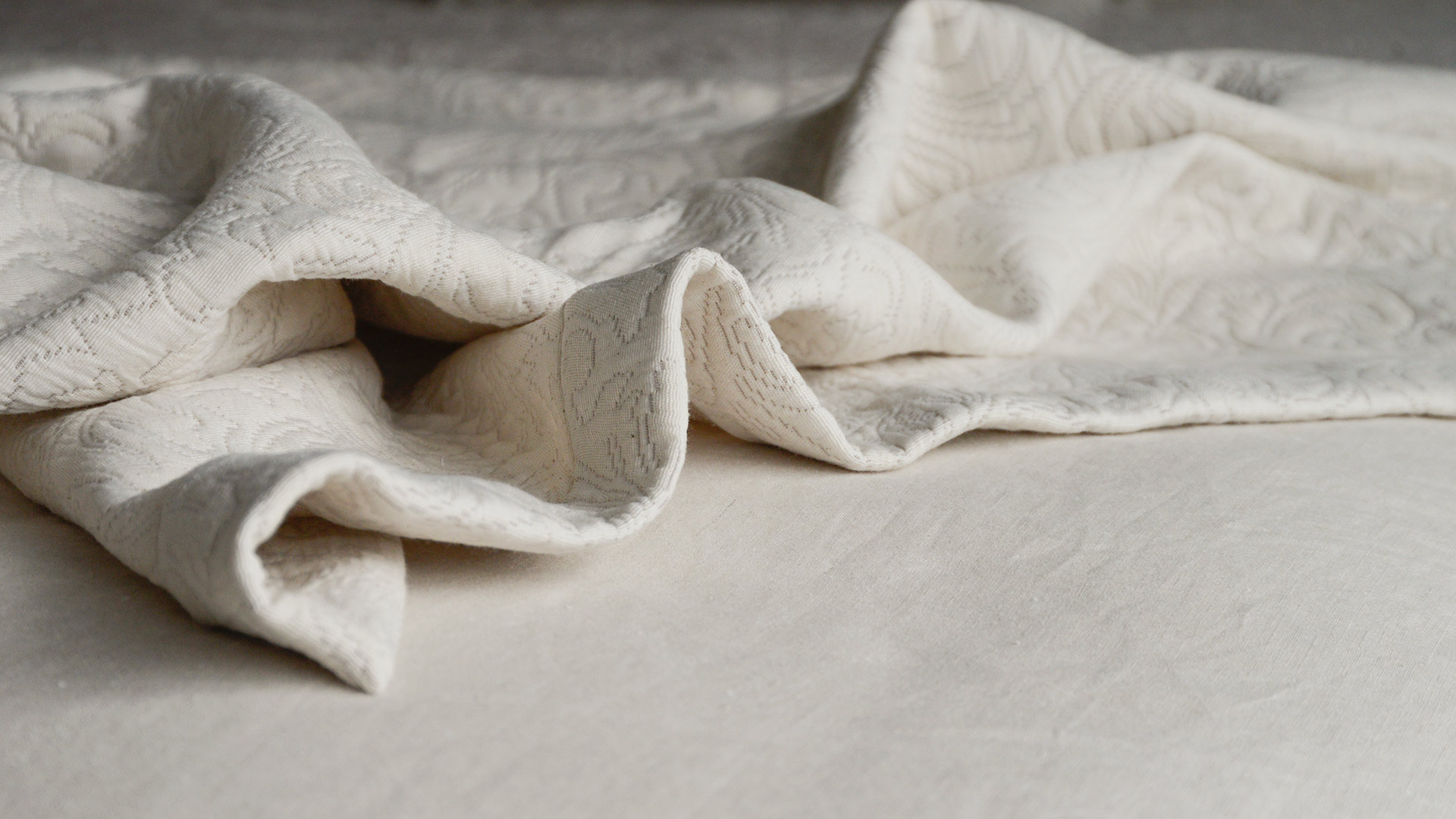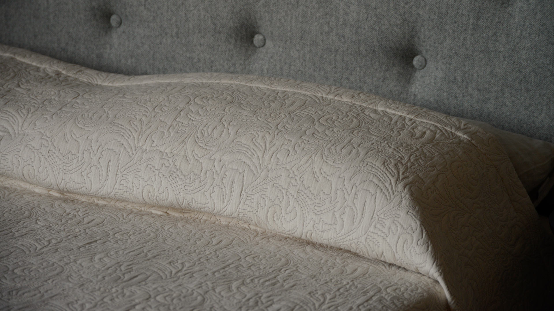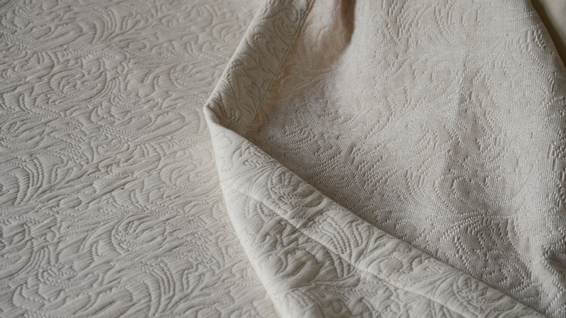 A classic design available in a contemporary, neutral colour. This bedspread boasts a woven, jacquard-look texture and is finished with a stitched boarder to all edges. Large enough to drape on even up to superking size beds.