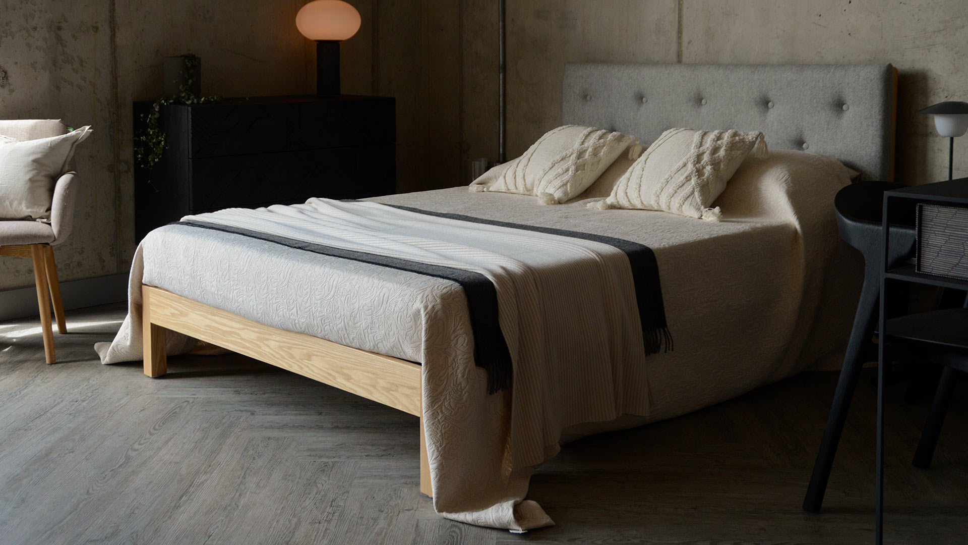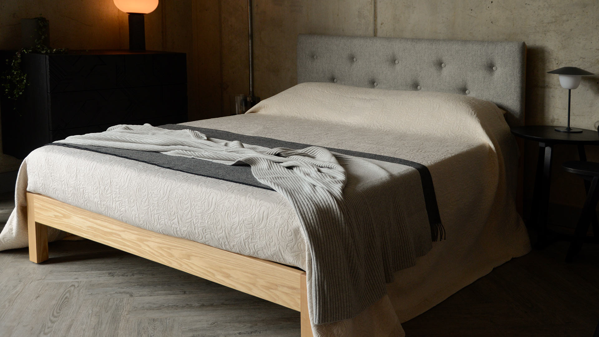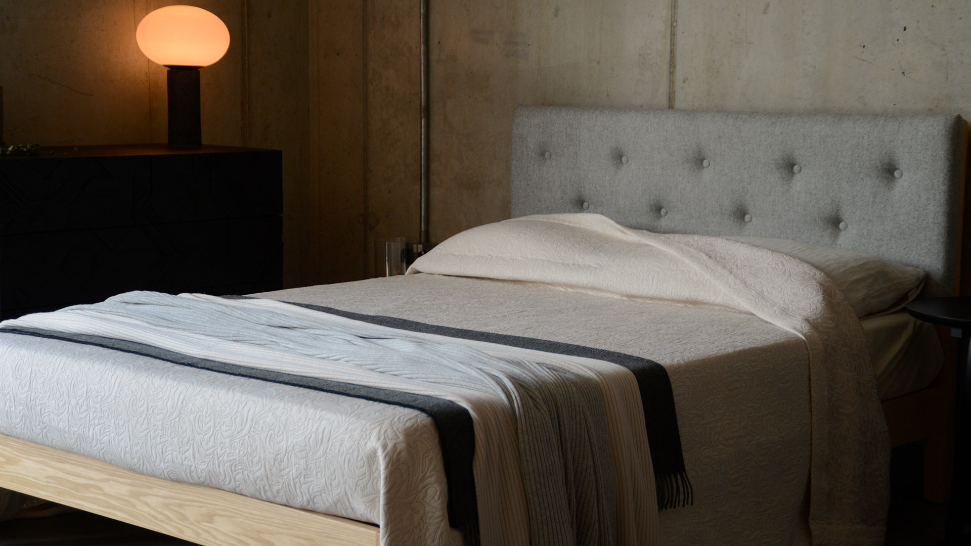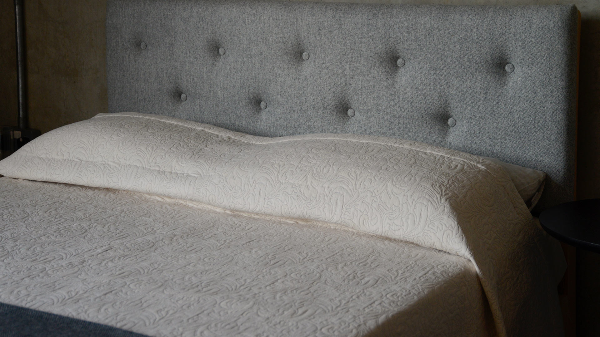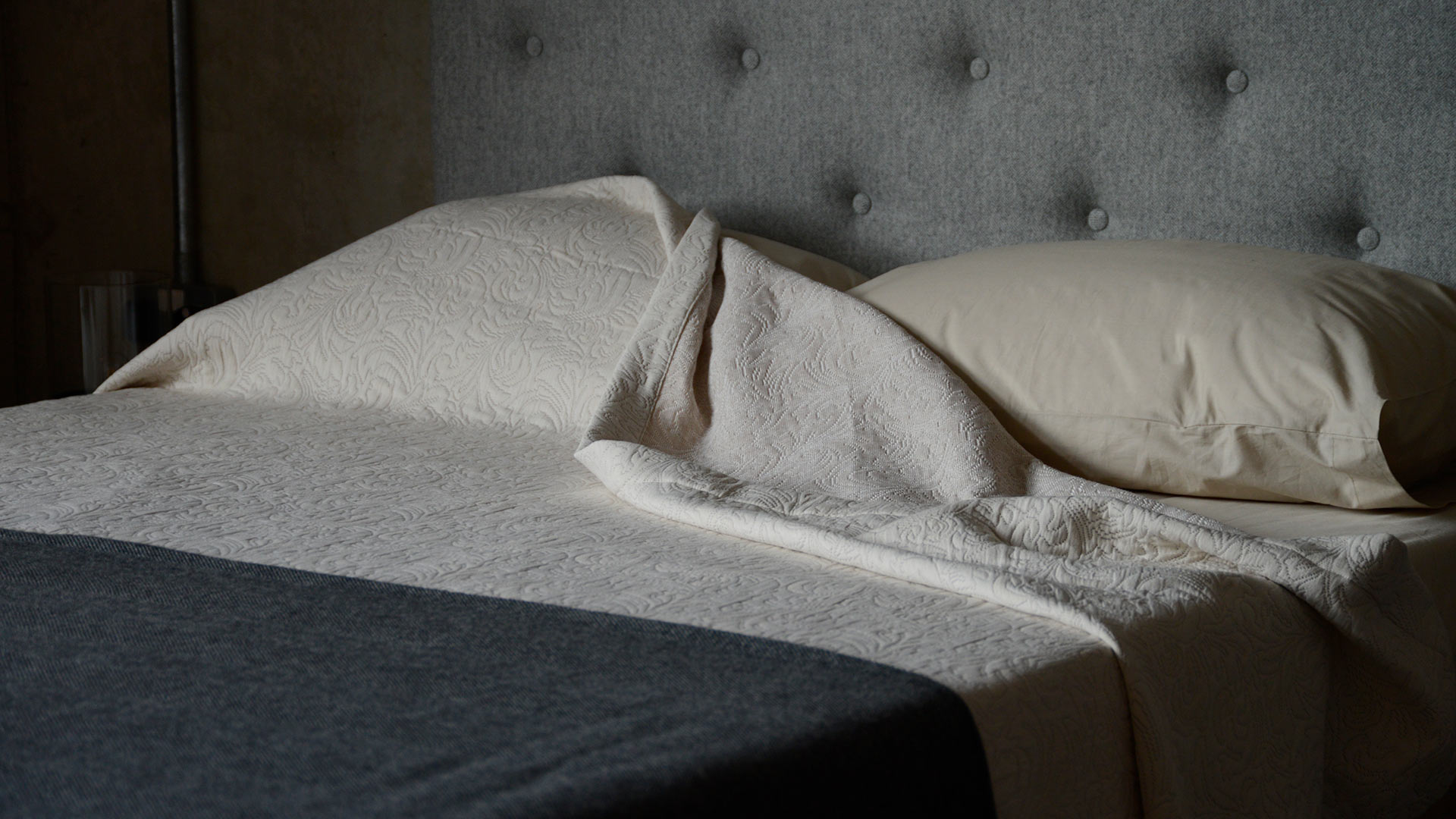 A classic design available in a contemporary, neutral colour. This bedspread boasts a woven, jacquard-look texture and is finished with a stitched boarder to all edges. Large enough to drape on even up to superking size beds.