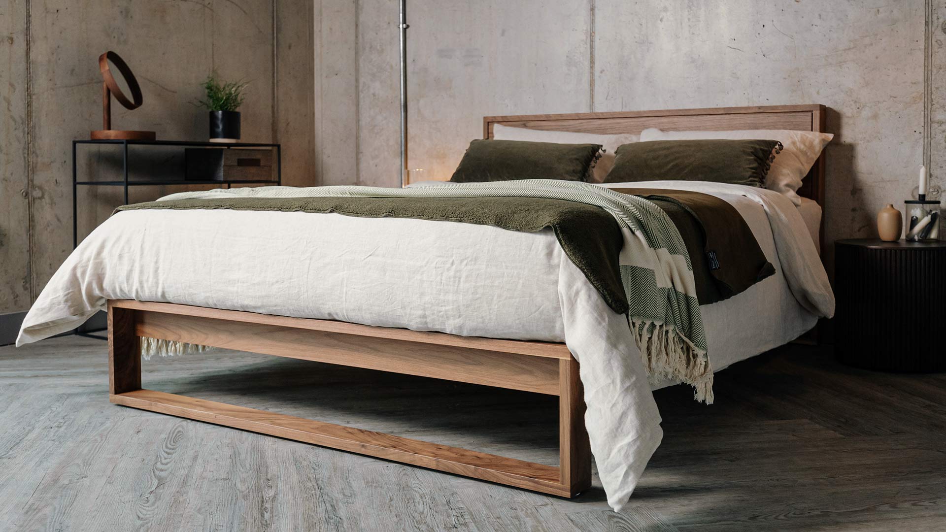 The Leith is a stylish, contemporary bed with a low, elegant design. The frame is made of deep, slender sections of solid timber for a refined, yet substantial look. The Leith is pictured here in solid walnut and solid oak, but is available to order in your choice of size and timber.