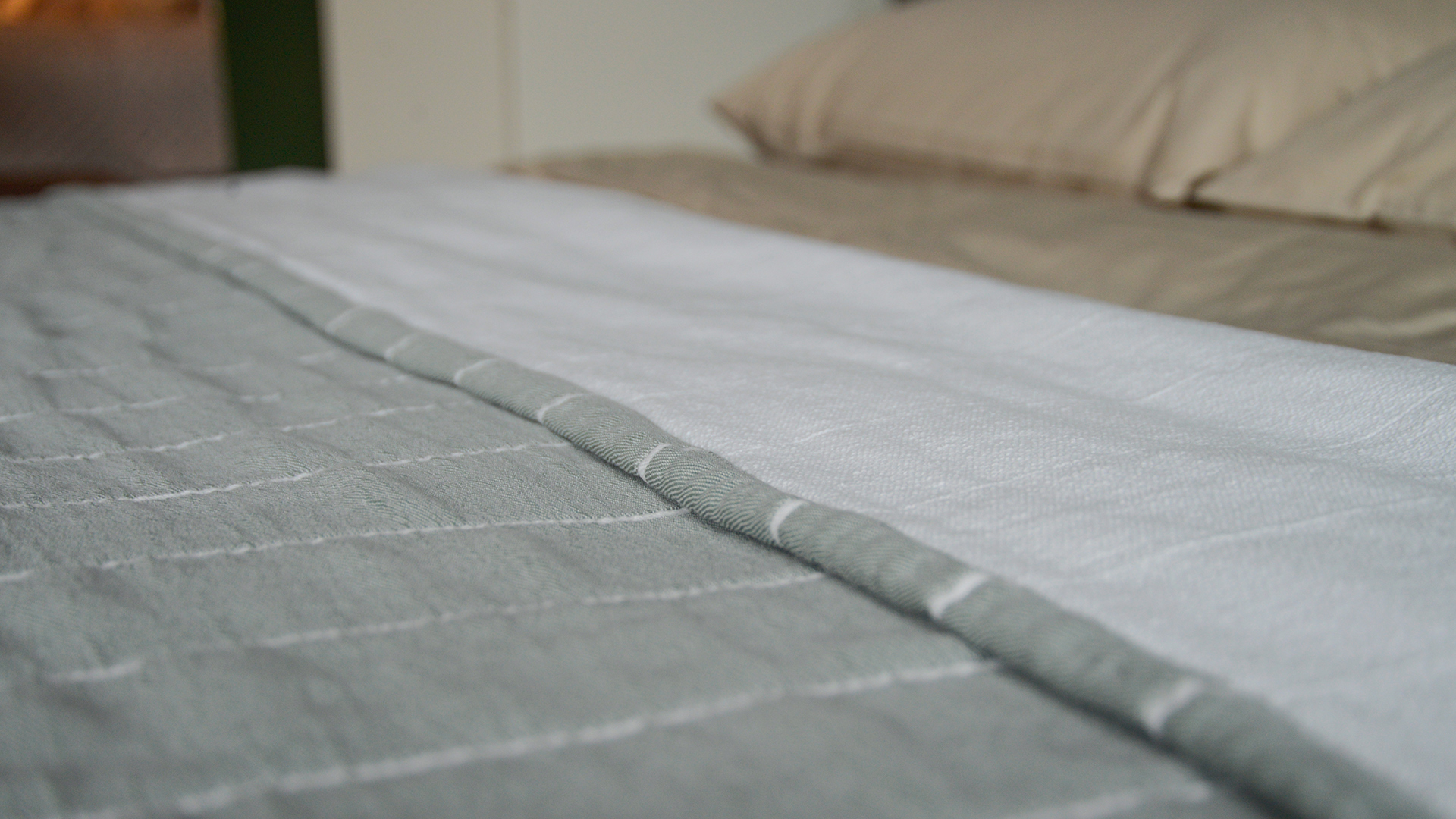 100% cotton extra large throws available in jade and white. Soft and subtle striped design. Size: 180 x 200cm