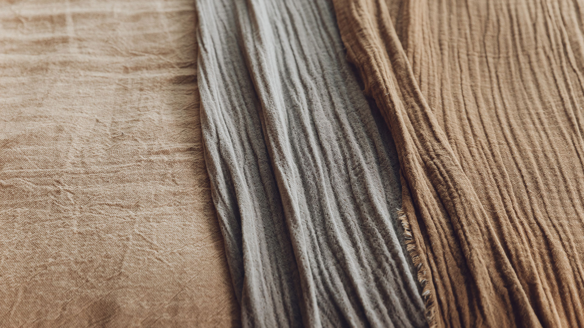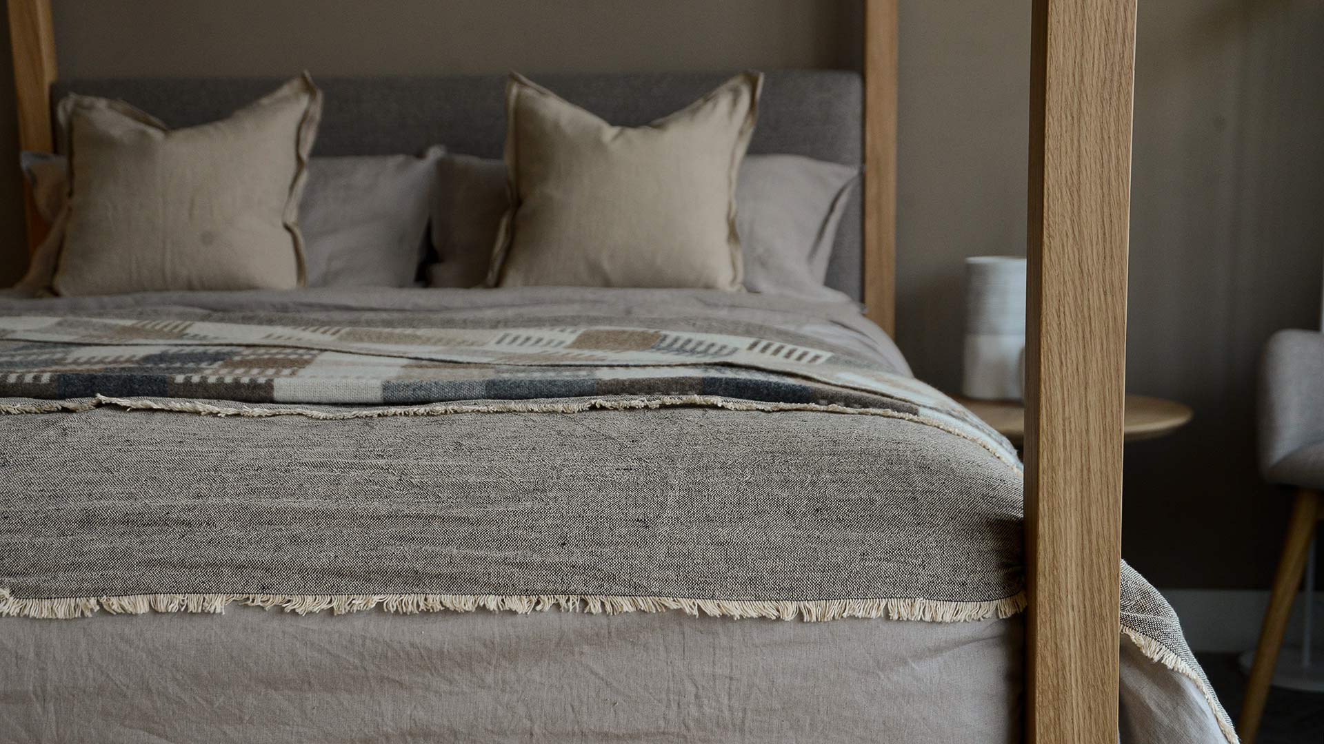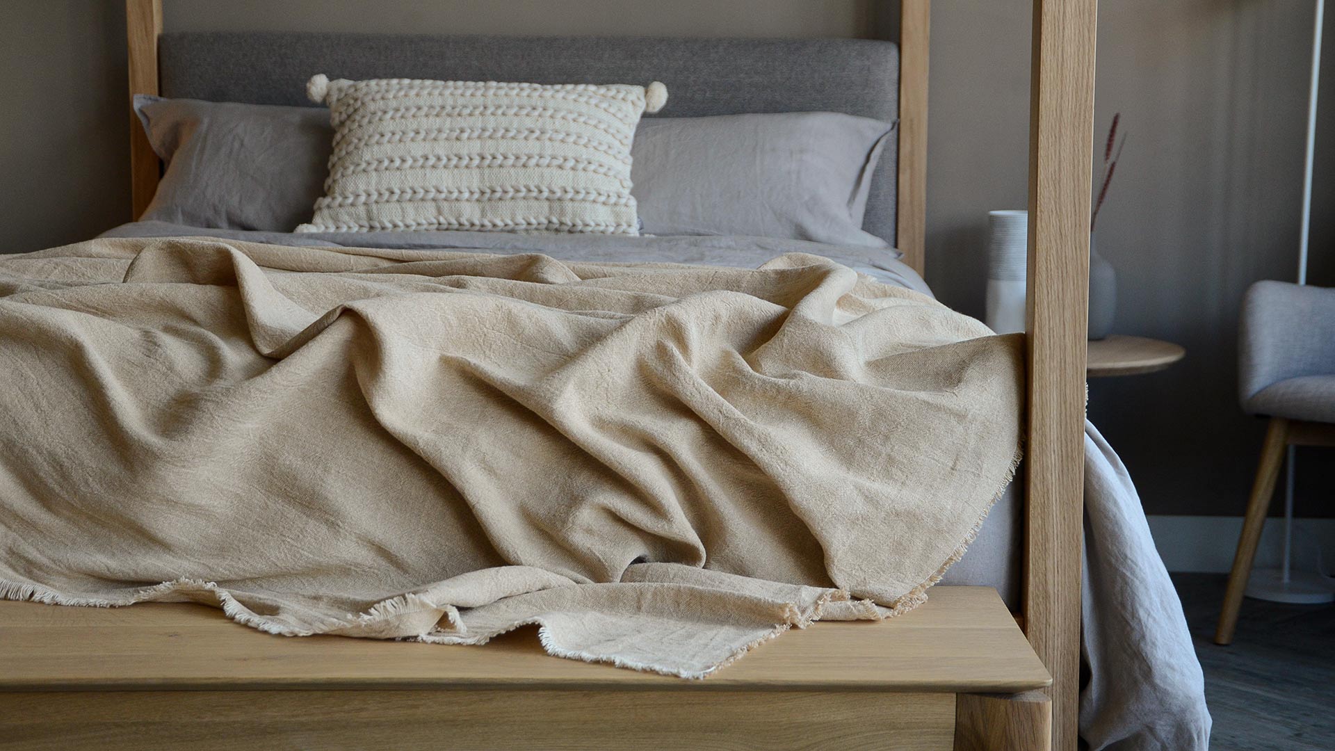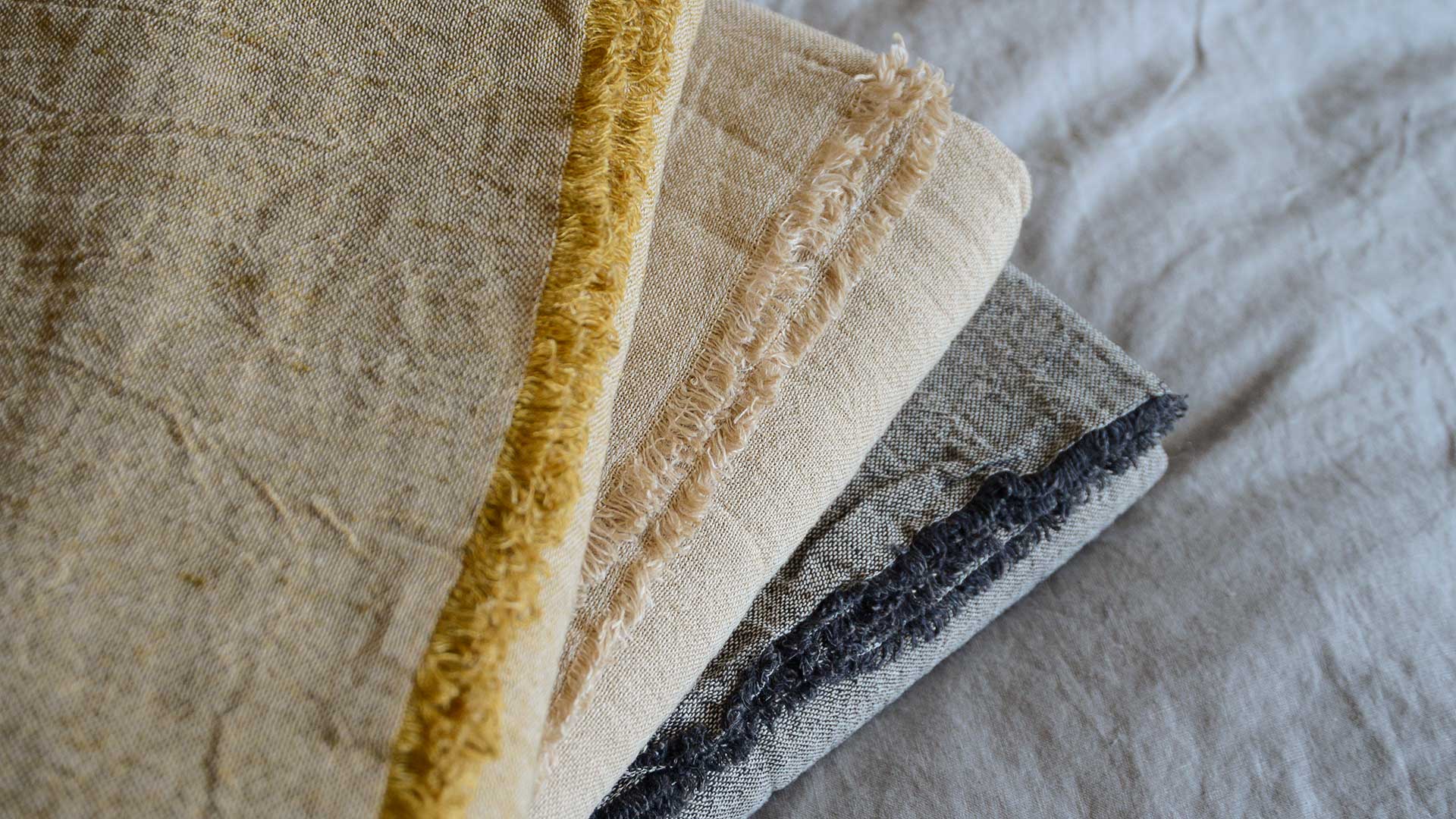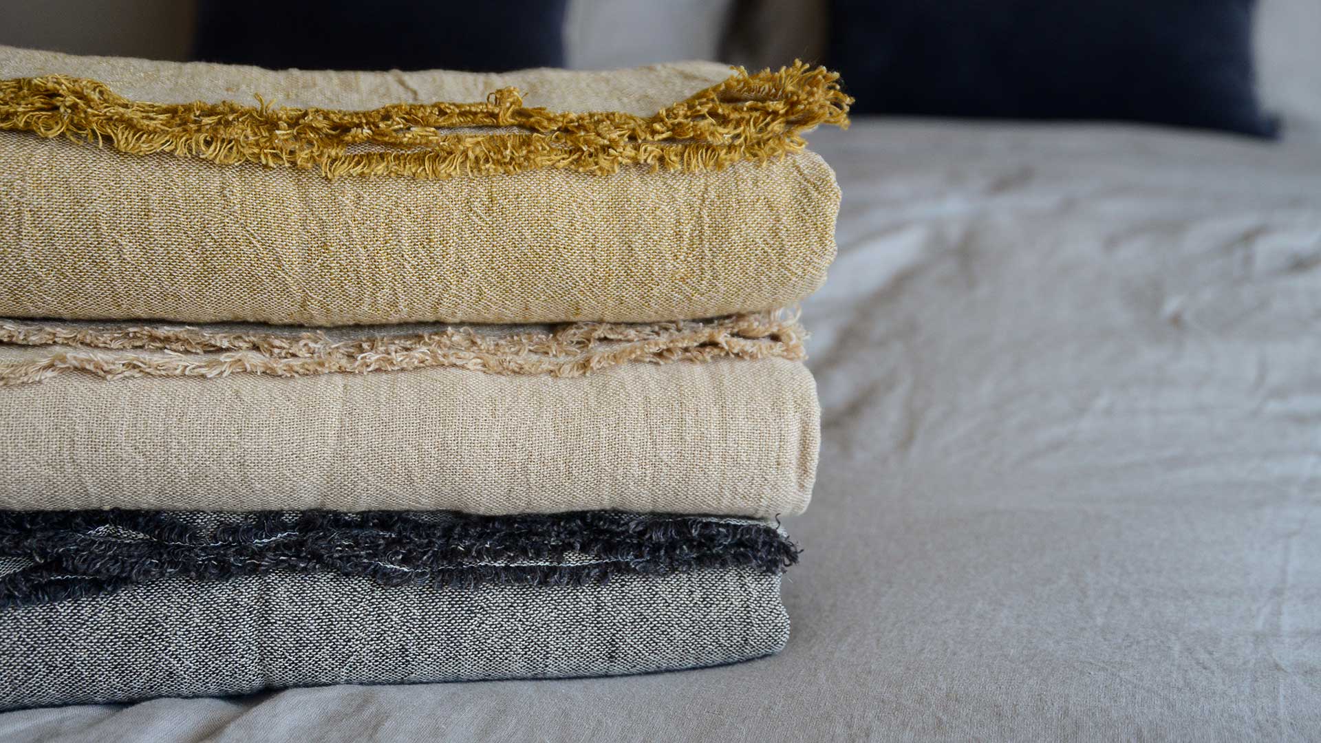Light, linen and cotton blend bedspreads – available in three stylish, neutral shades: charcoal, beige or ochre. These soft, relaxed bedpreads are perfect for a contemporary interior.
