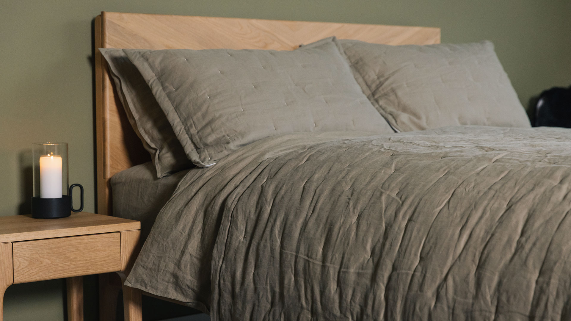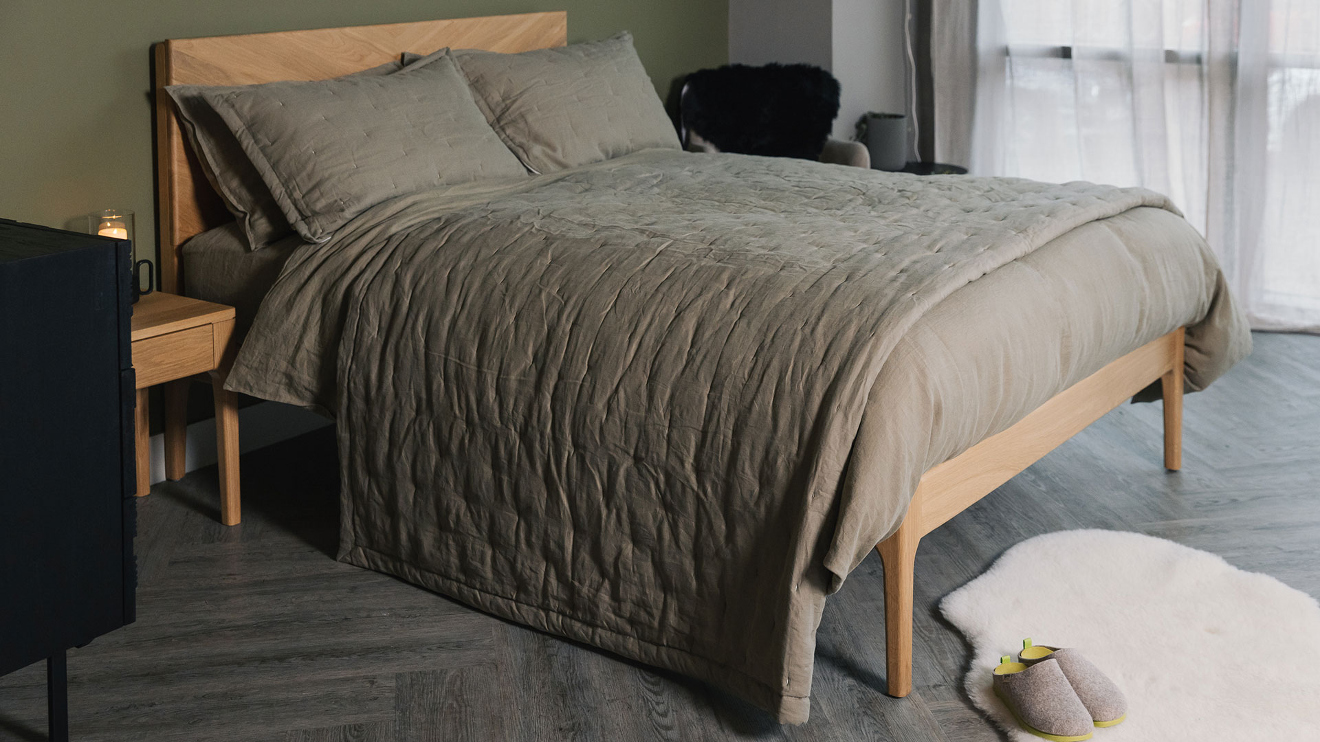 Each quilted linen bedspread set is made from 100% pre-washed linen on the front and 100% cotton on the reverse, and a polyester filling. Available in Olive – a muted, warm green shade that will work with lots of other colours. The bedspread also comes with two matching pillowcases. These cosy, quilted sets are perfect for use on king size or super-king bed bases.