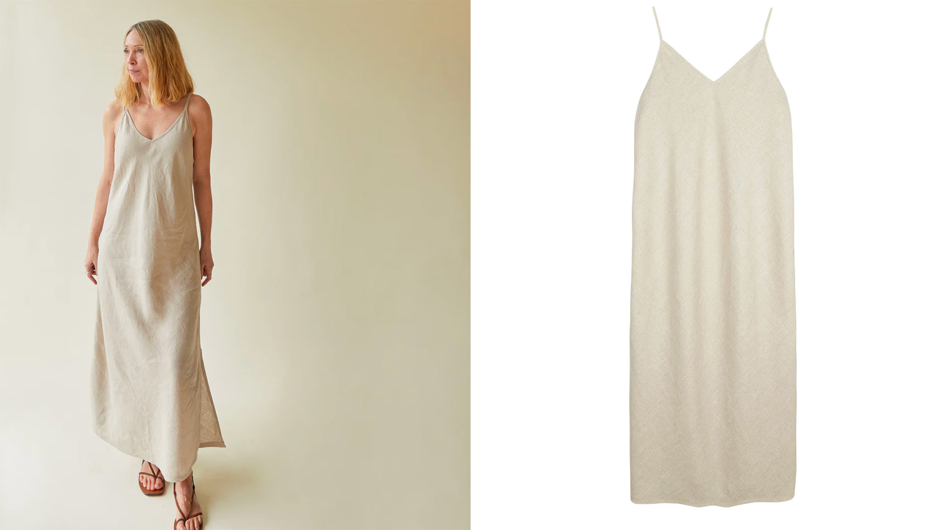 Crafted from a 100% linen this slip dress has a beautiful side slit for a relaxed, yet elegant shape. This linen slip dress is a perfect to take you from day to night dress. Wear as a luxury nightdress, beach cover up or dress with a heeled sandal for a night out.